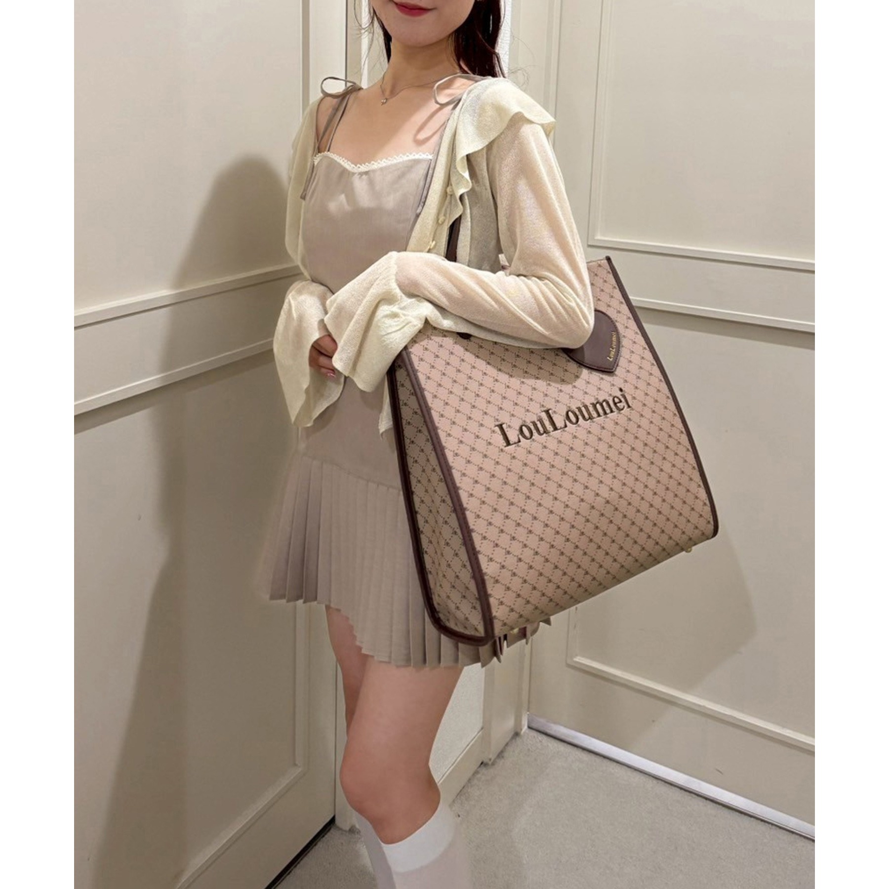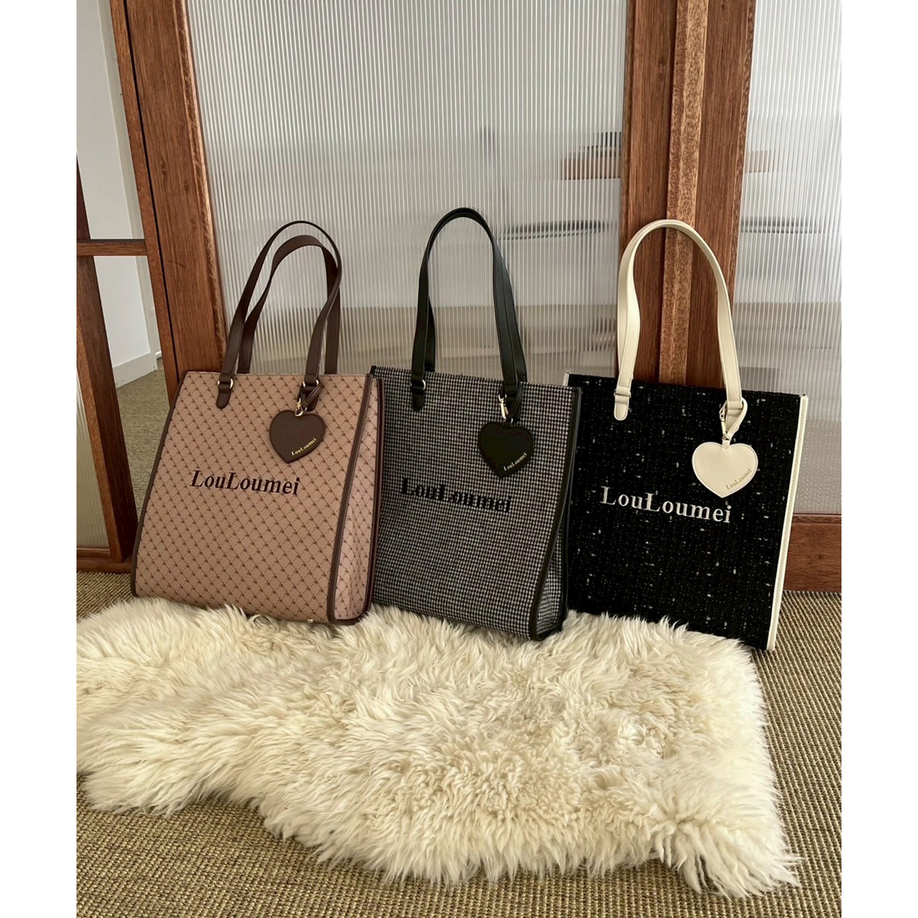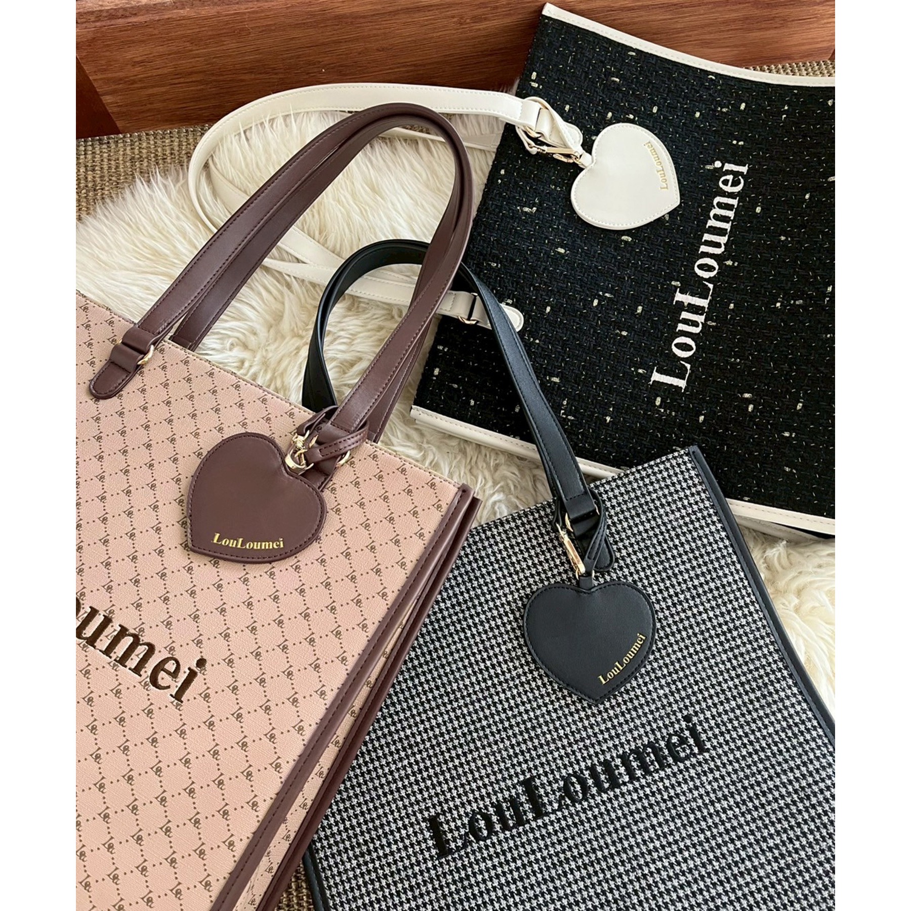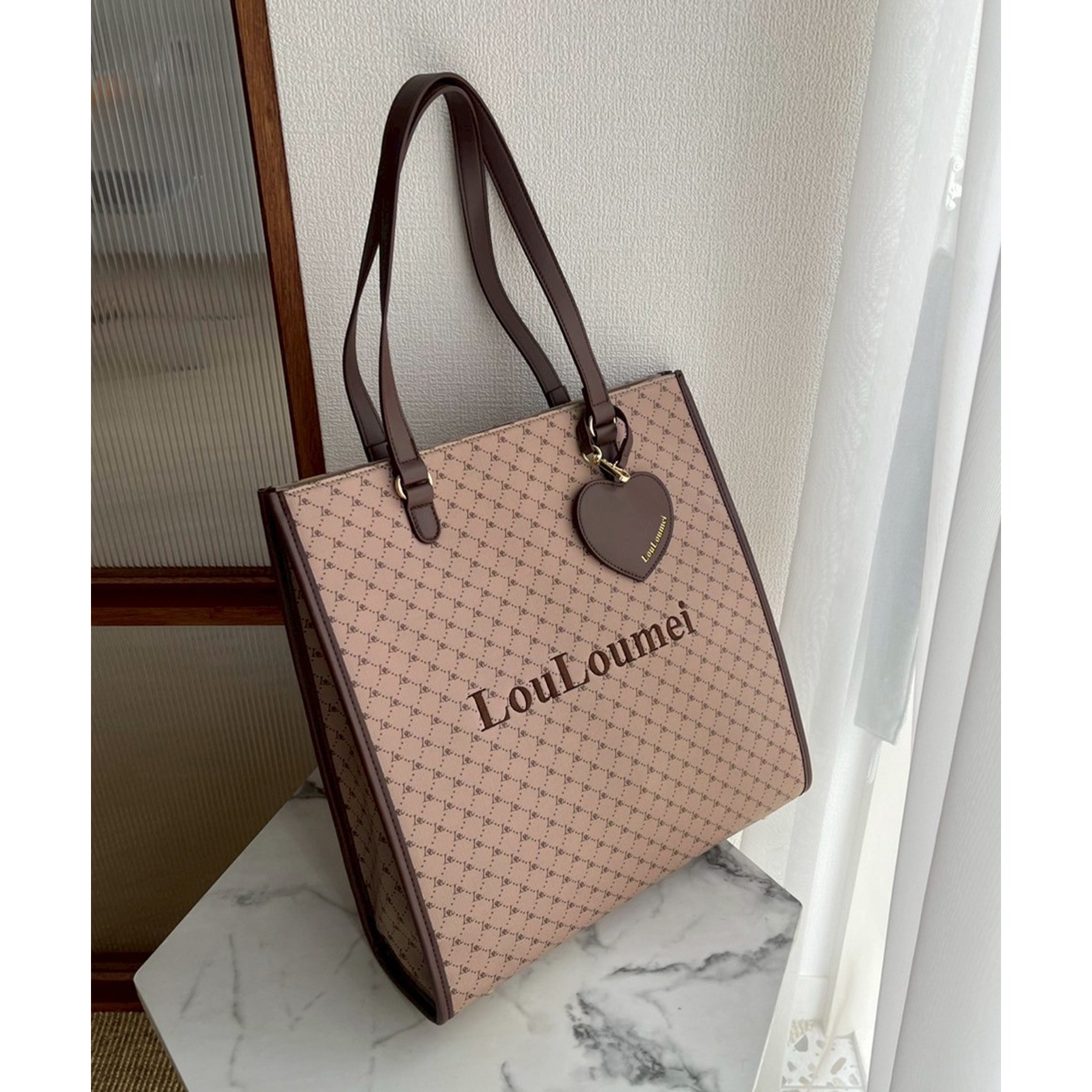 【LouLoumei】ハートチャーム付きトートバッグ/推し活にも/自立可能