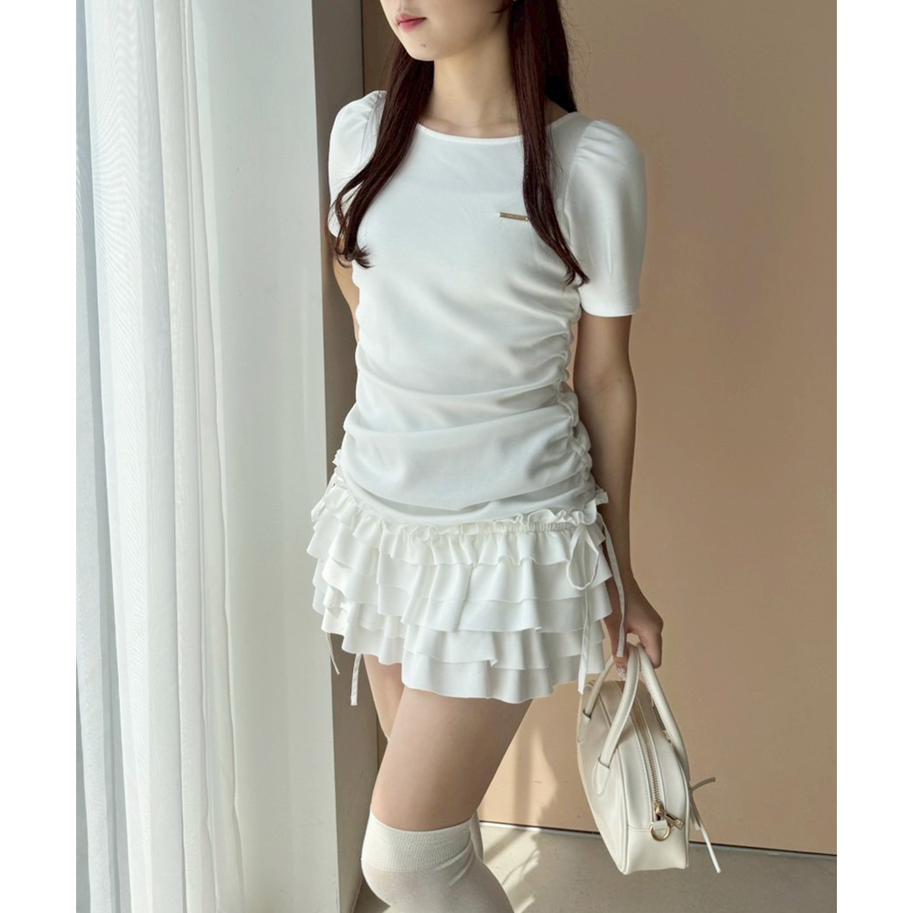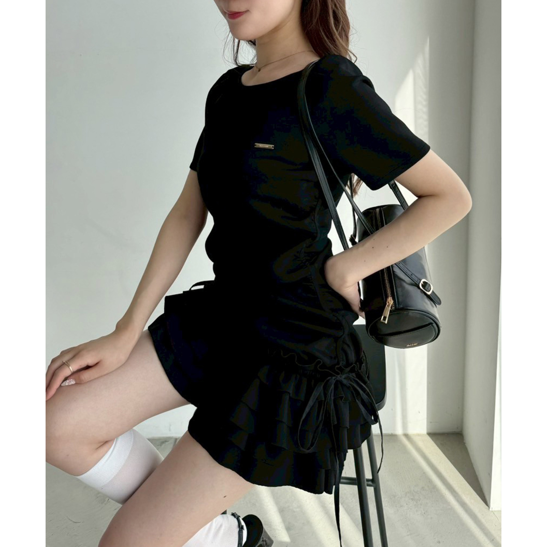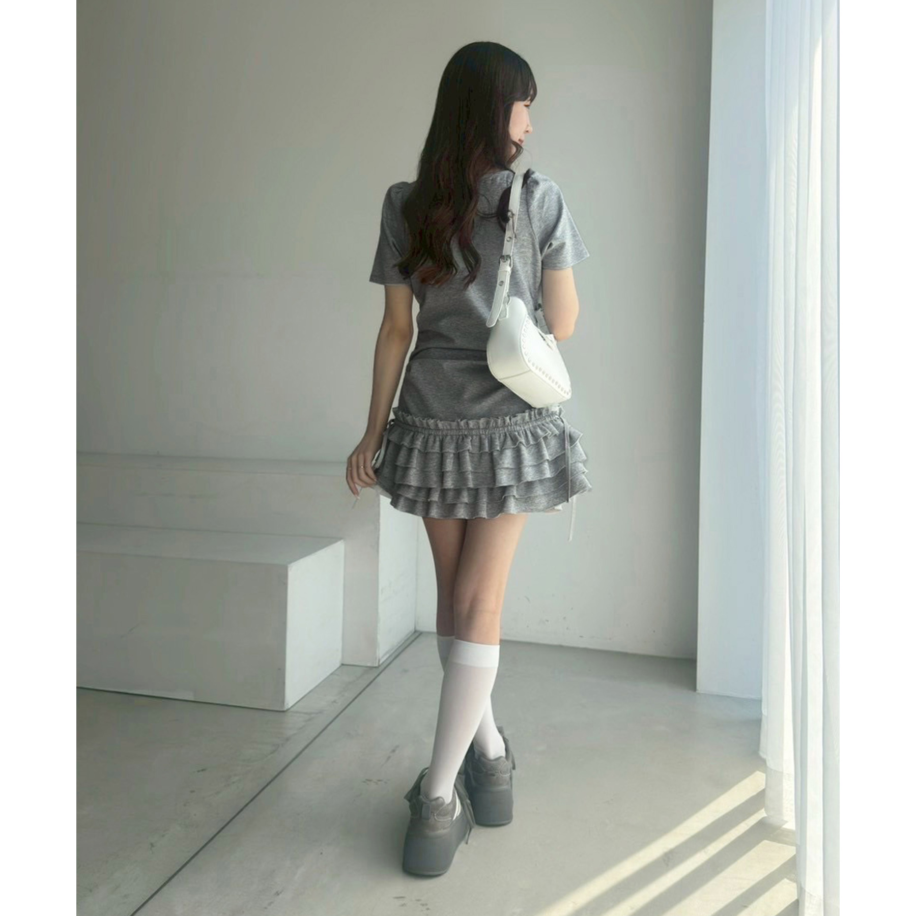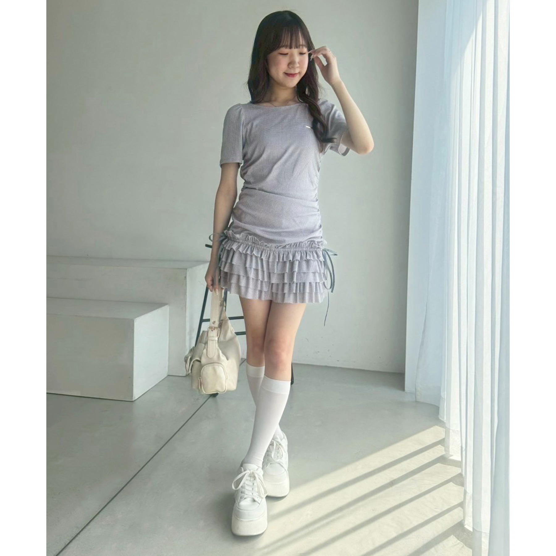 スカート部分には段になったティアードフリルが施されており、動くたびにふんわりと揺れてフェミニンな印象に。