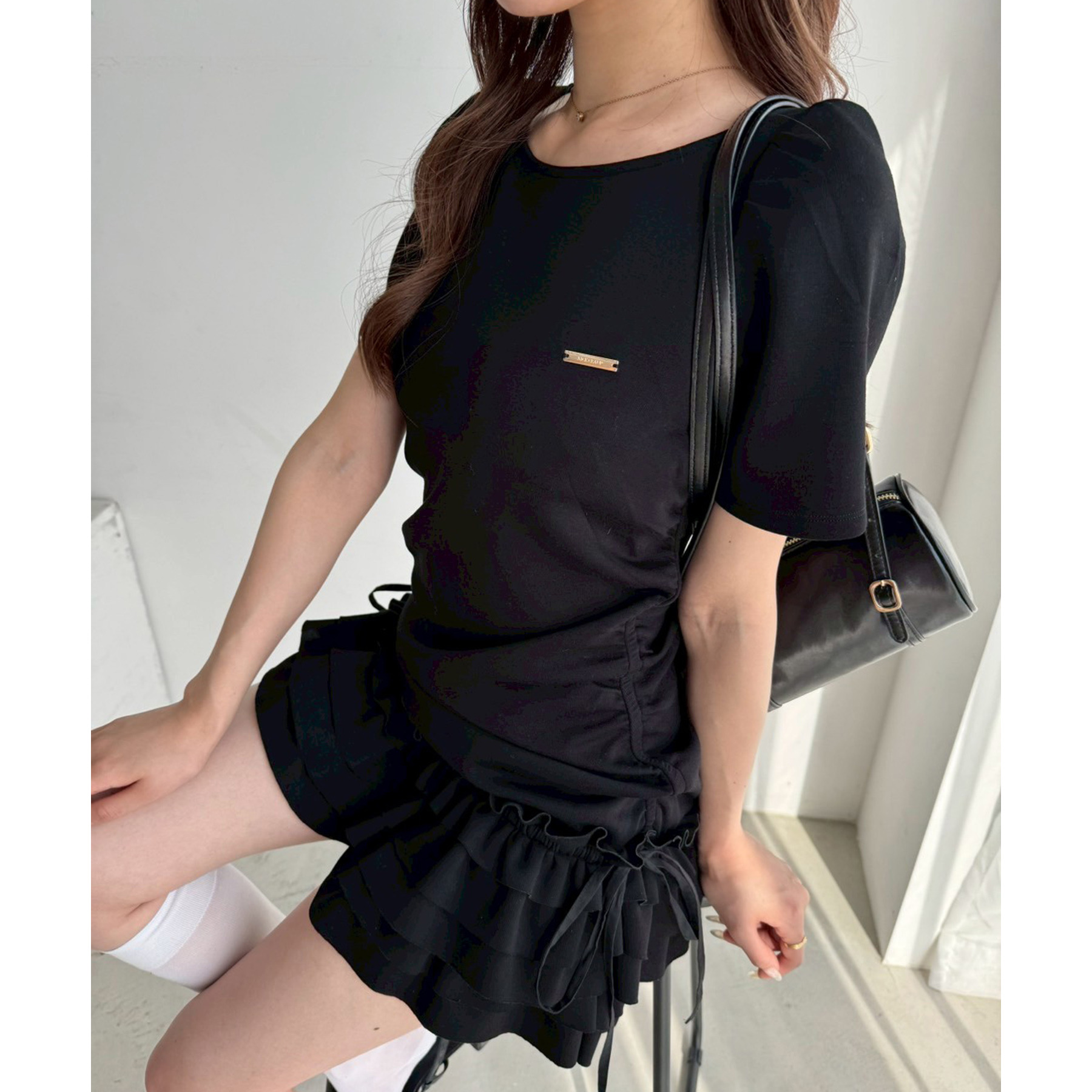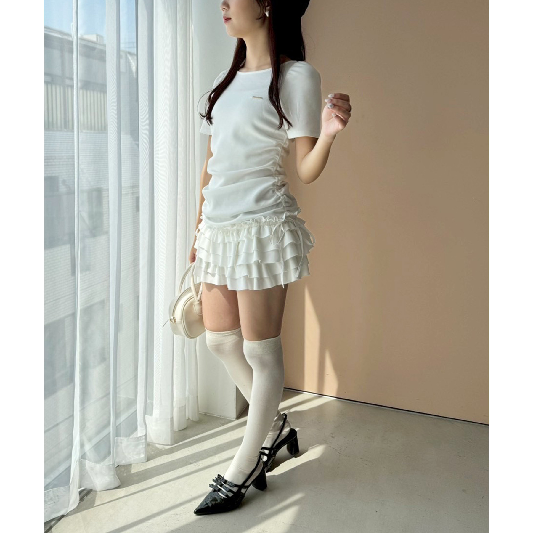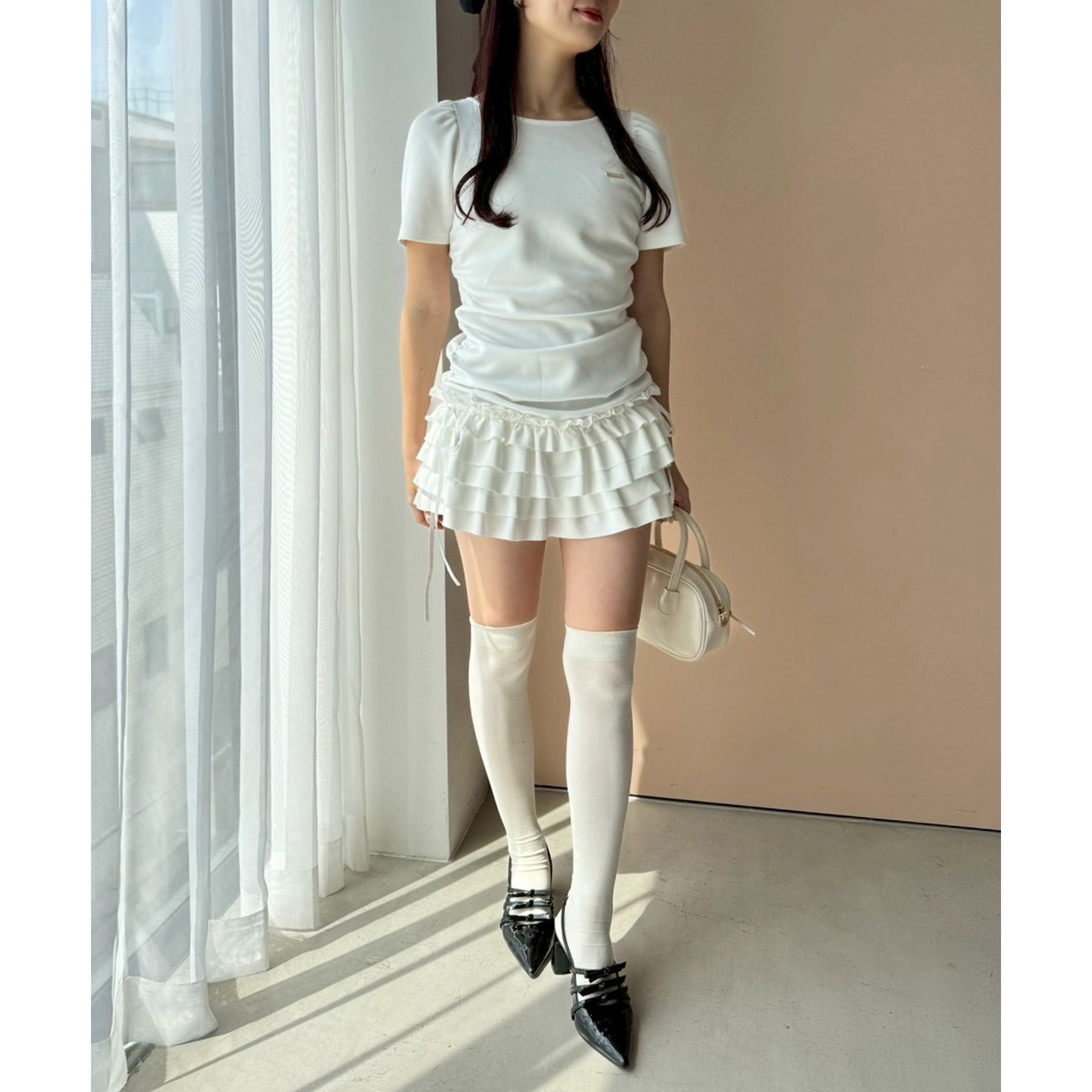 スカート部分には段になったティアードフリルが施されており、動くたびにふんわりと揺れてフェミニンな印象に。