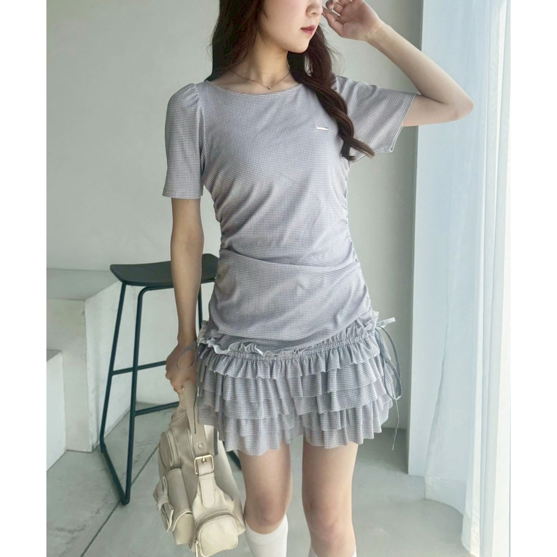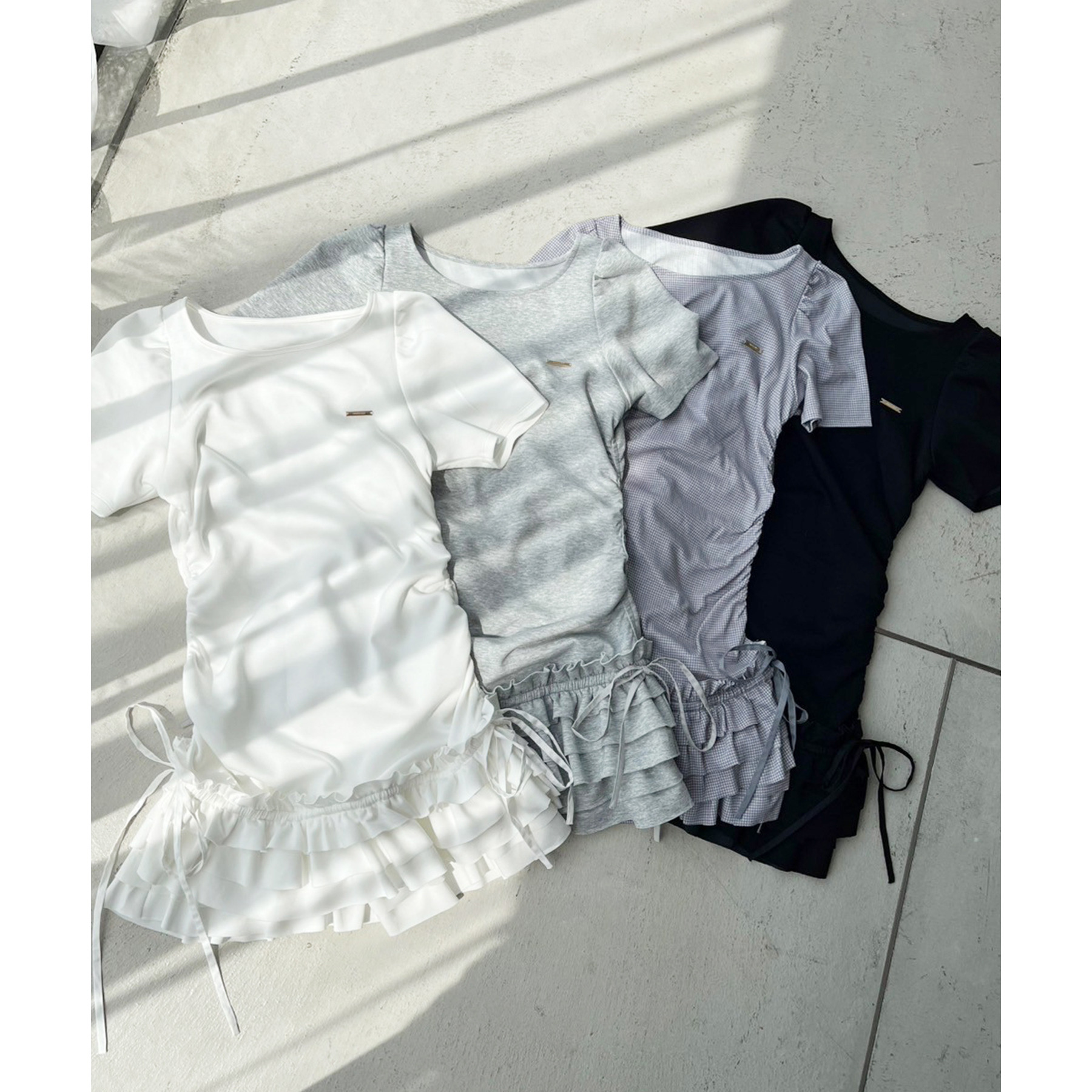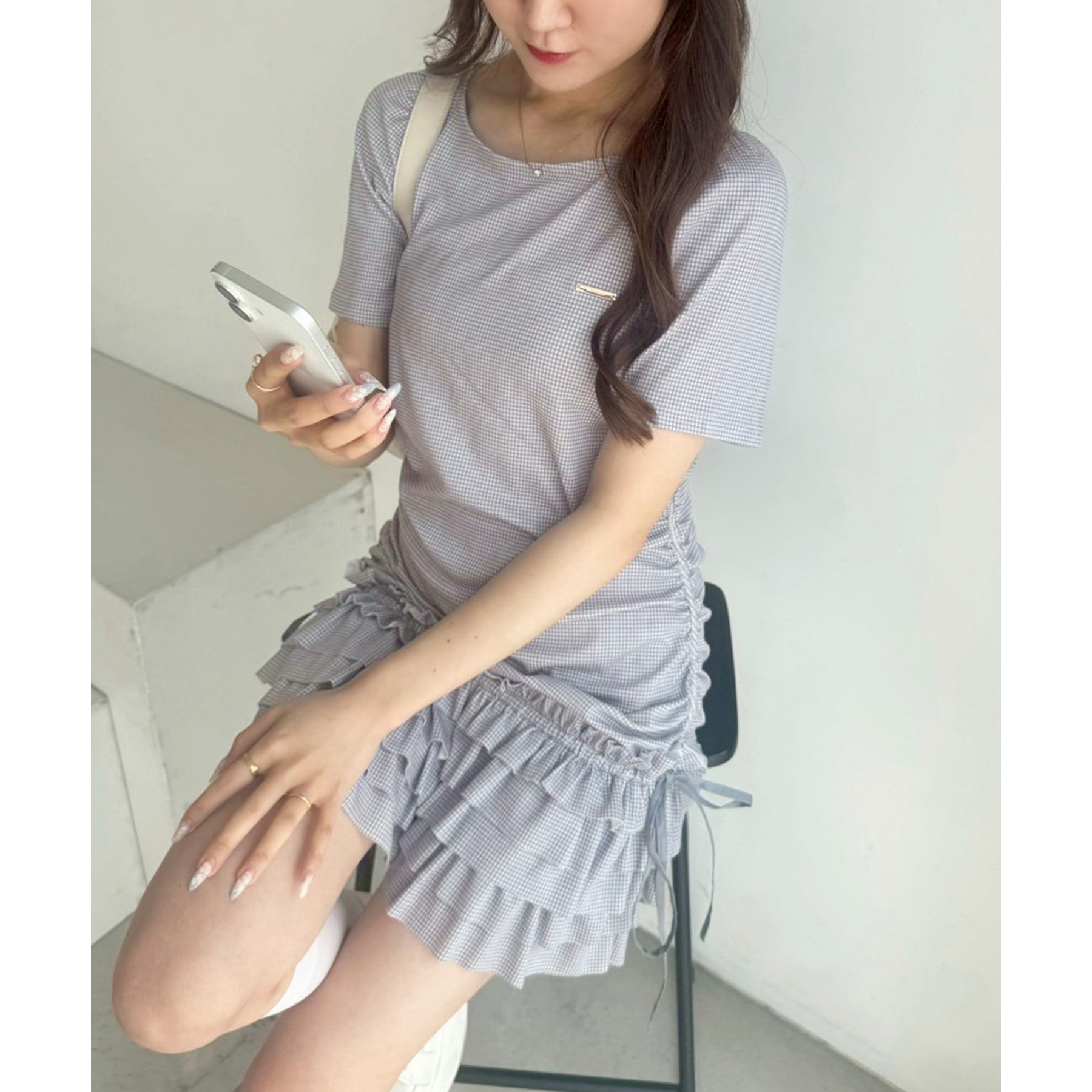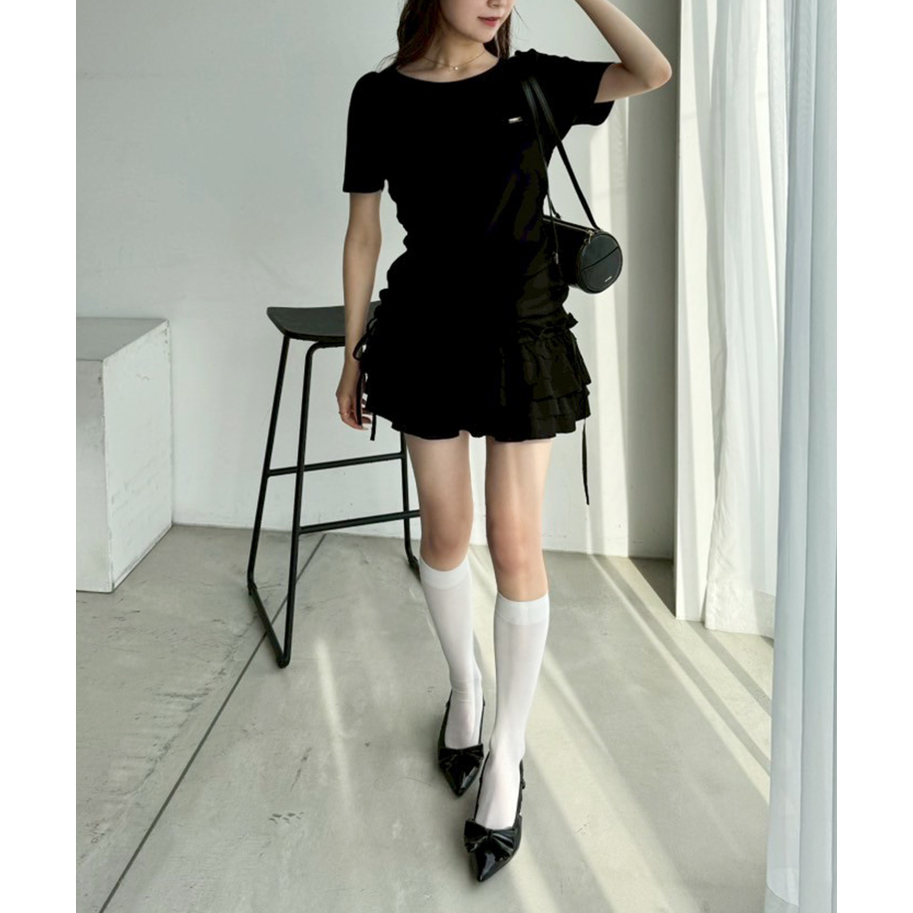 スカート部分には段になったティアードフリルが施されており、動くたびにふんわりと揺れてフェミニンな印象に。