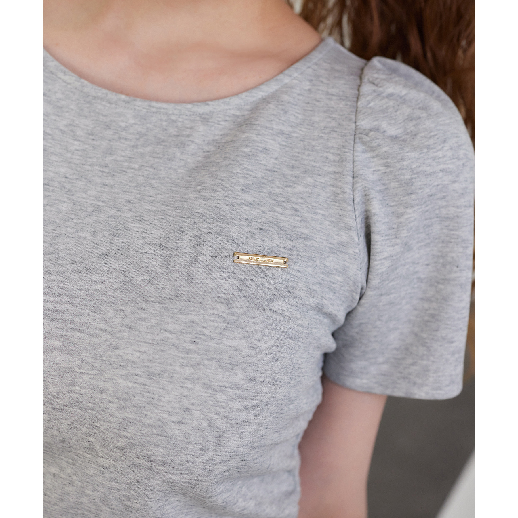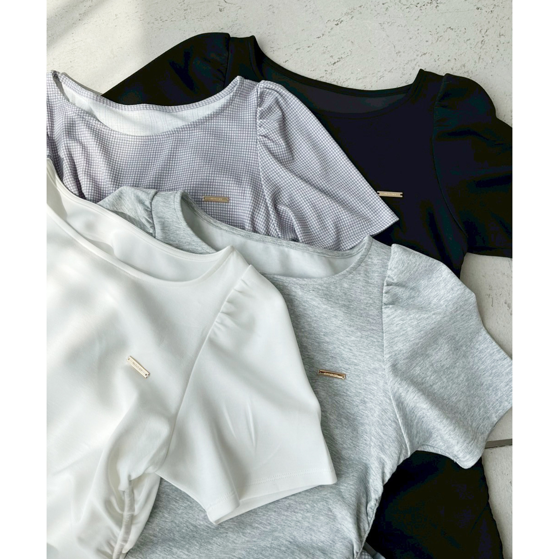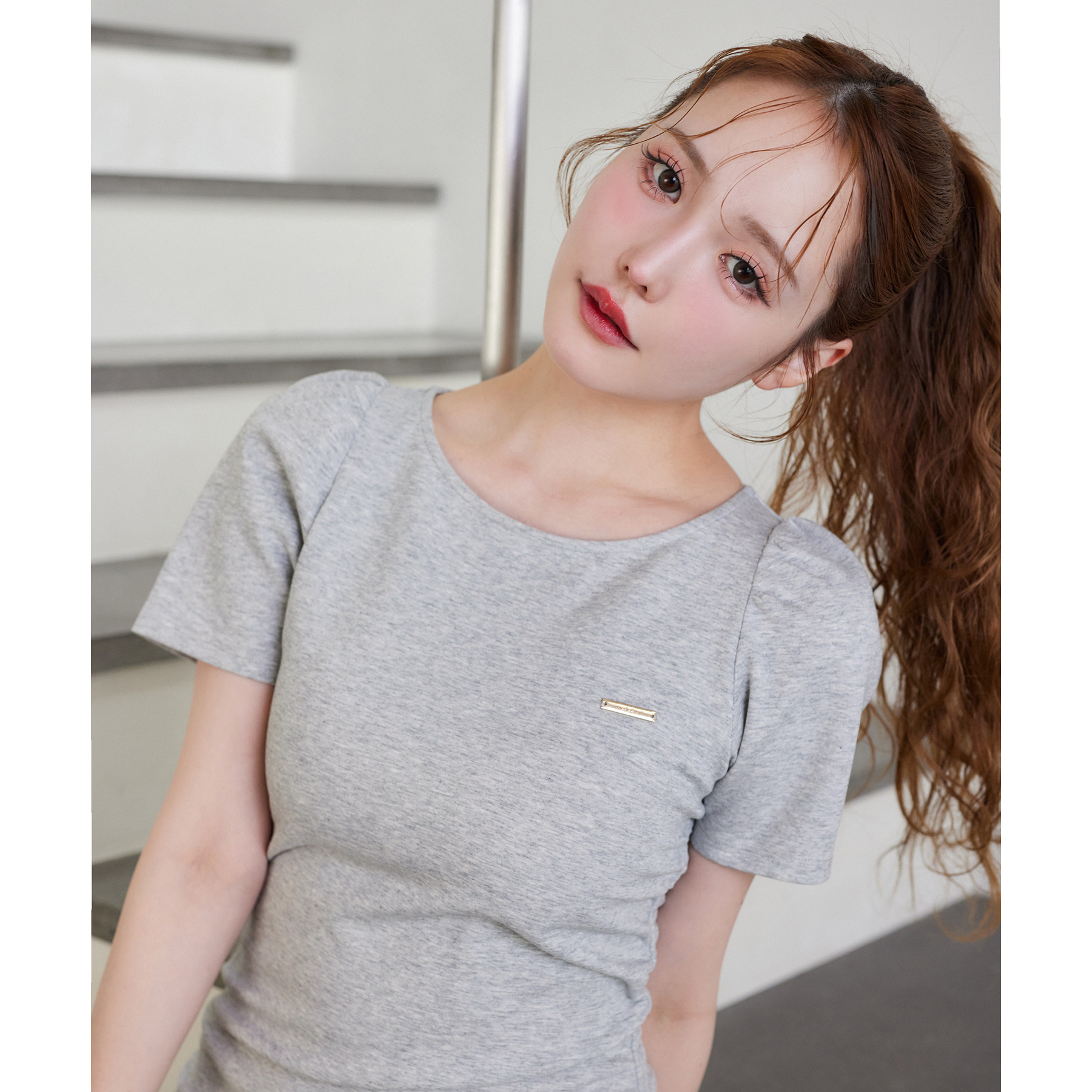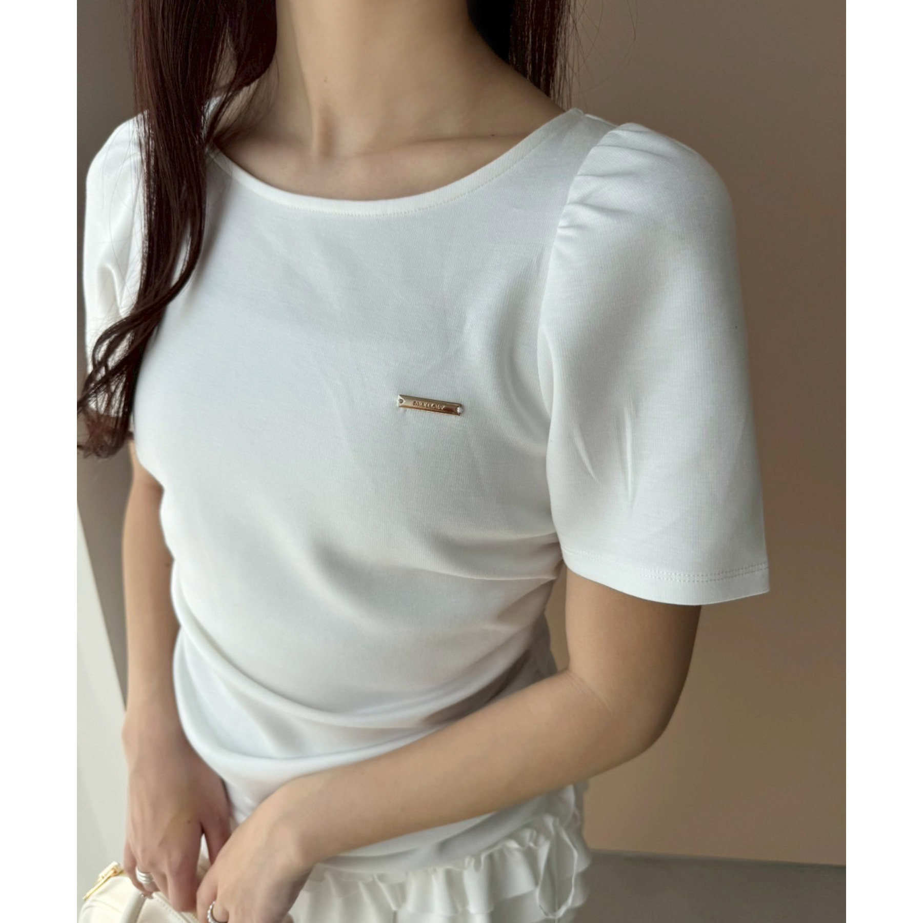 胸元にプレートを施し、シンプルなデザインの中でアクセントになります。