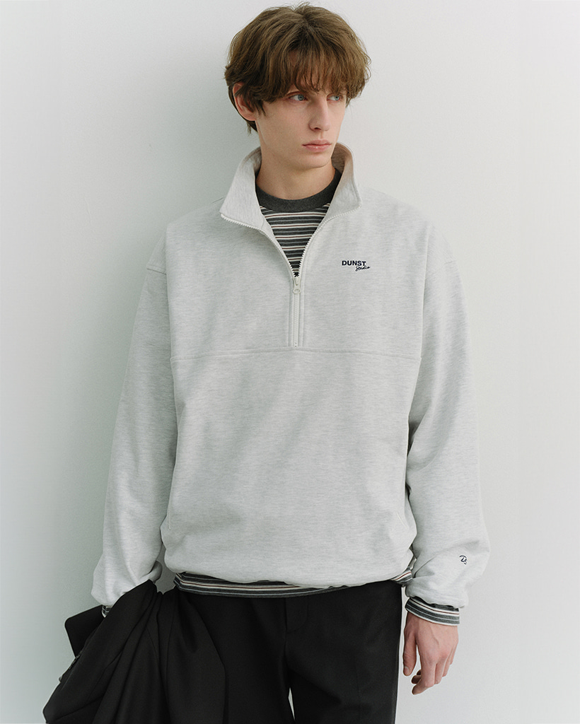 UNISEX RELAXED HALF ZIP-UP SWEATSHIRT LIGHT MELANGE GREY_M_UDTS6A102G1