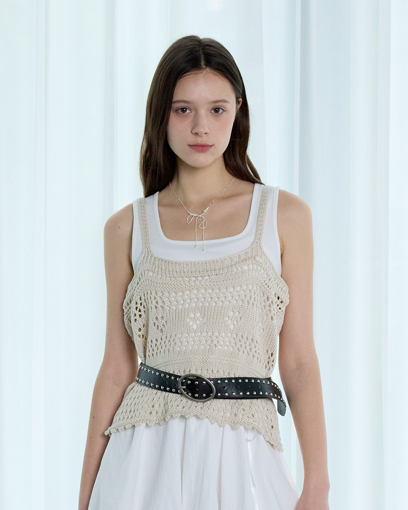 MORI BLOOM SCALLOP KNIT BUSTIER_BEIGE
