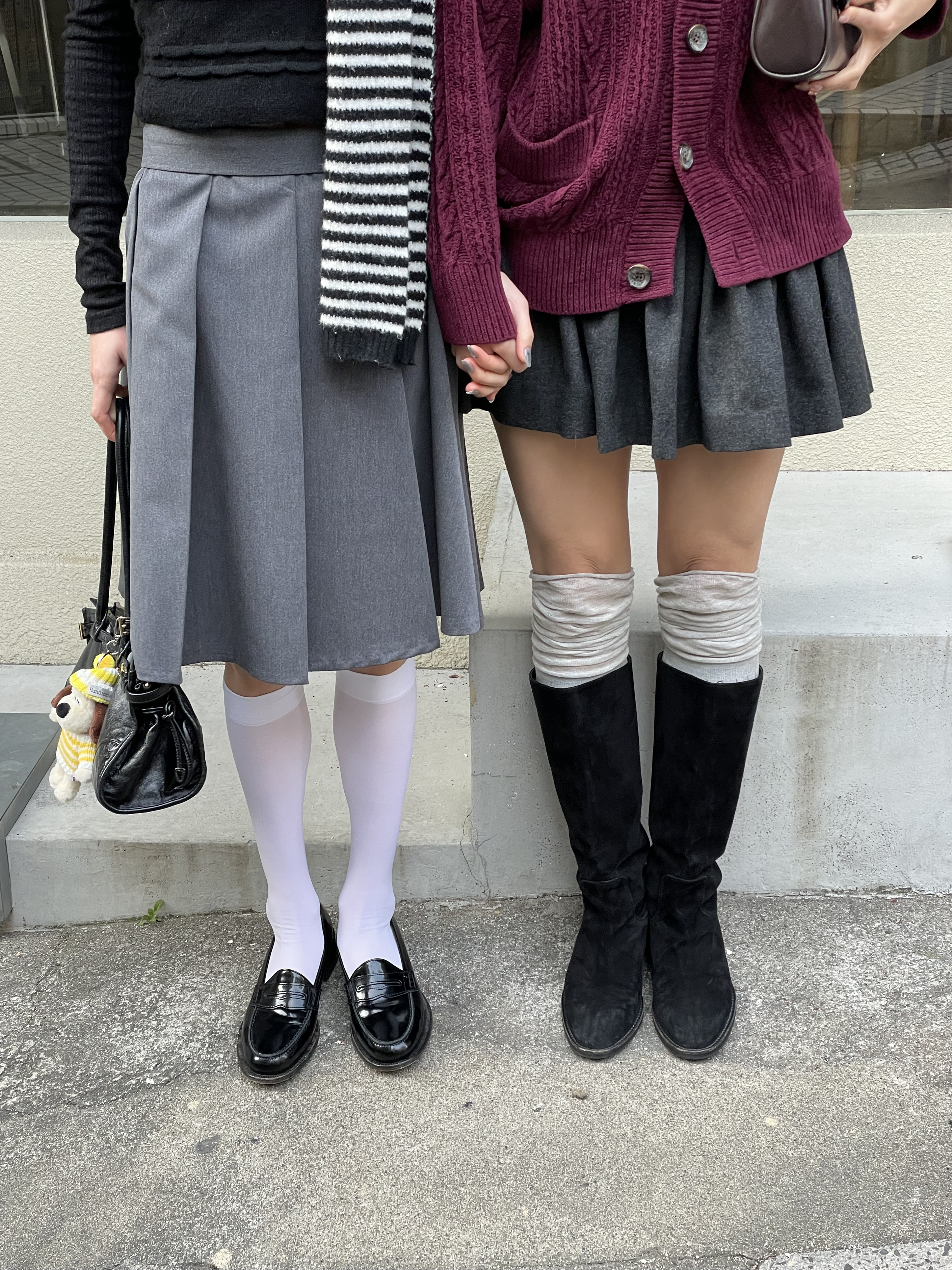 トップゆるゆるリブニーハイソックス グレーモク × 70デニールハイソックス サラシ