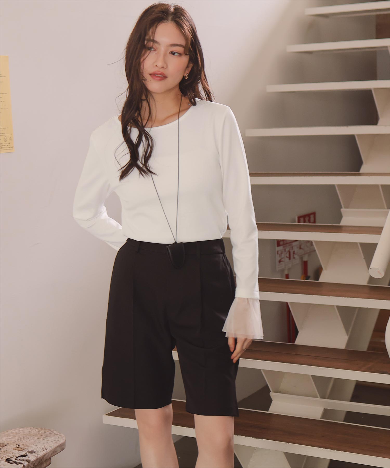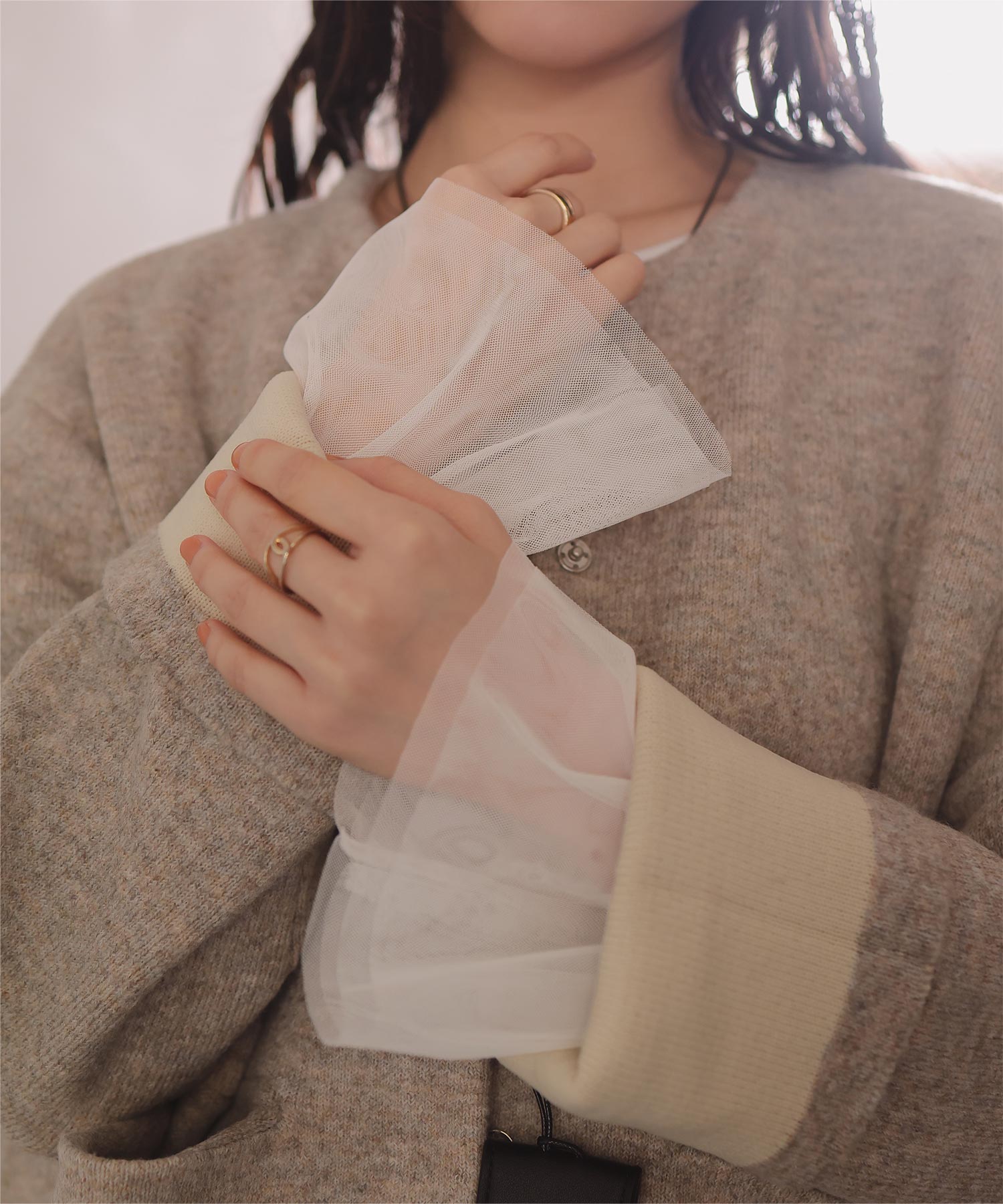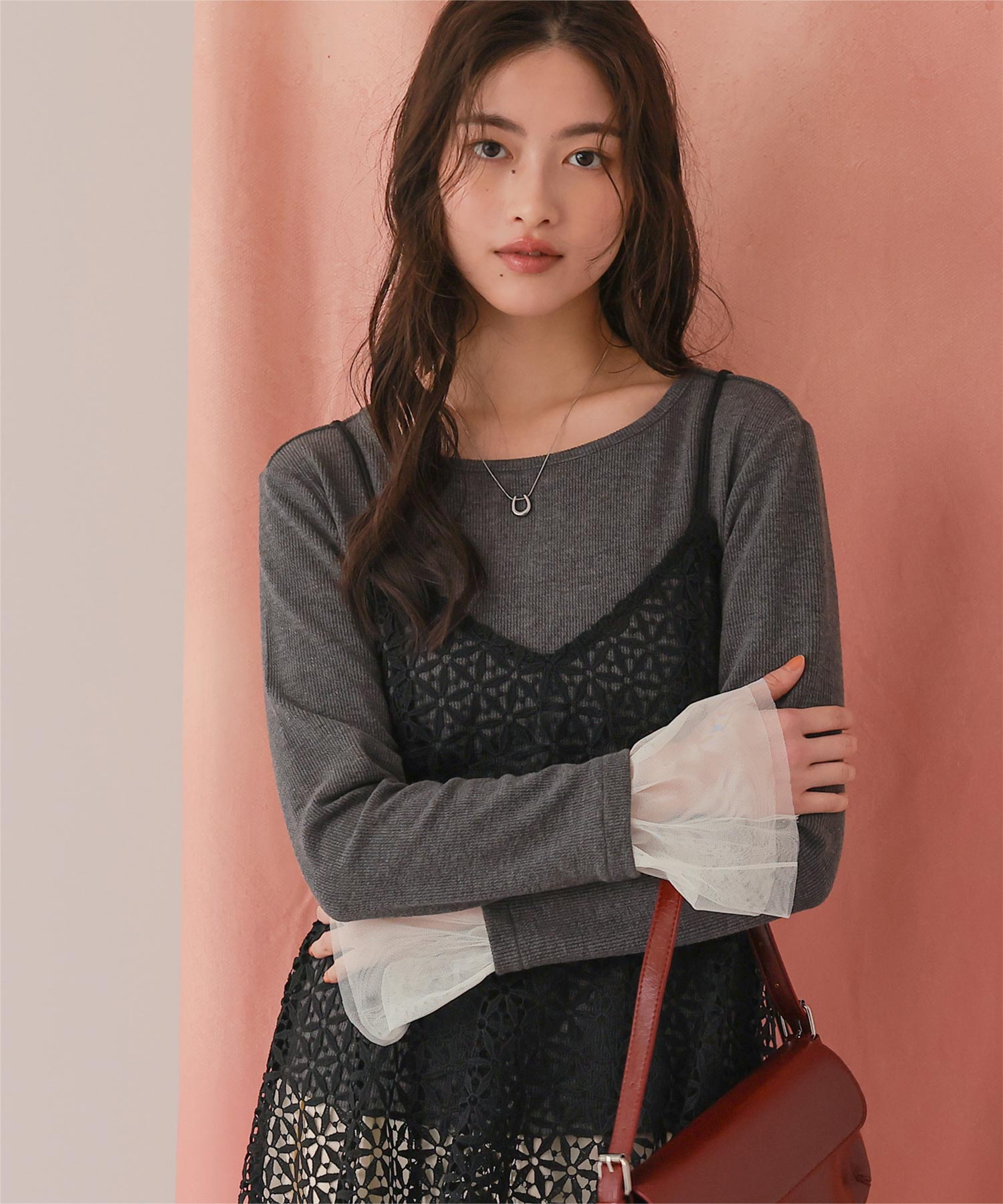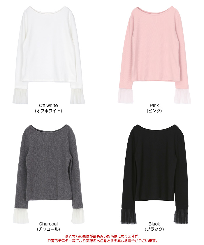 ・袖口のチュールフリルが手元を華やかに彩る、大人フェミニンなカットソートップス