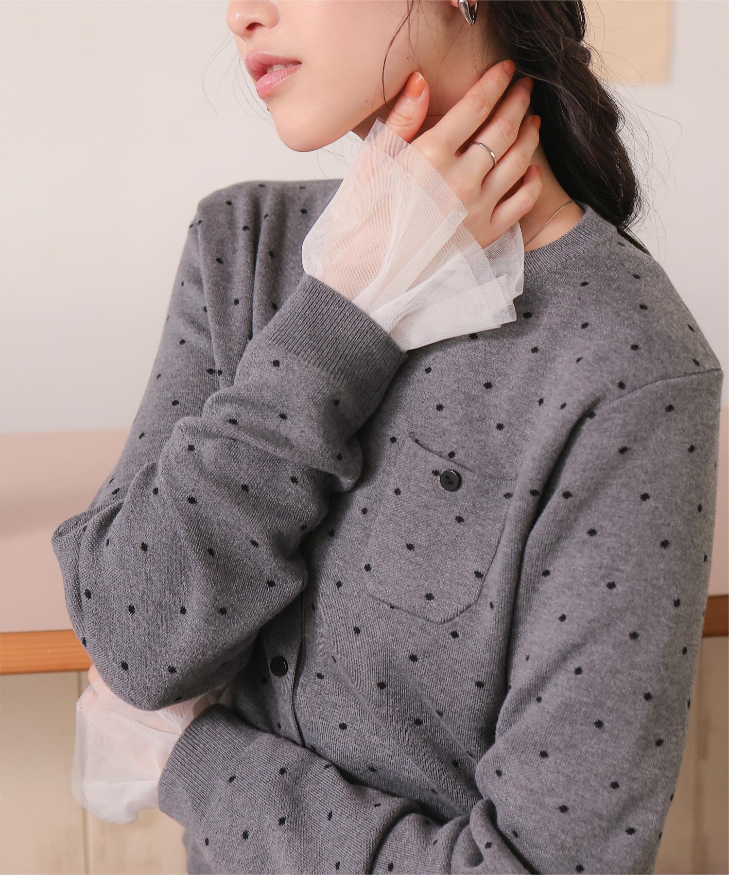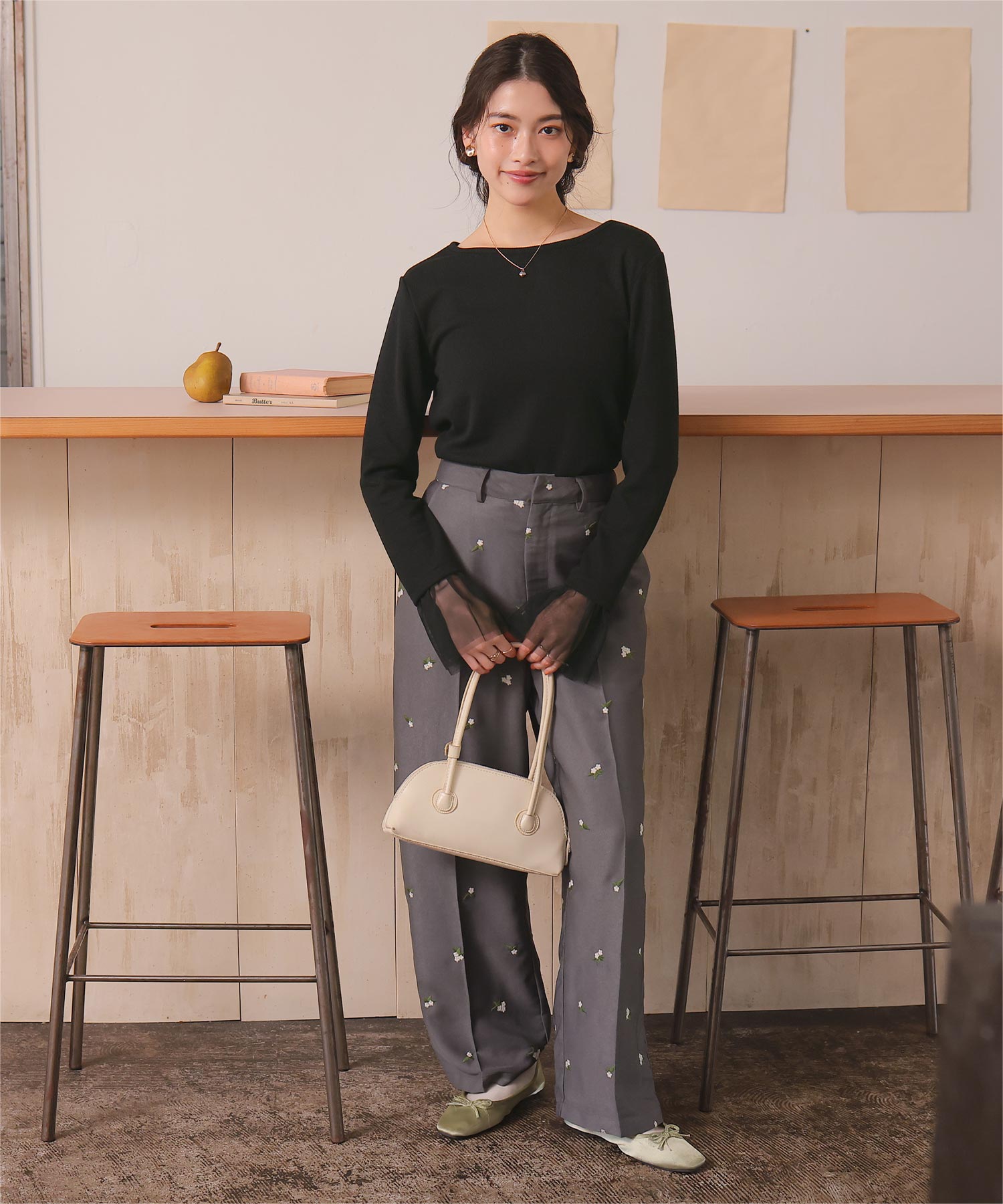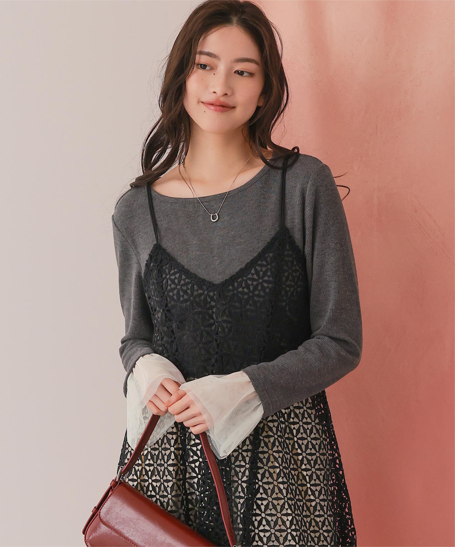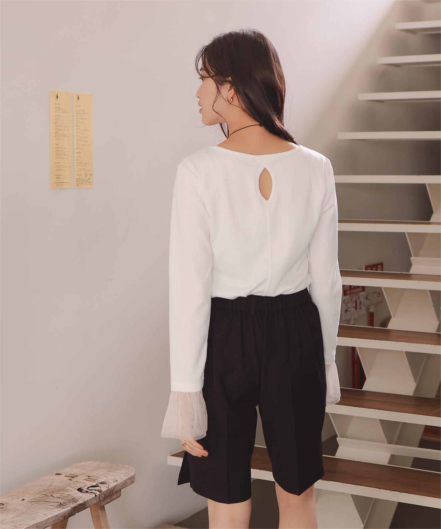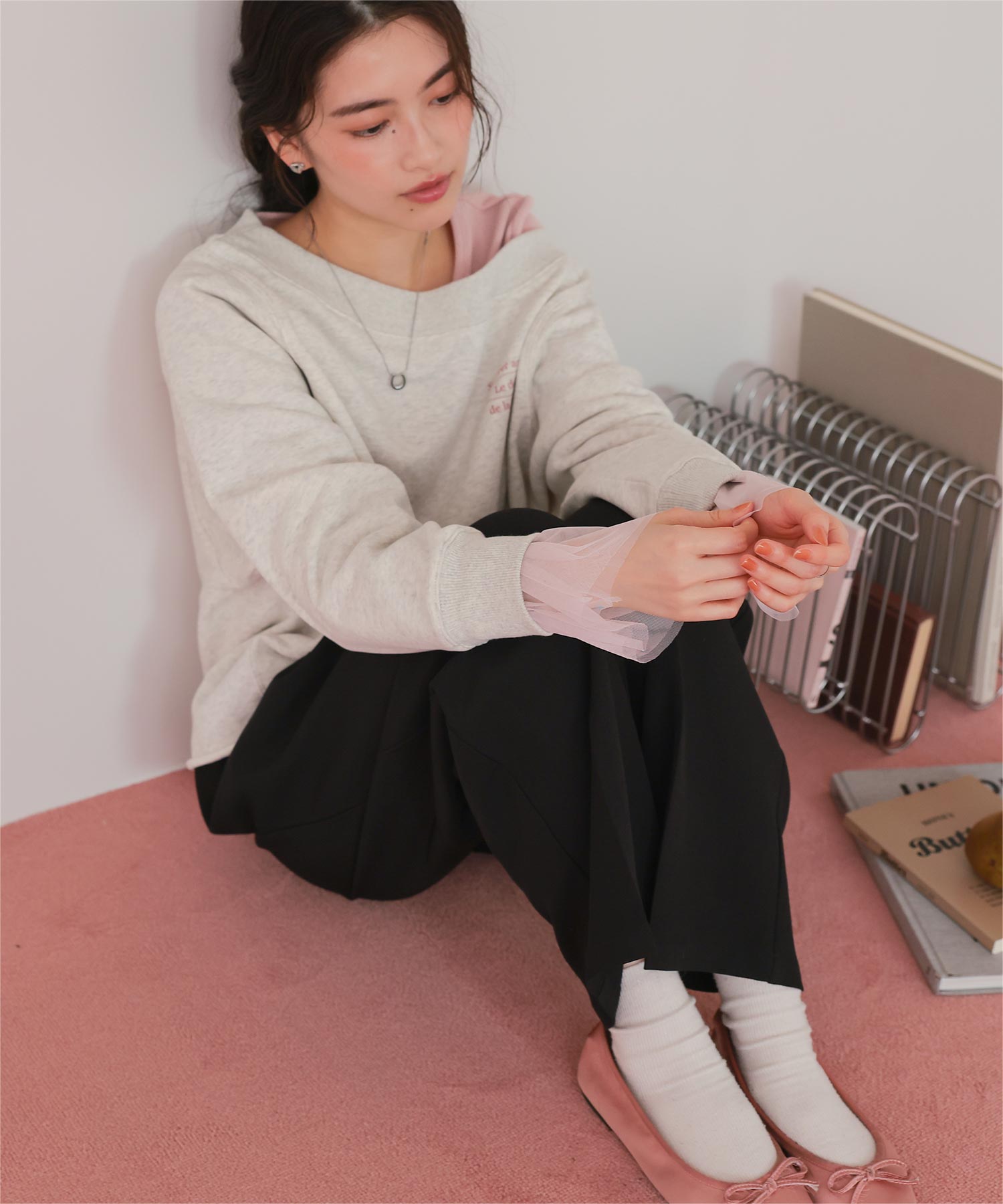 ・袖口のチュールフリルが手元を華やかに彩る、大人フェミニンなカットソートップス