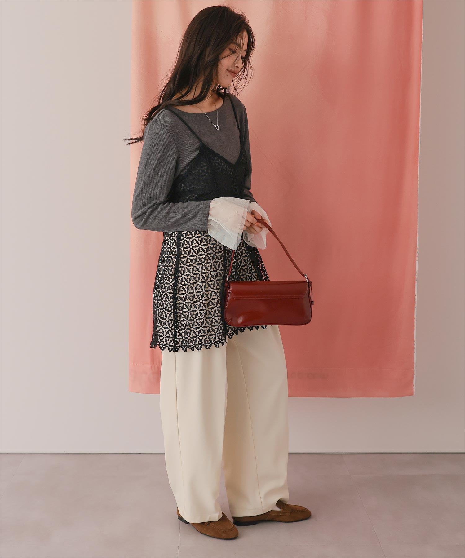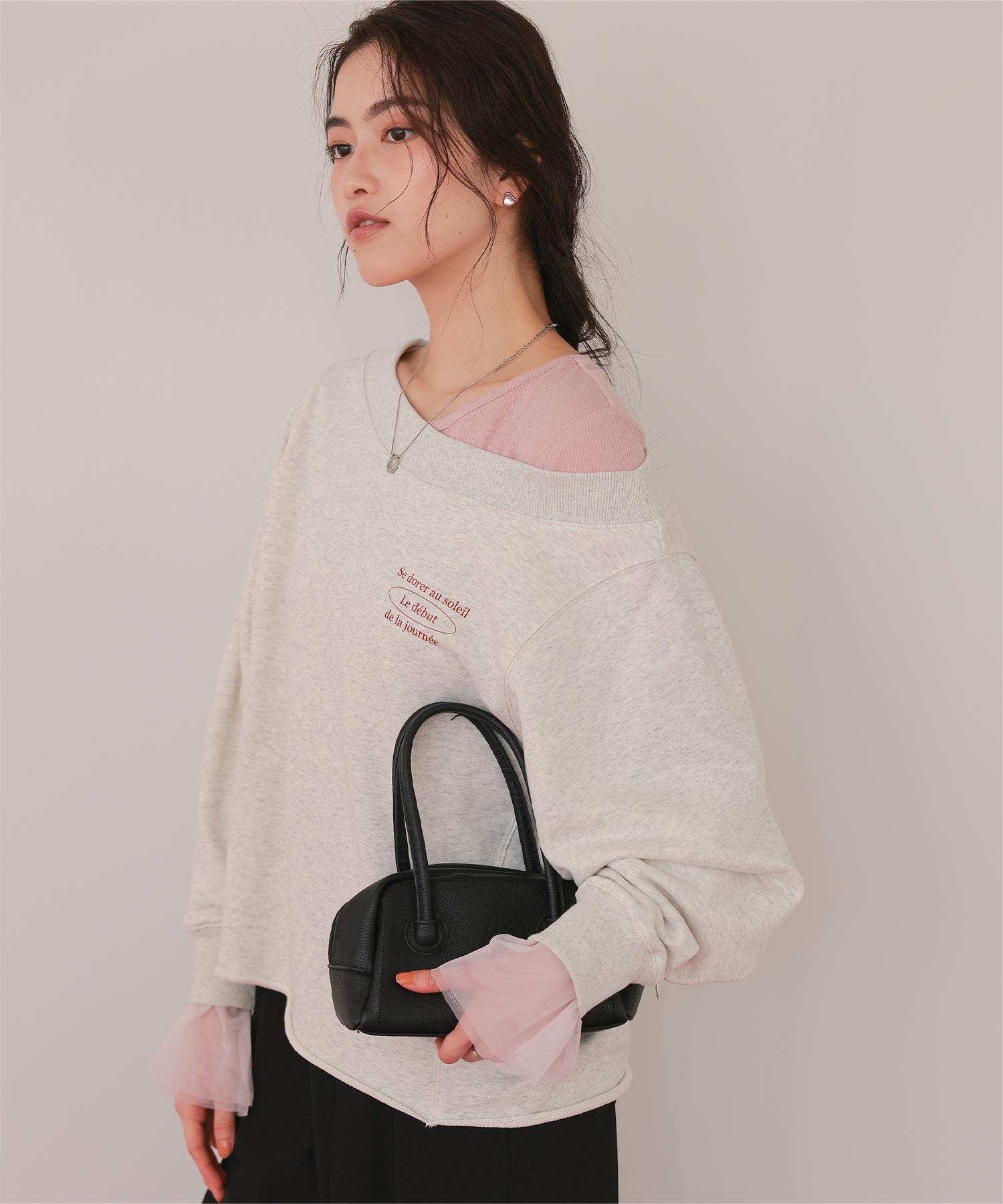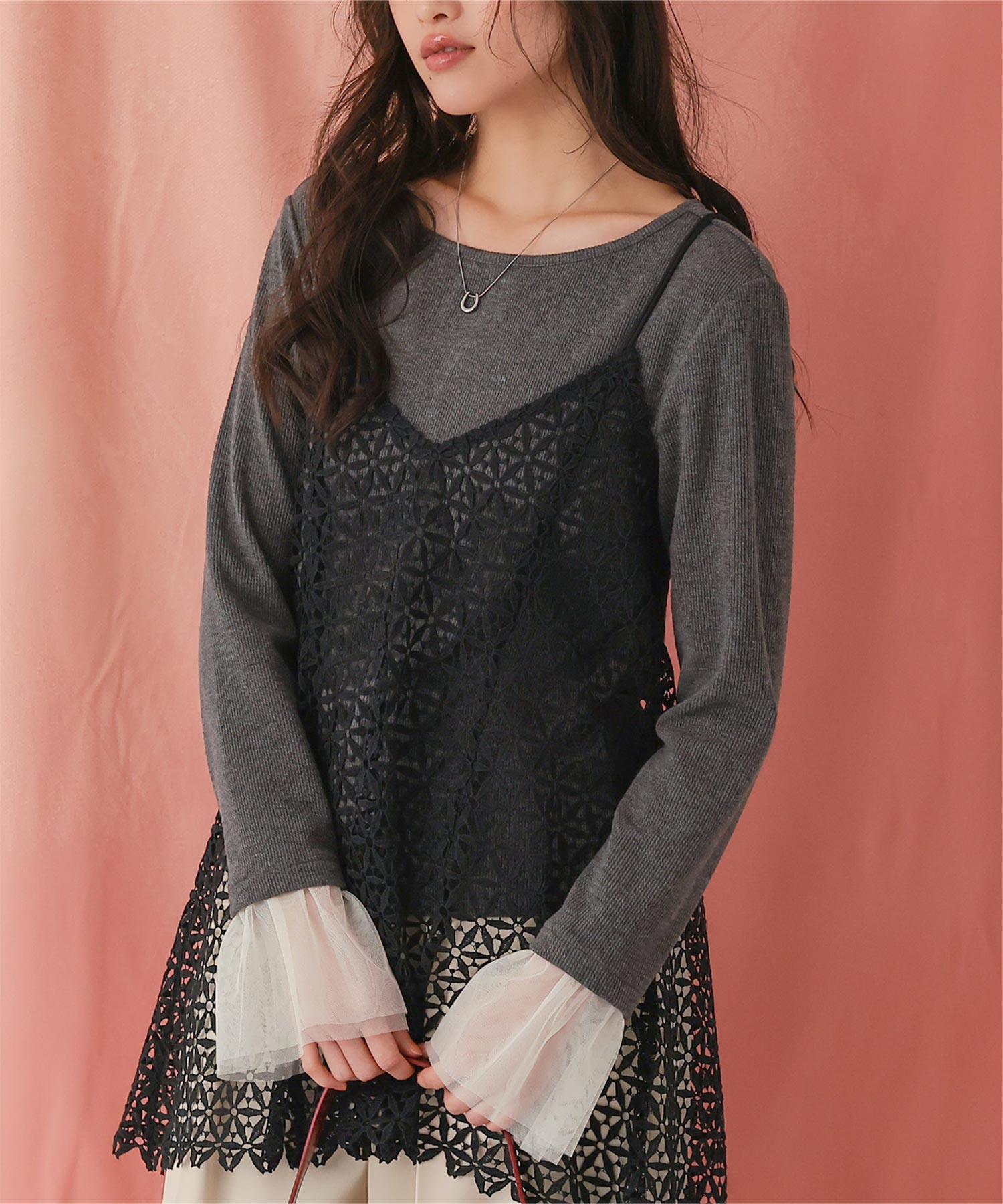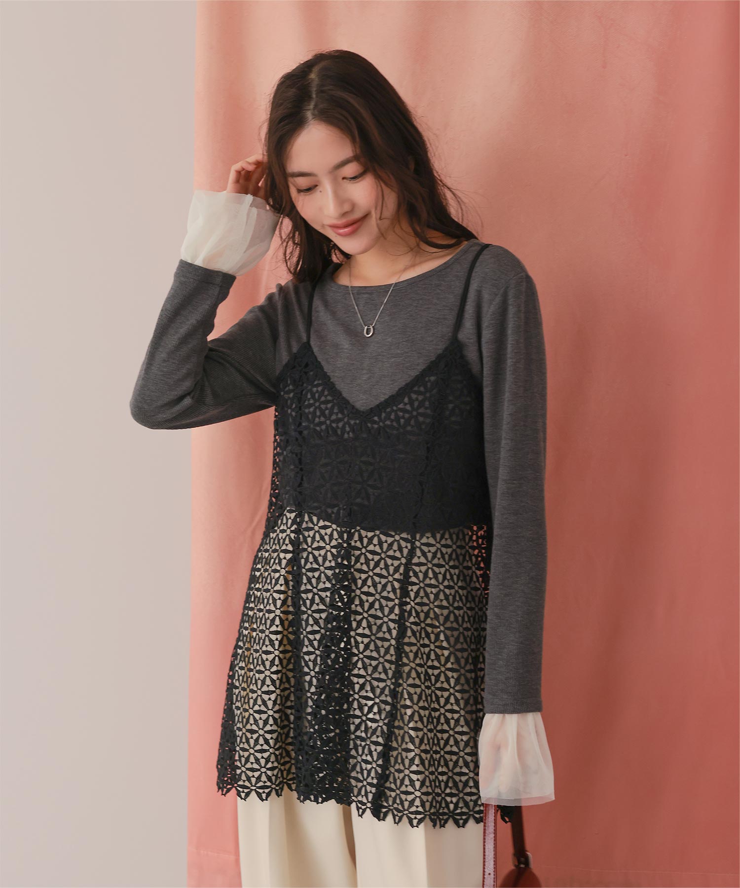 ・袖口のチュールフリルが手元を華やかに彩る、大人フェミニンなカットソートップス