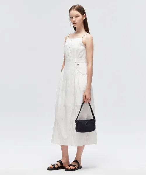 (CTH2) Pocket Shirring Sleeveless Long Dress-WHITE