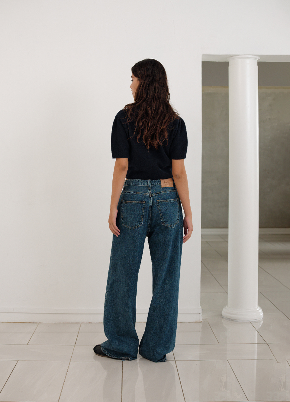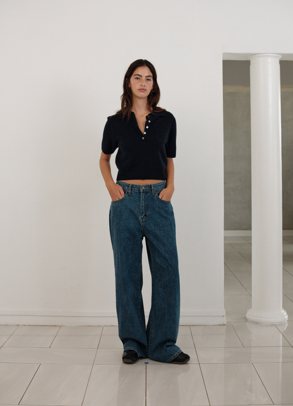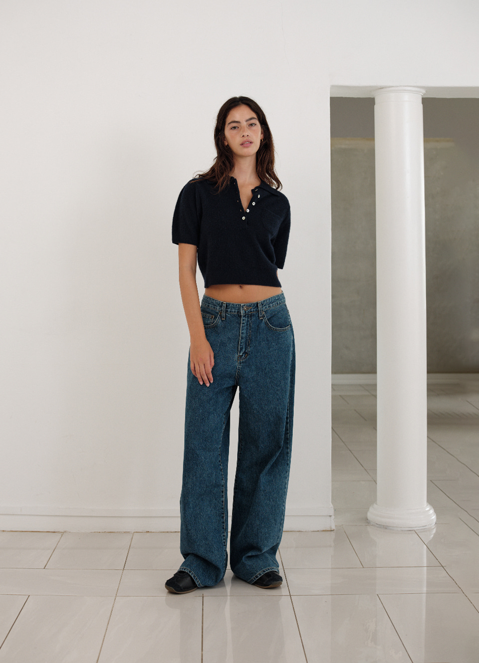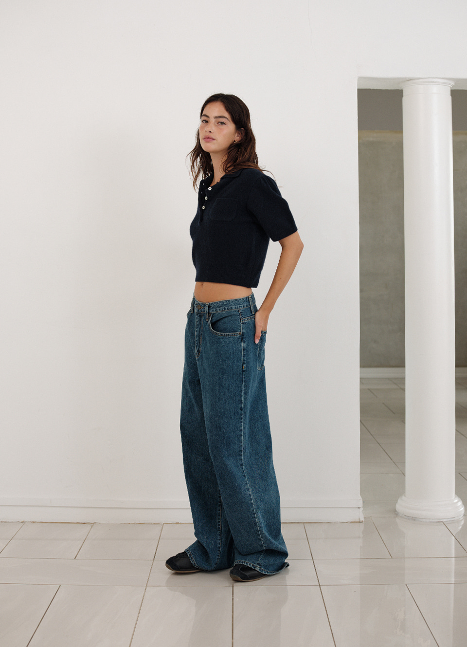 セミクロップ丈とボタン留め仕様のニットタイプ