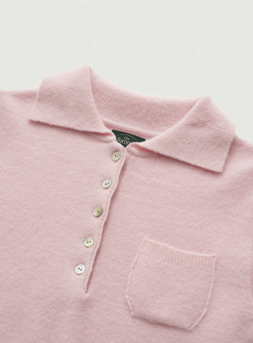カラーネック、フロントのチェストポケット、そしてハーフスリーブのディテール