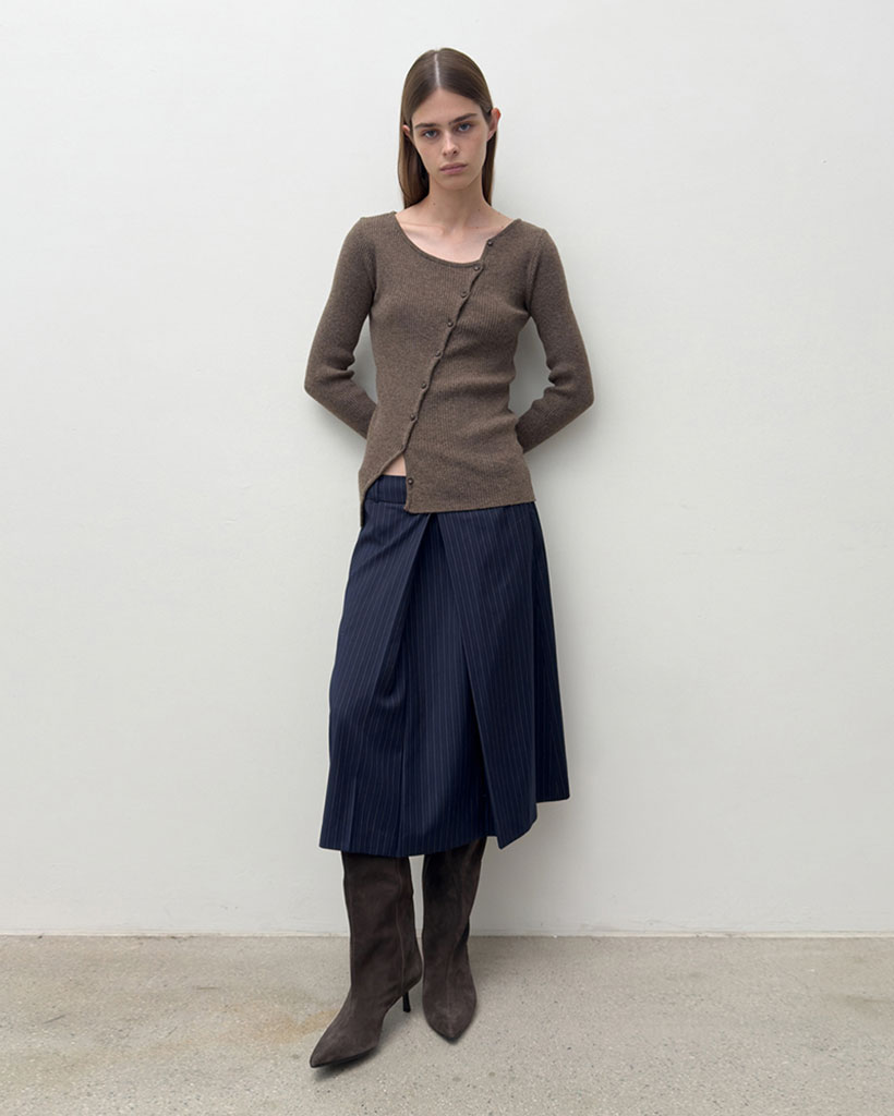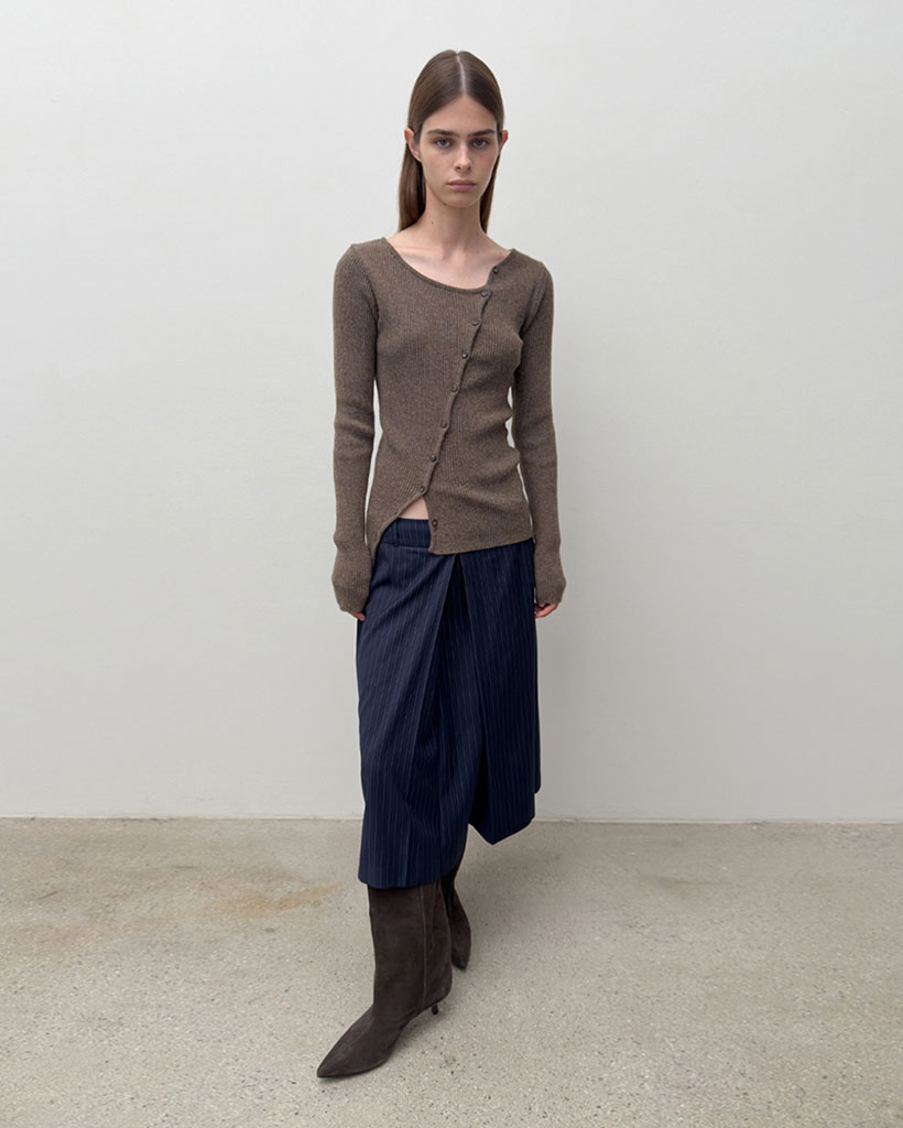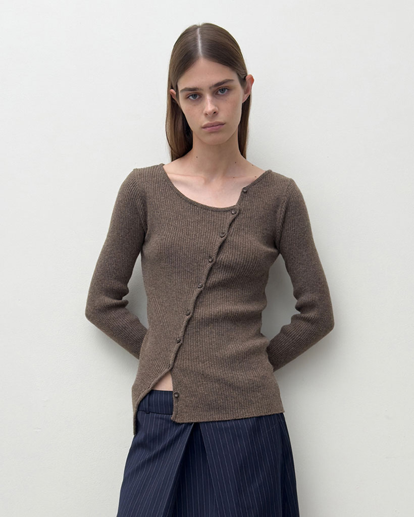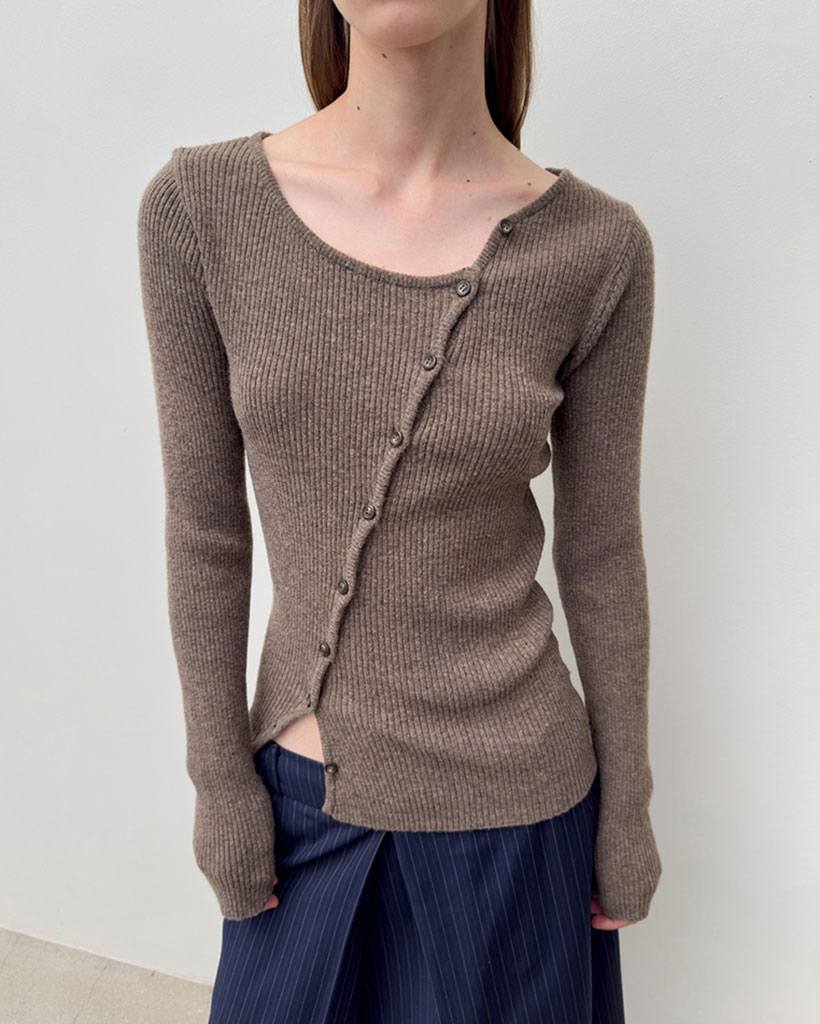 DIAGONAL BUTTON KNIT (brown)