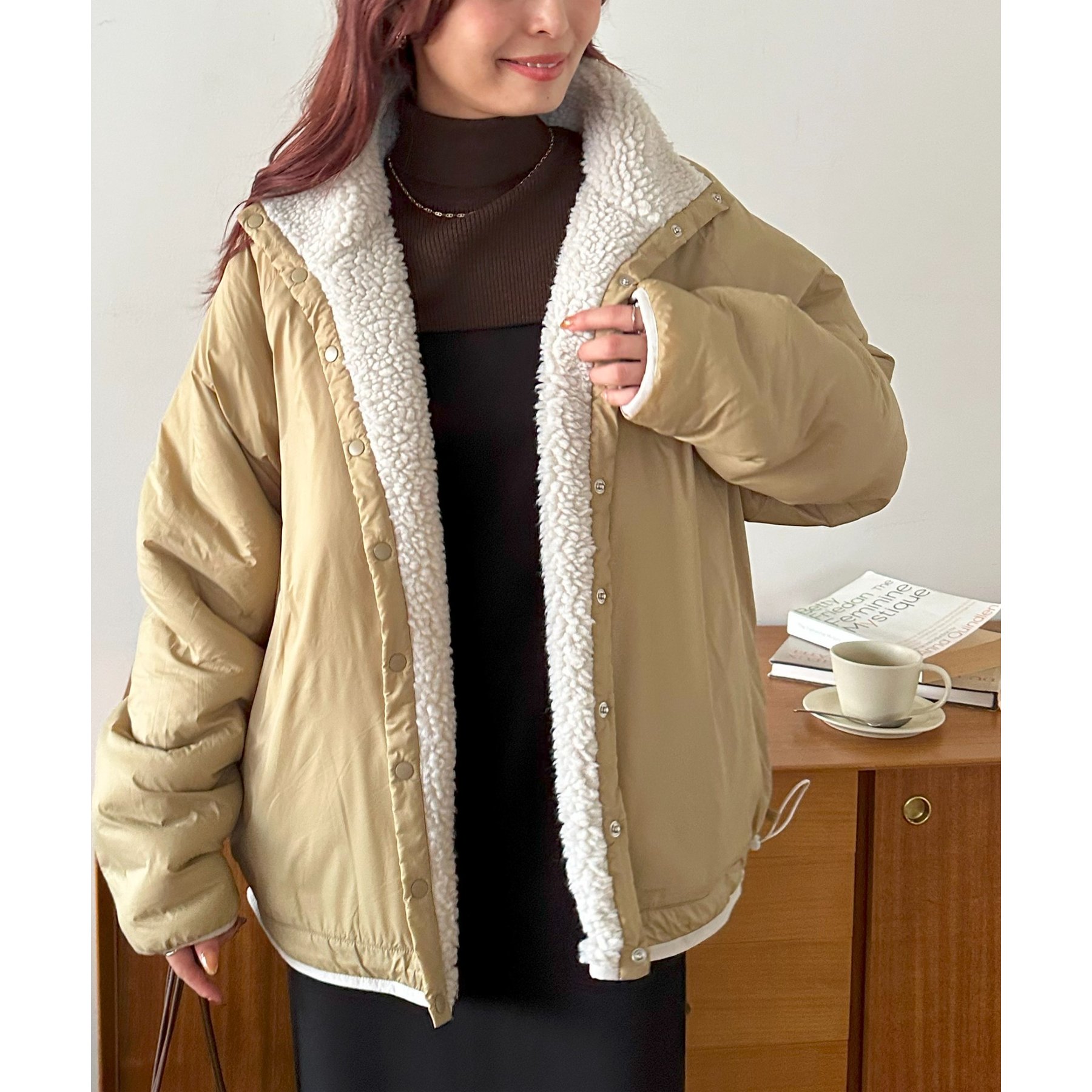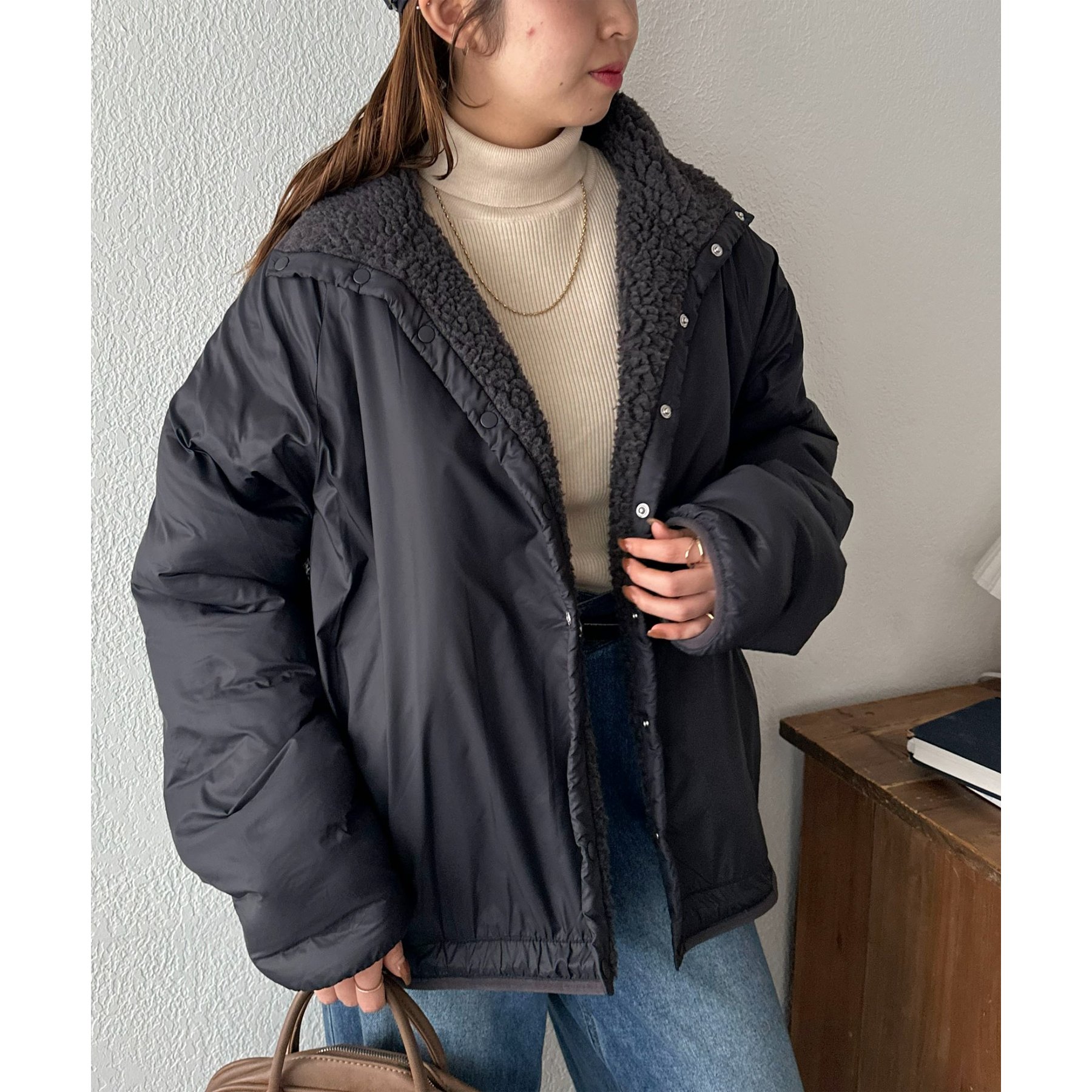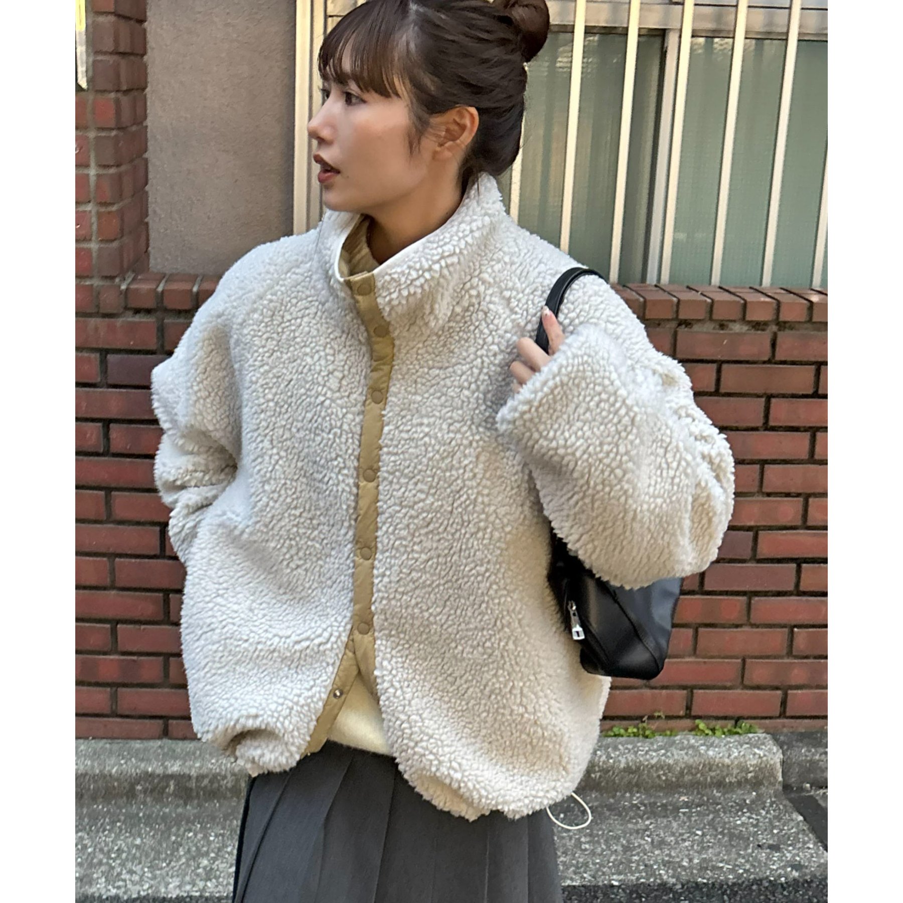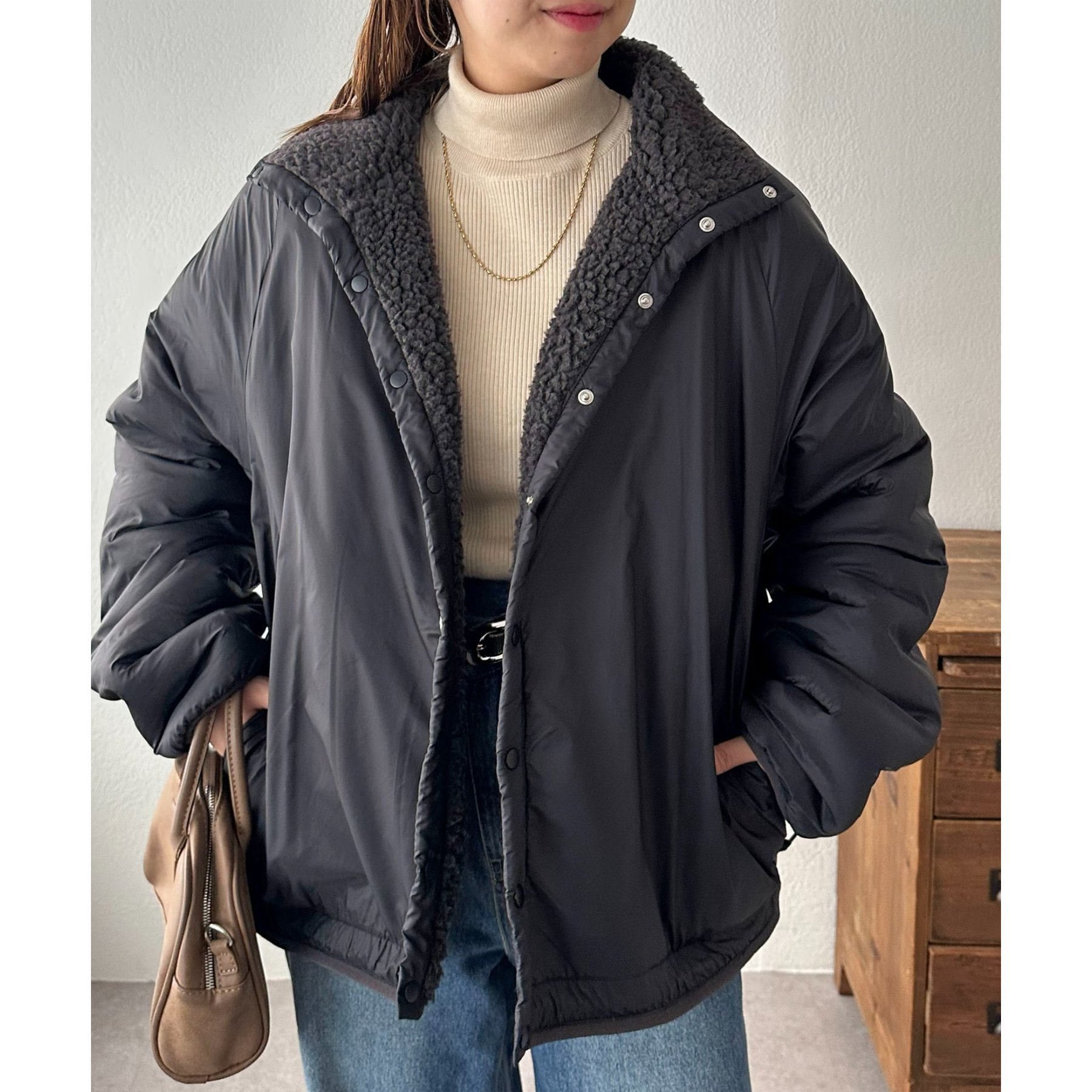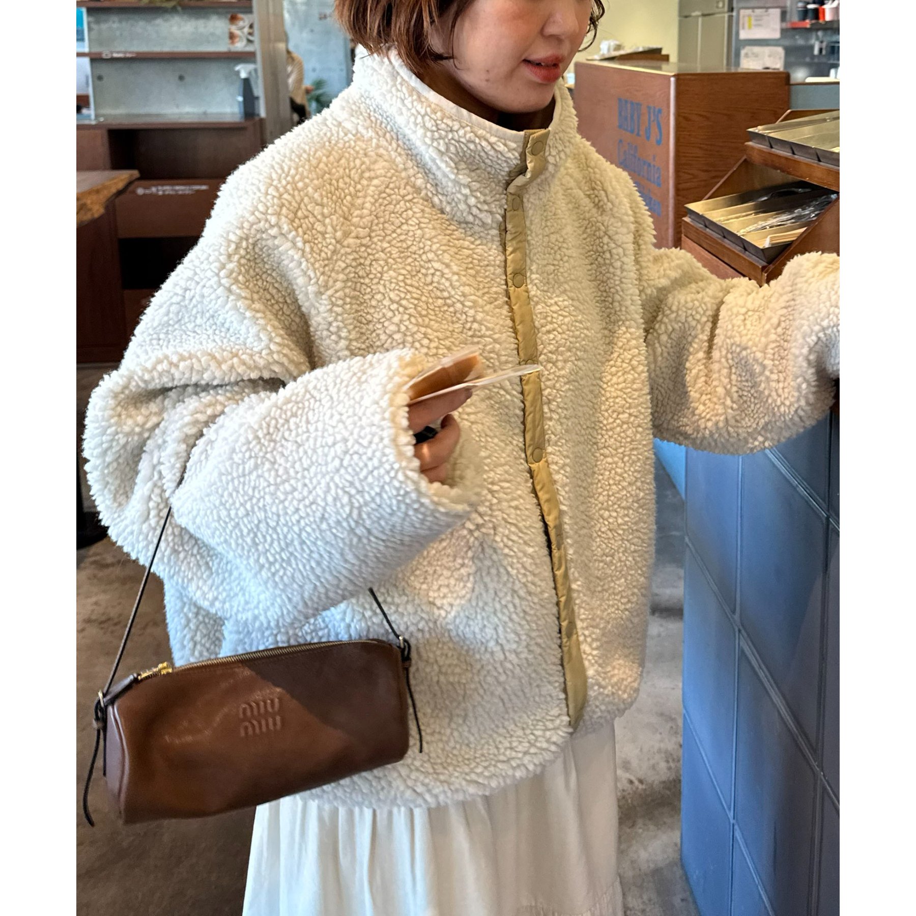 157cmレディーススタッフ:ボア素材の方を表で着ると柔らかな可愛らしさもある雰囲気になり、ナイロン側をメインに着るとカジュアル感が増します!