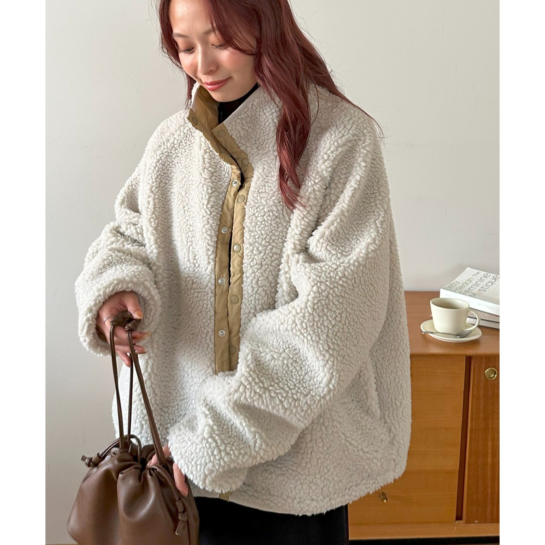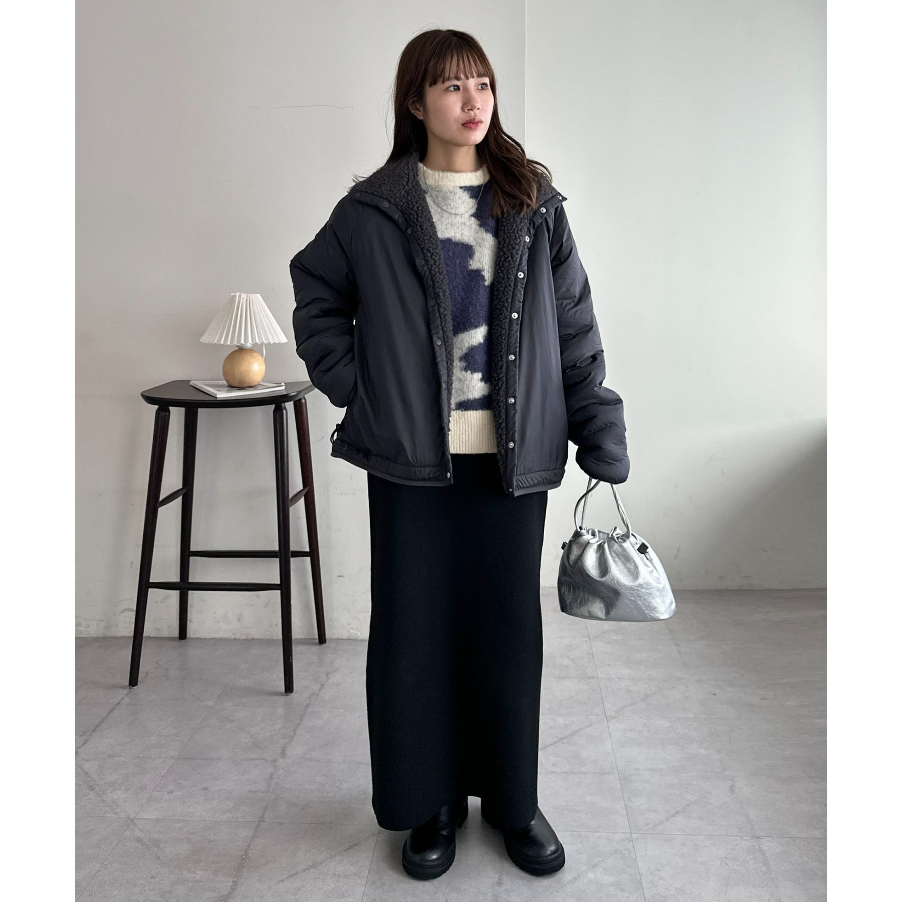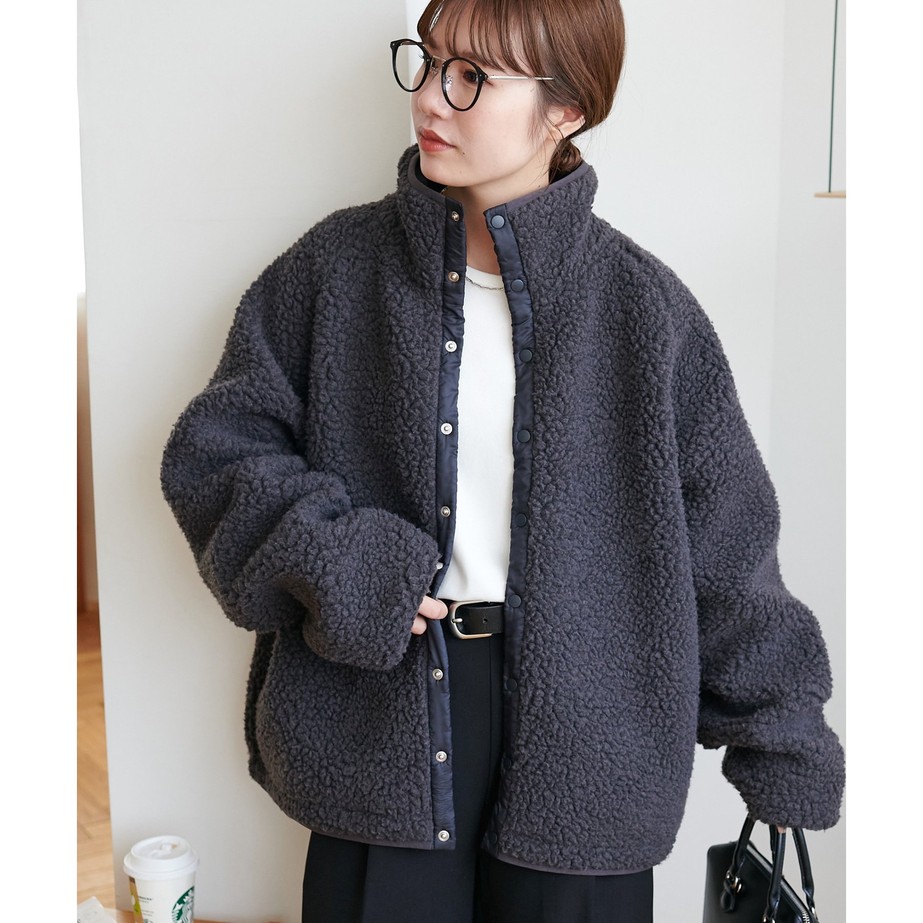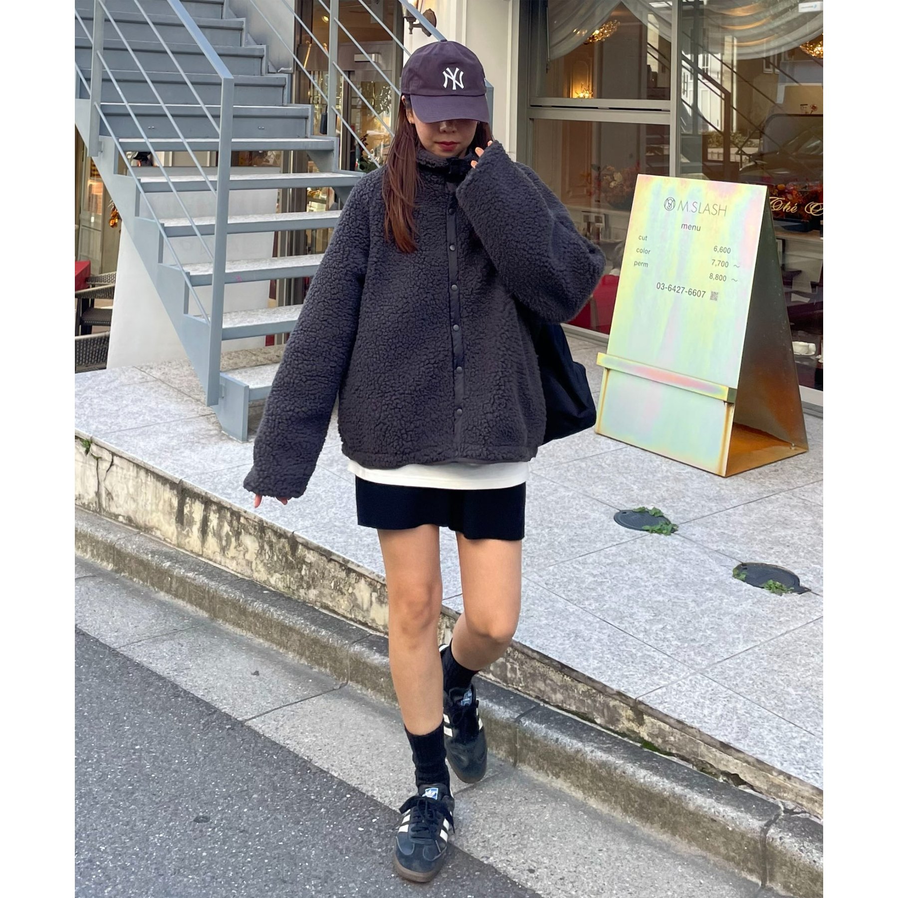 157cmレディーススタッフ:ボア素材の方を表で着ると柔らかな可愛らしさもある雰囲気になり、ナイロン側をメインに着るとカジュアル感が増します!