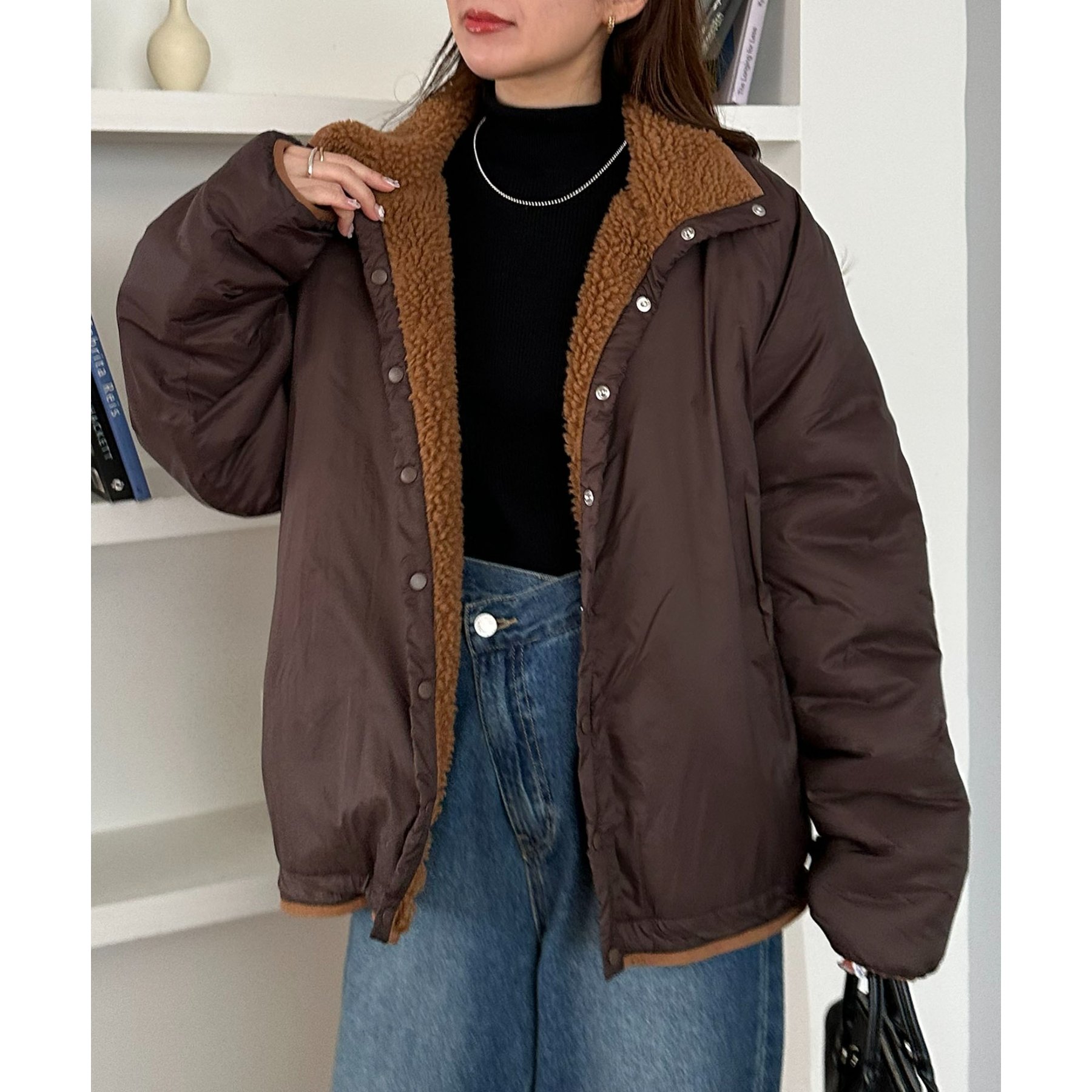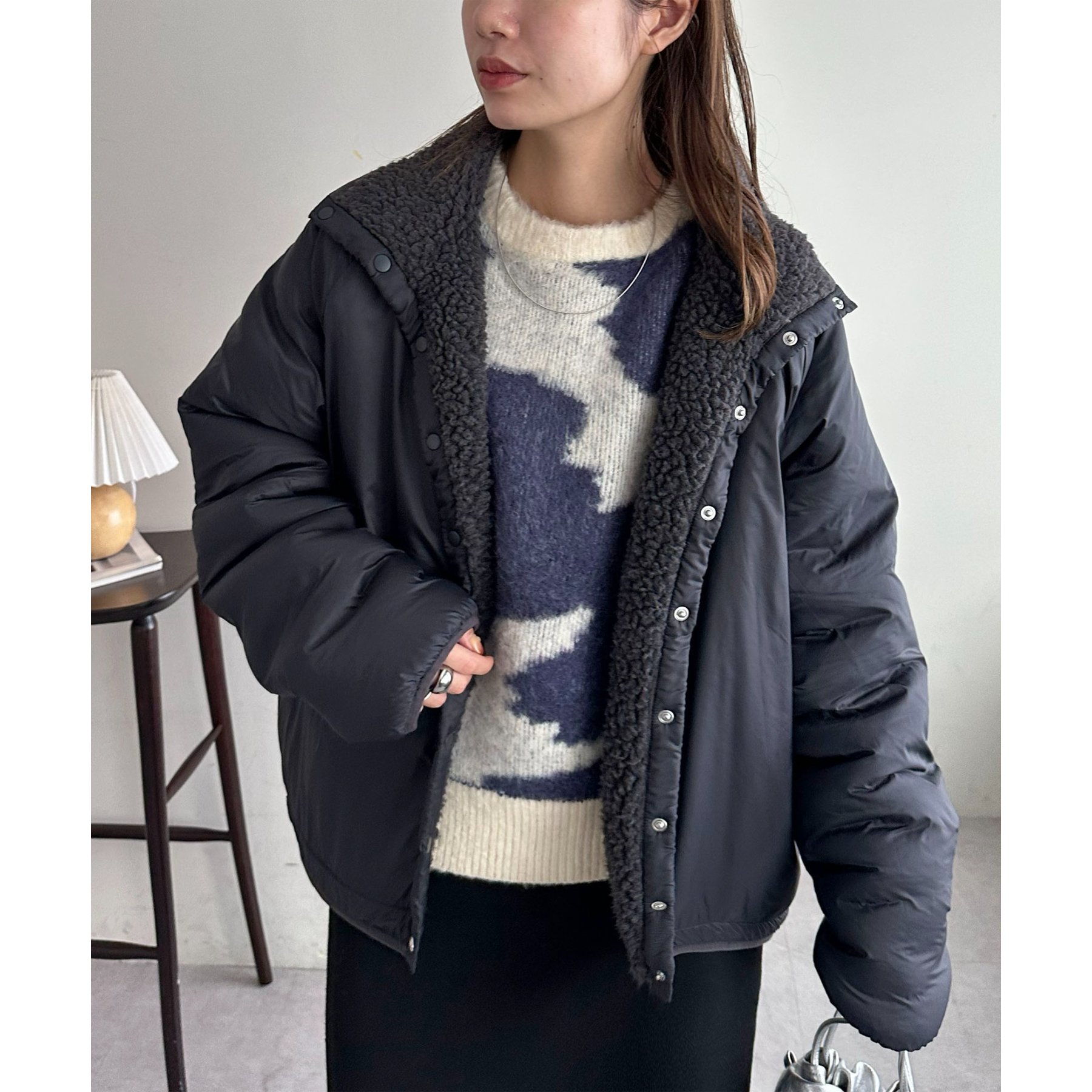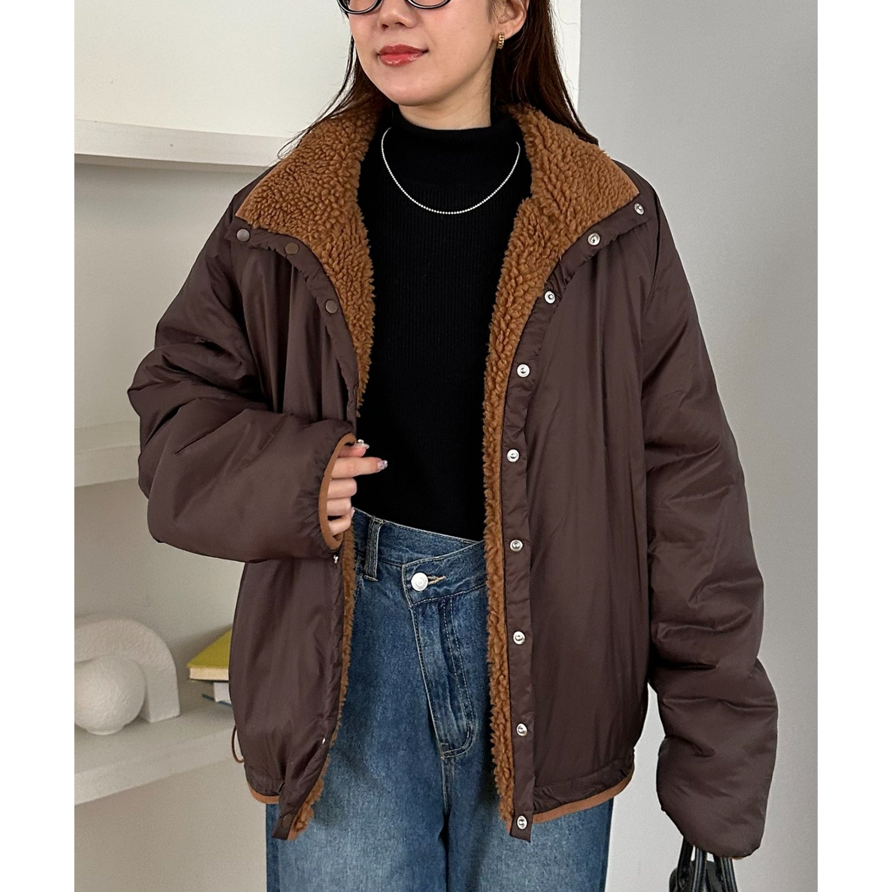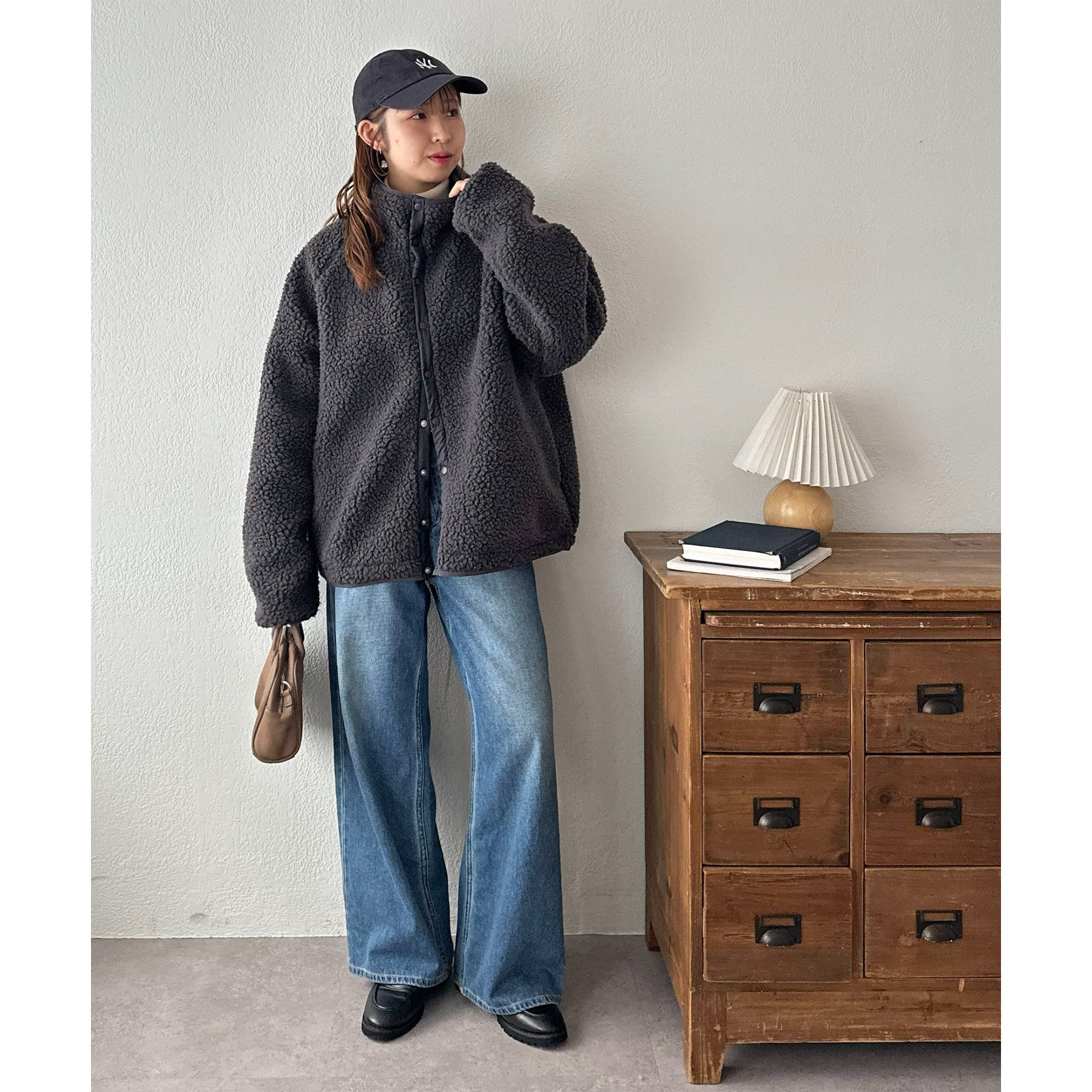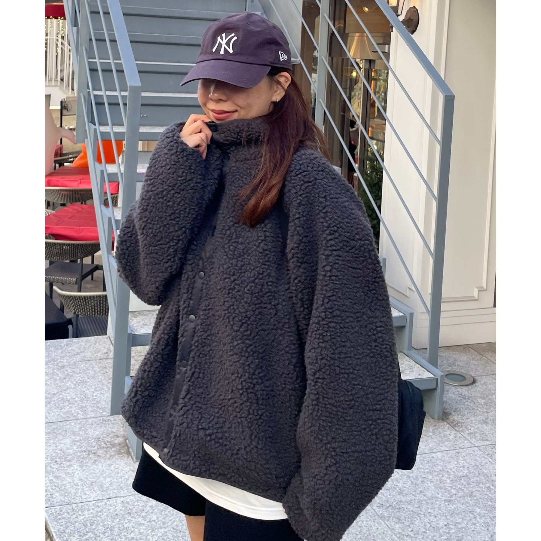 157cmレディーススタッフ:ボア素材の方を表で着ると柔らかな可愛らしさもある雰囲気になり、ナイロン側をメインに着るとカジュアル感が増します!