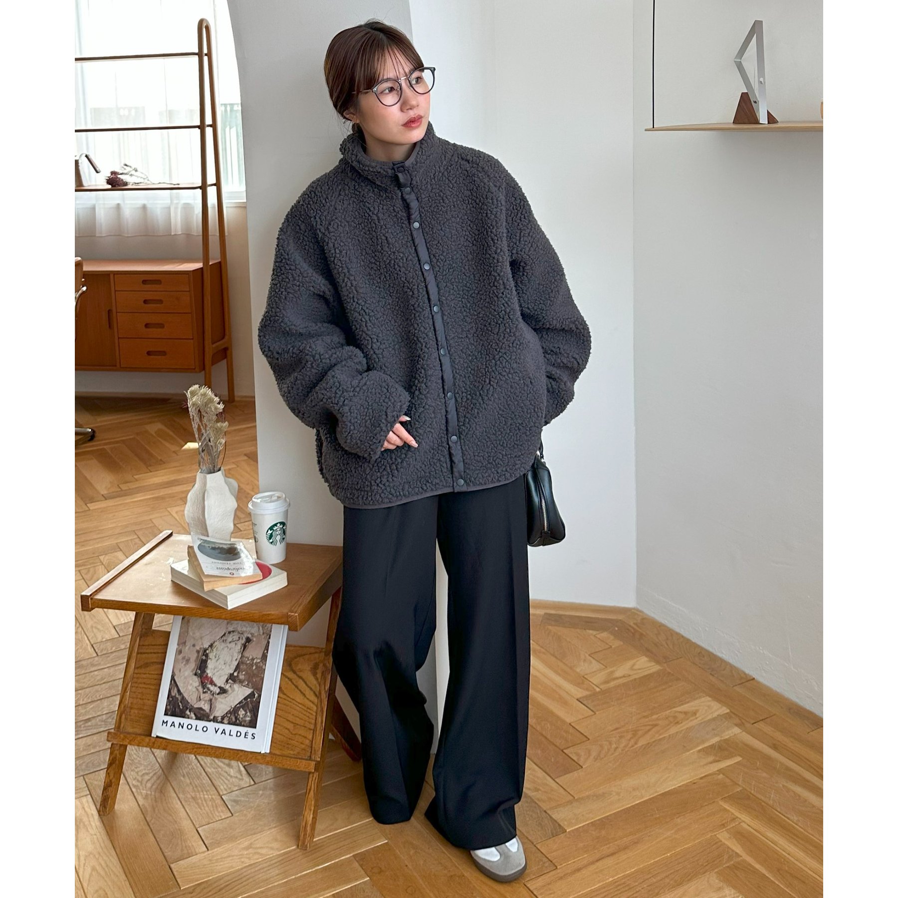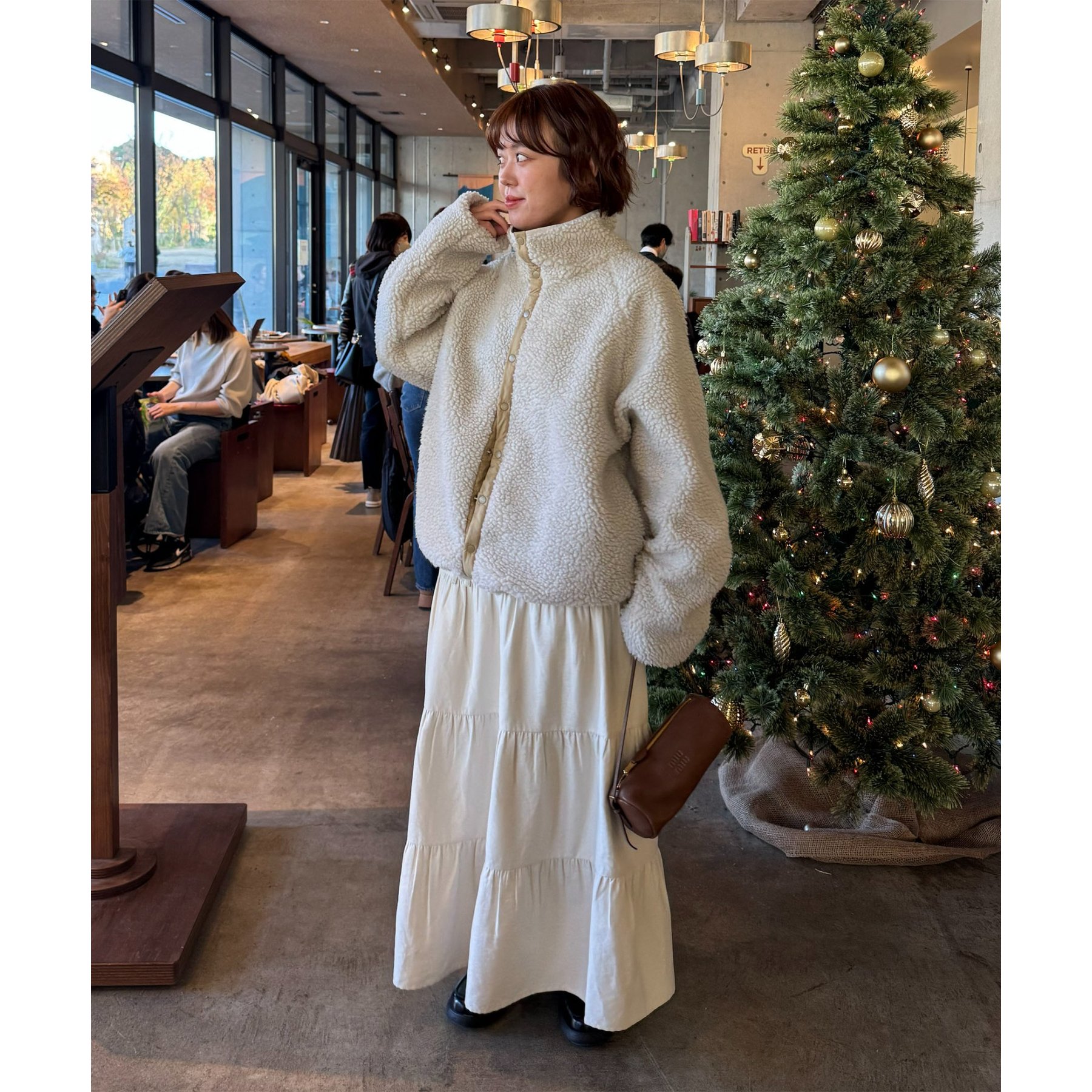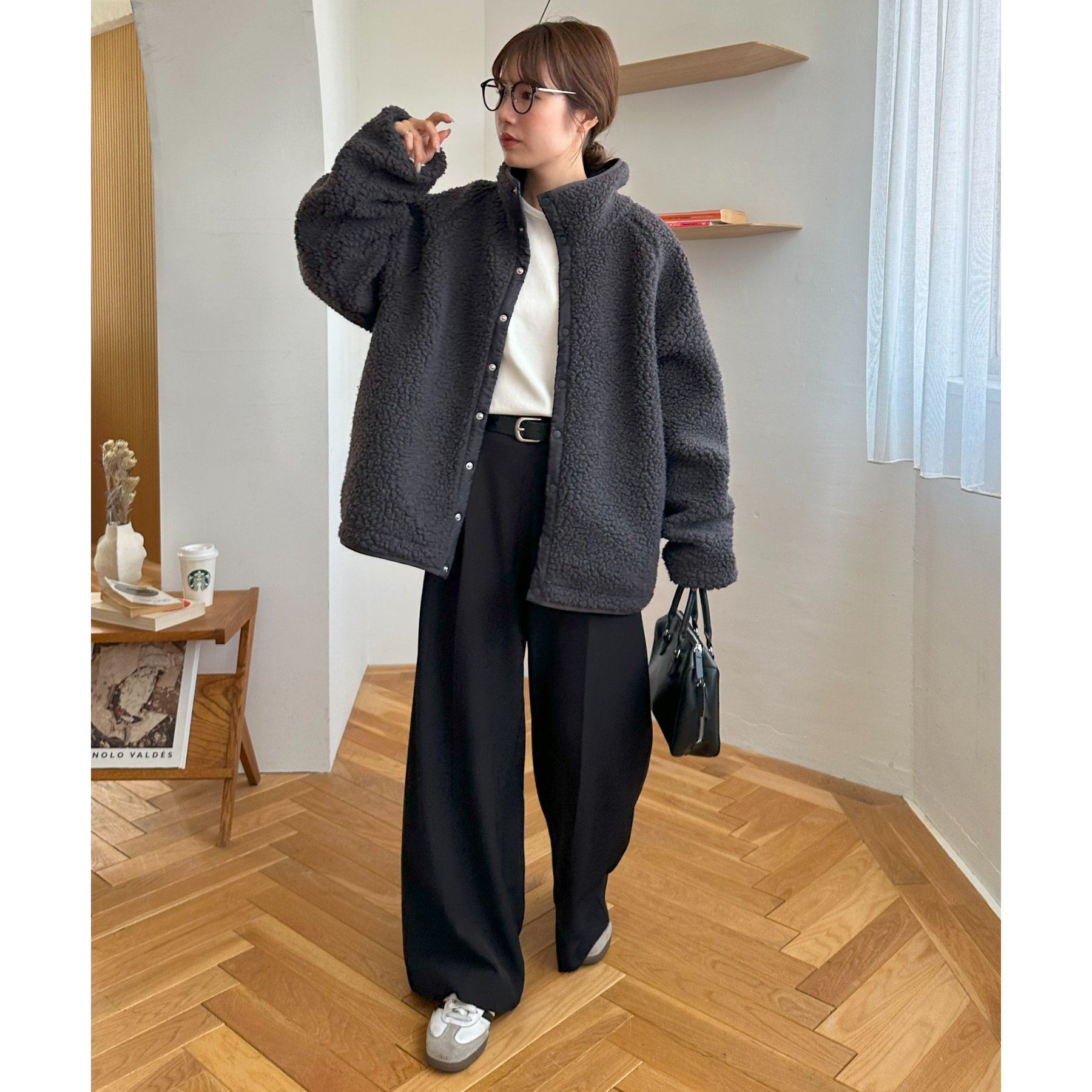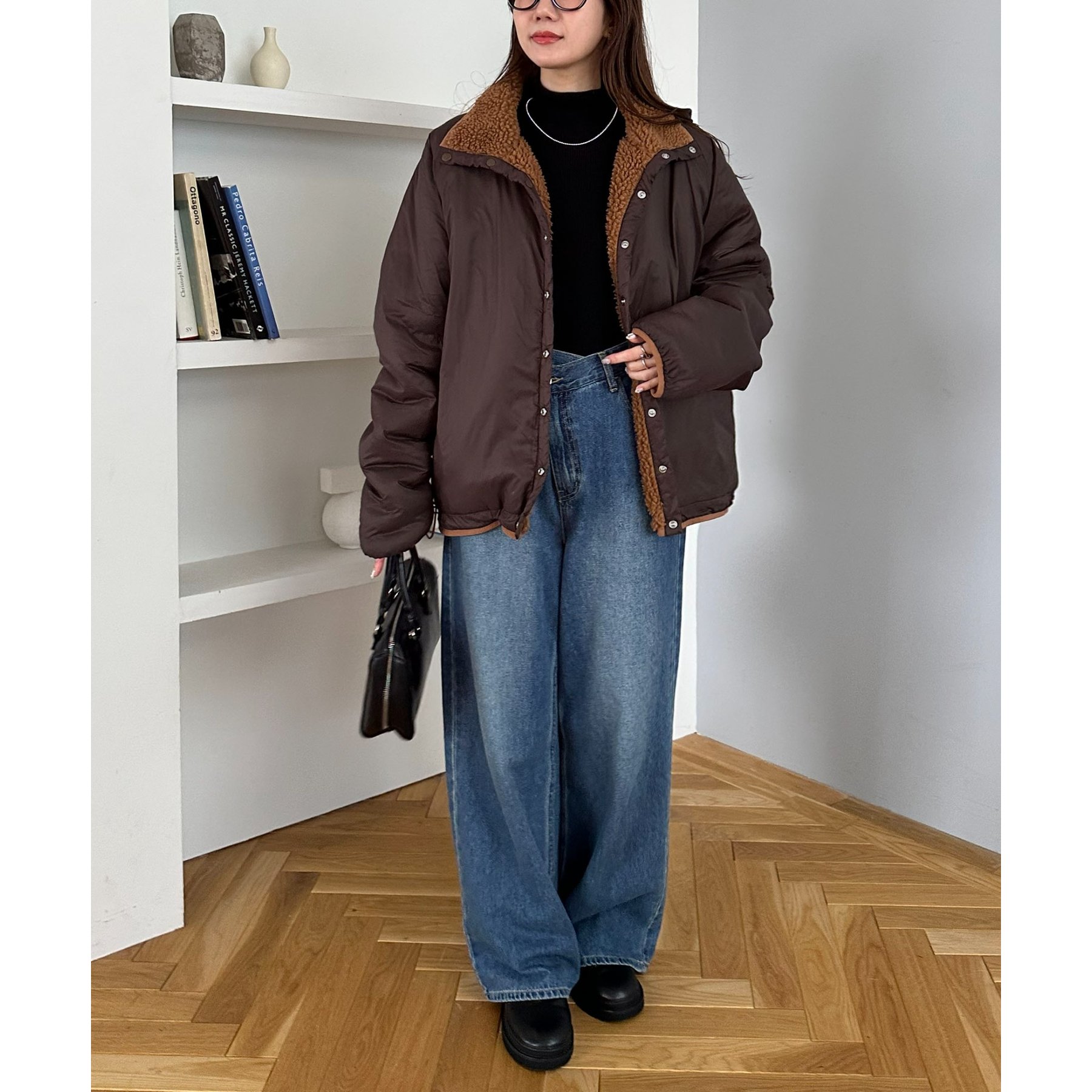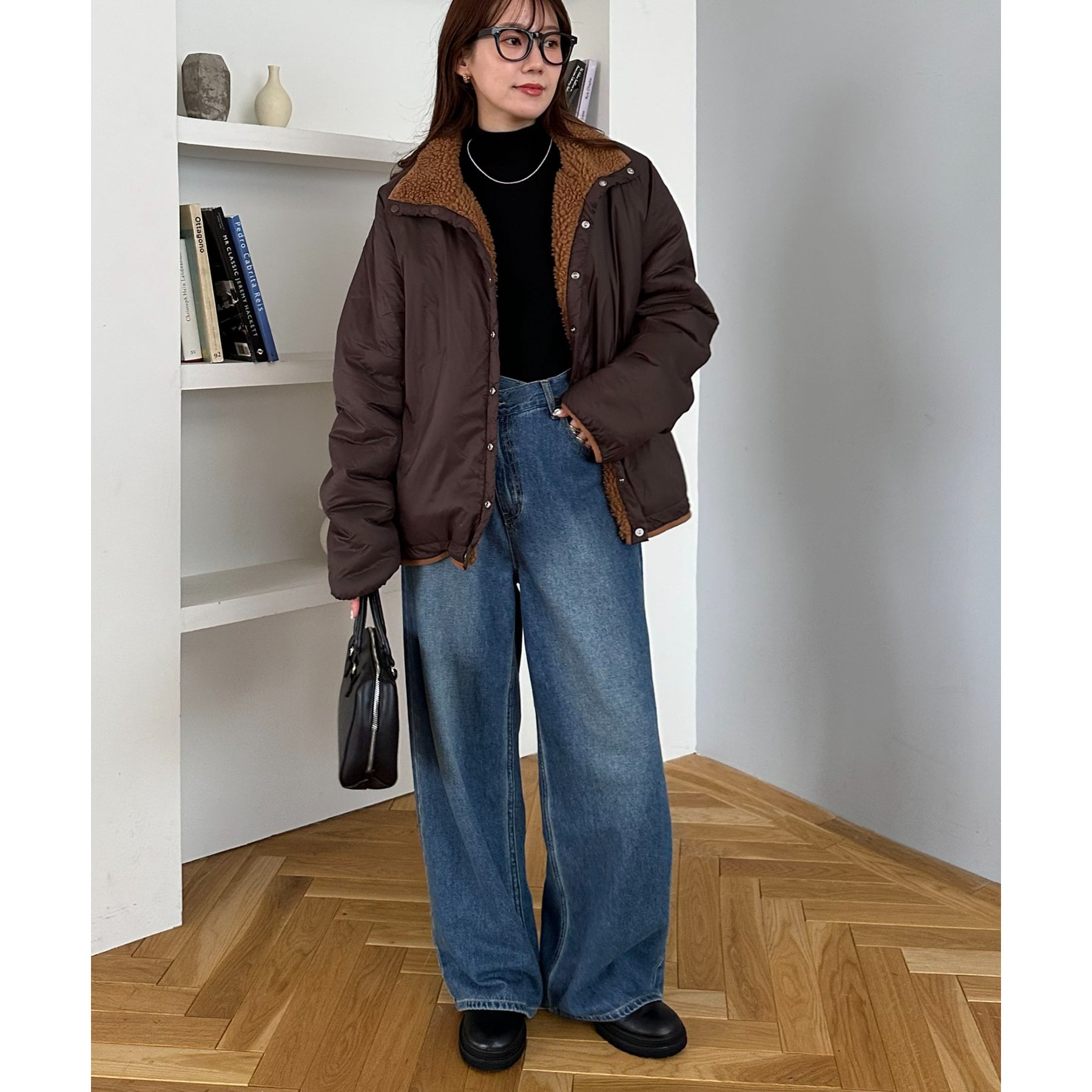 157cmレディーススタッフ:ボア素材の方を表で着ると柔らかな可愛らしさもある雰囲気になり、ナイロン側をメインに着るとカジュアル感が増します!