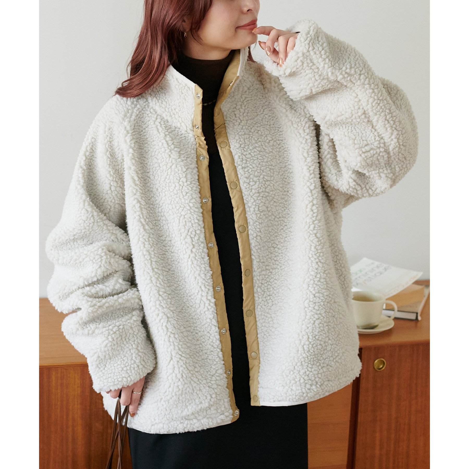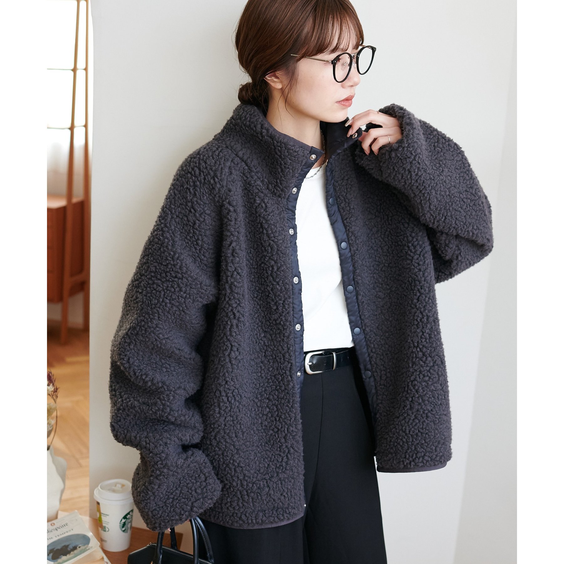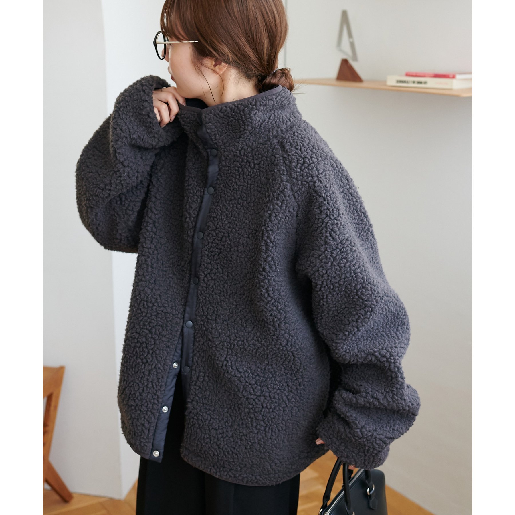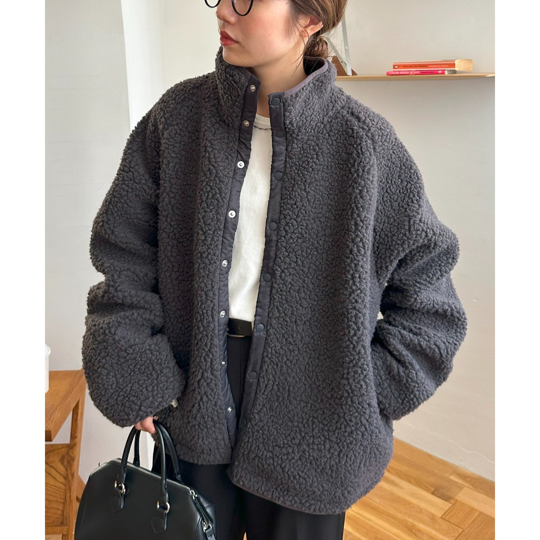 ・ボア面は柔らかく肌さわりの良い生地感、ナイロン面はさらっとしたカジュアルな素材感
