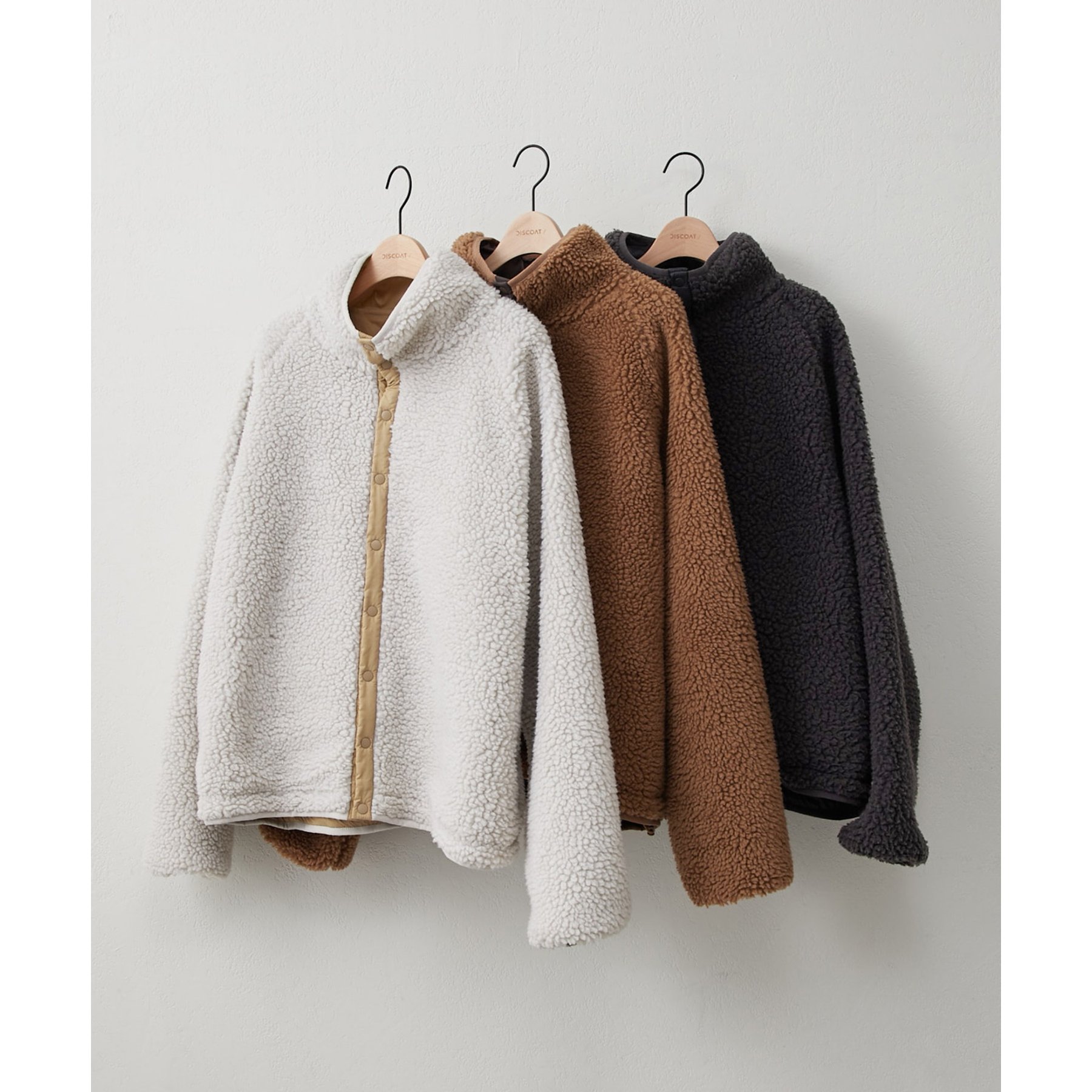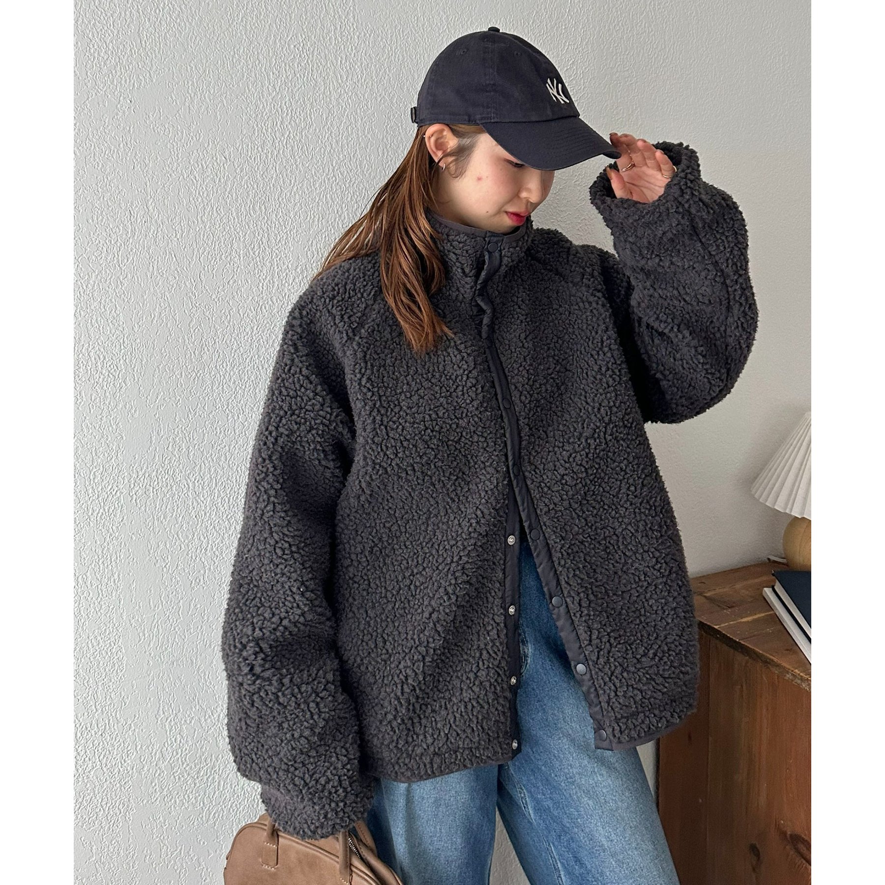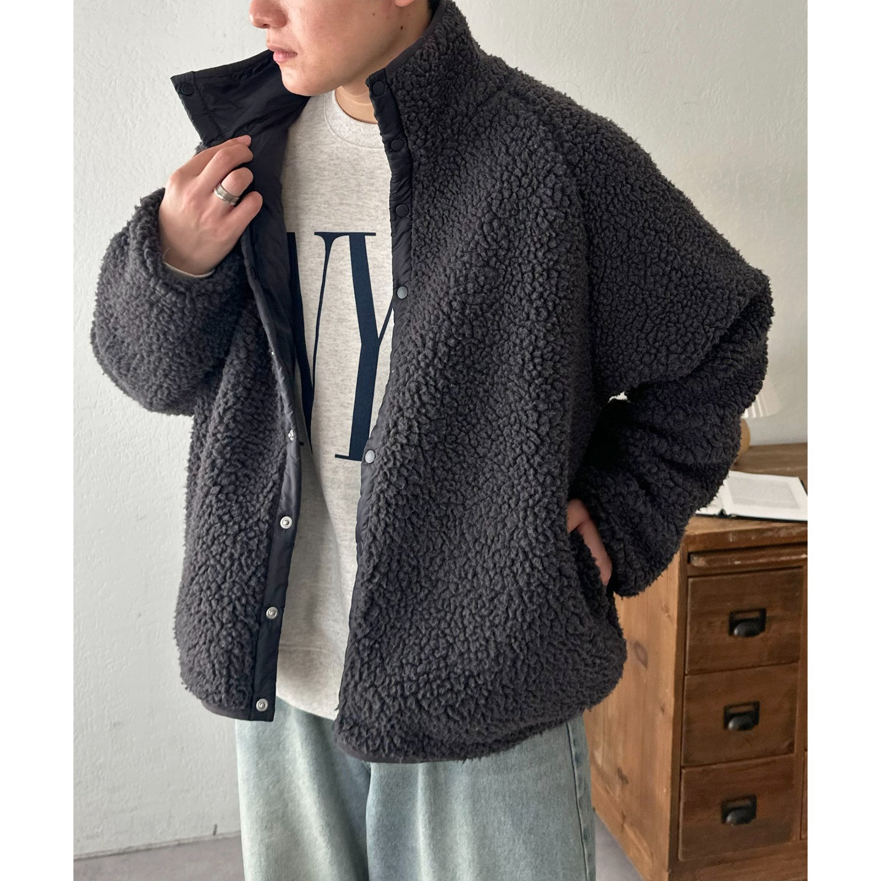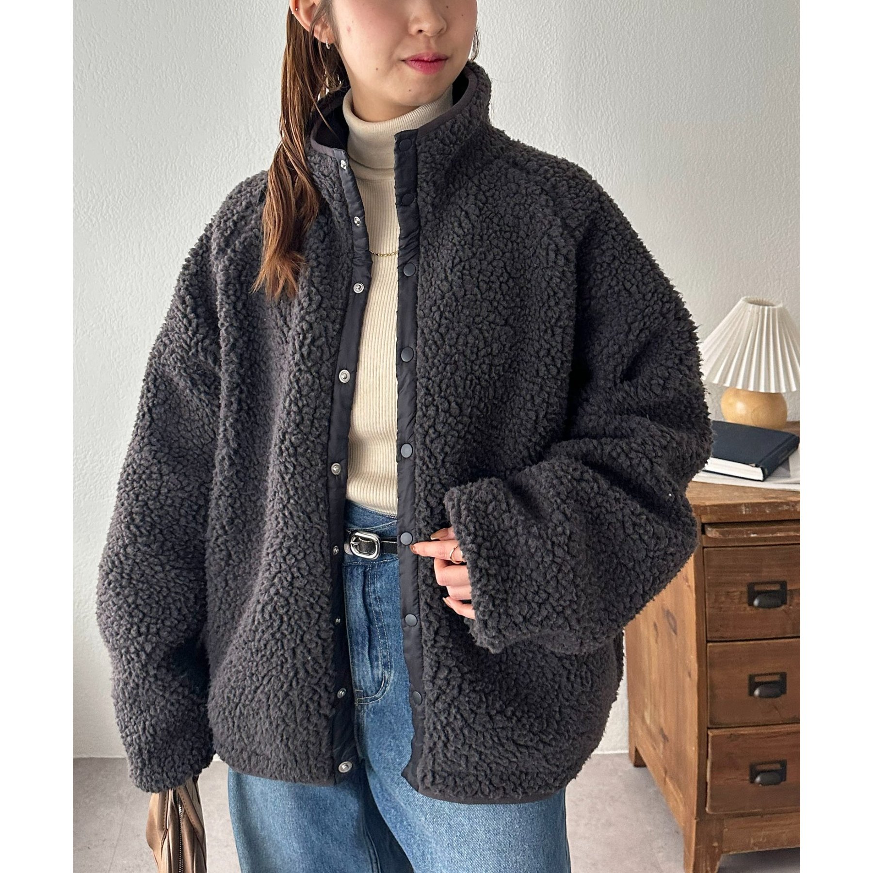 ・ボア面は柔らかく肌さわりの良い生地感、ナイロン面はさらっとしたカジュアルな素材感
