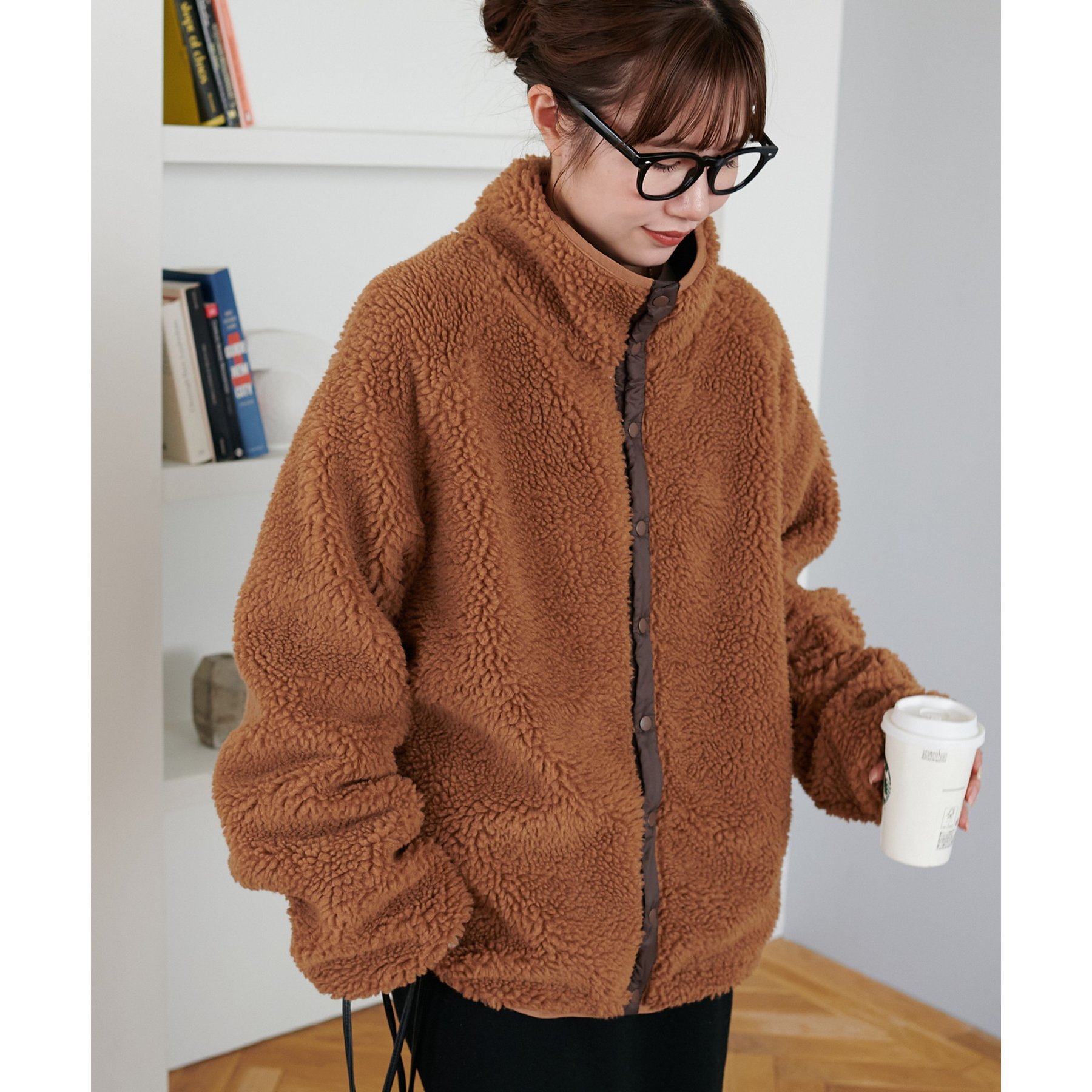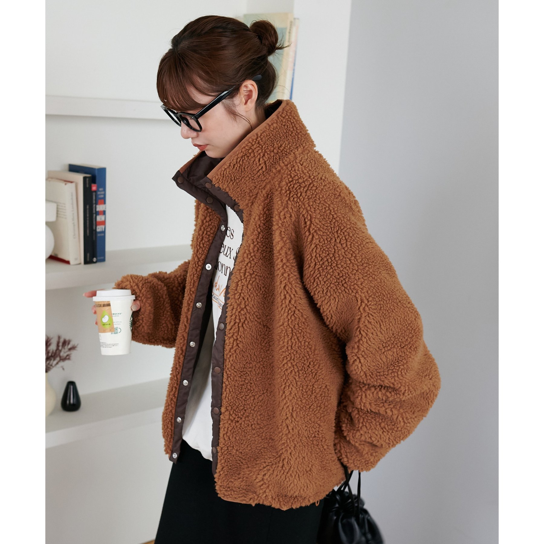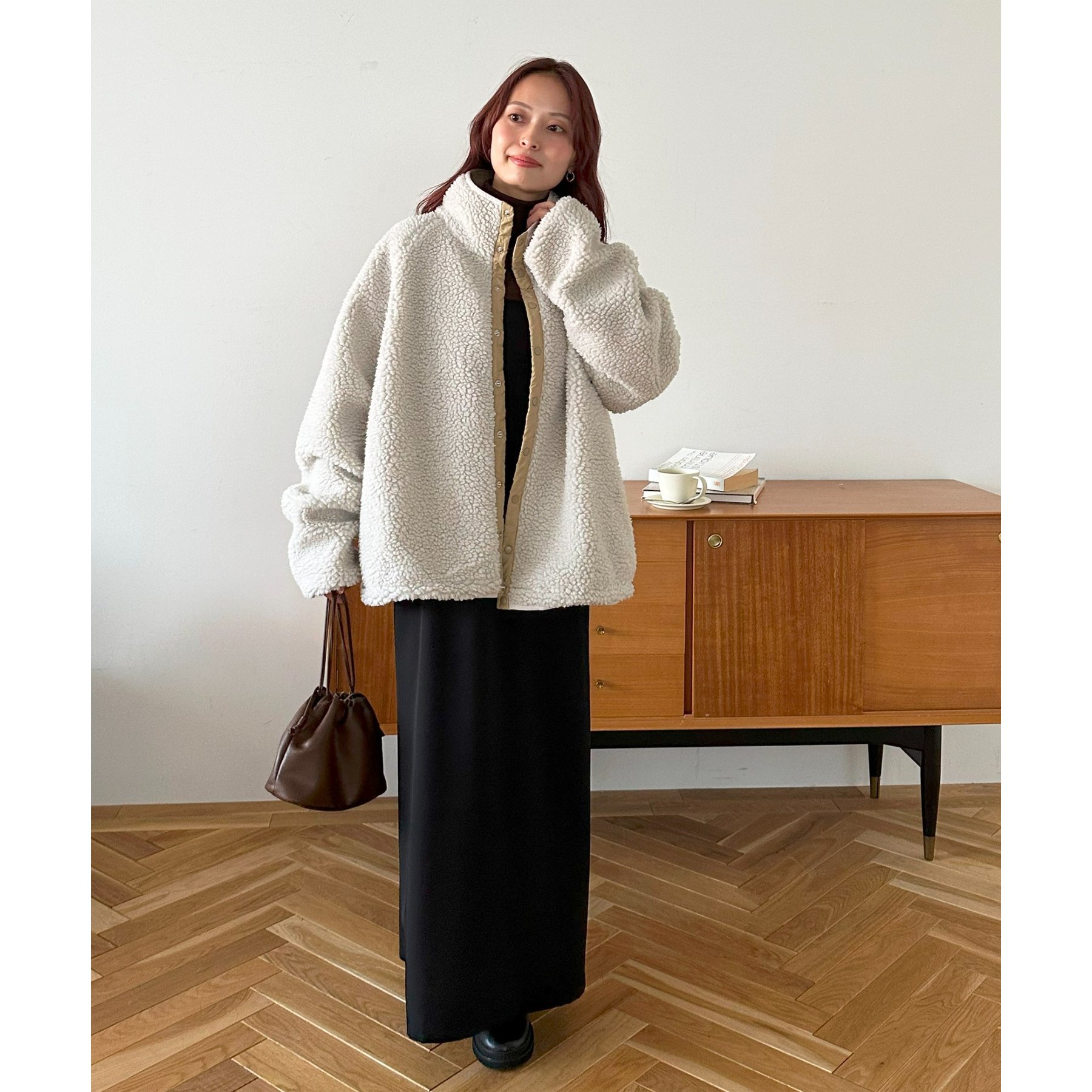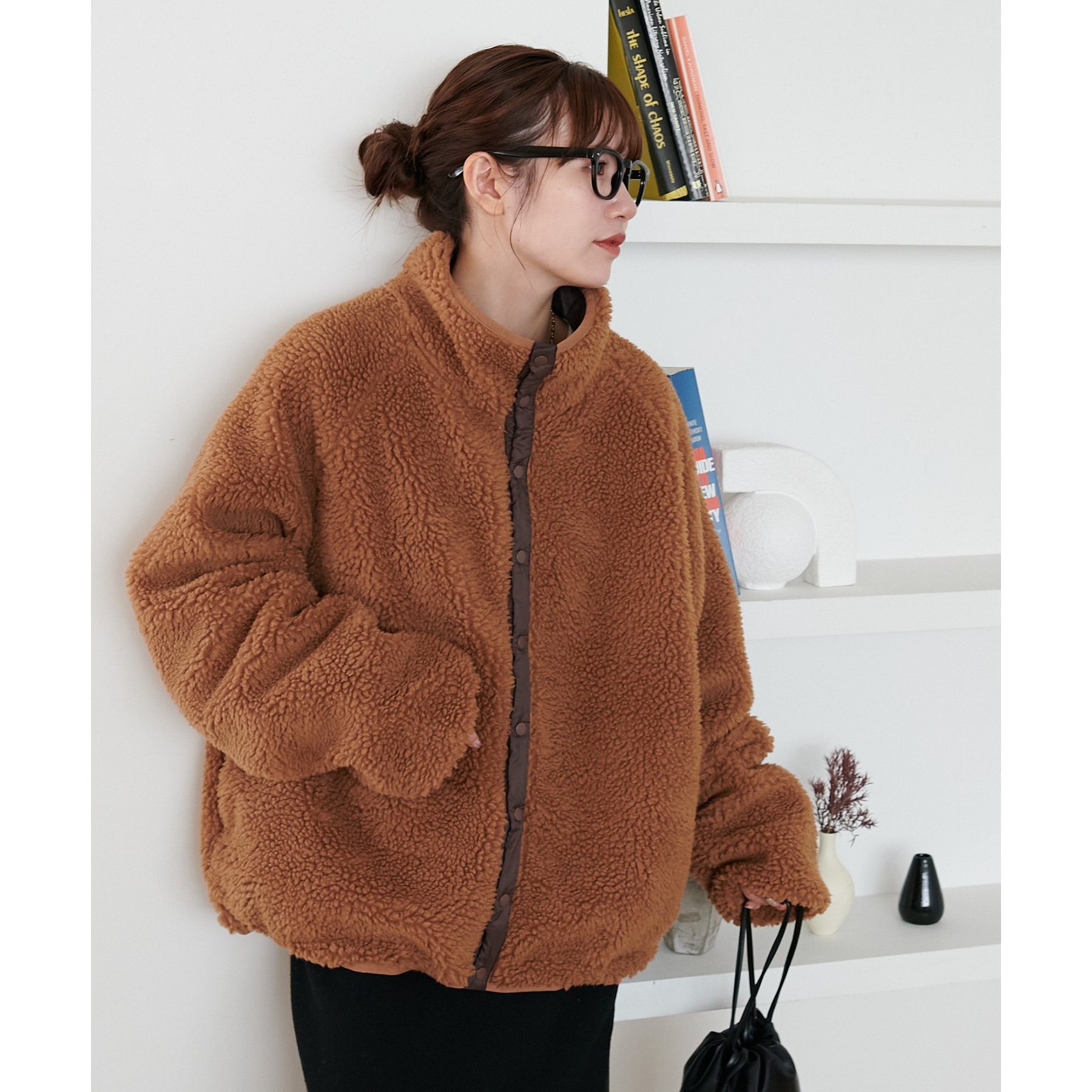 ・ボア面は柔らかく肌さわりの良い生地感、ナイロン面はさらっとしたカジュアルな素材感
