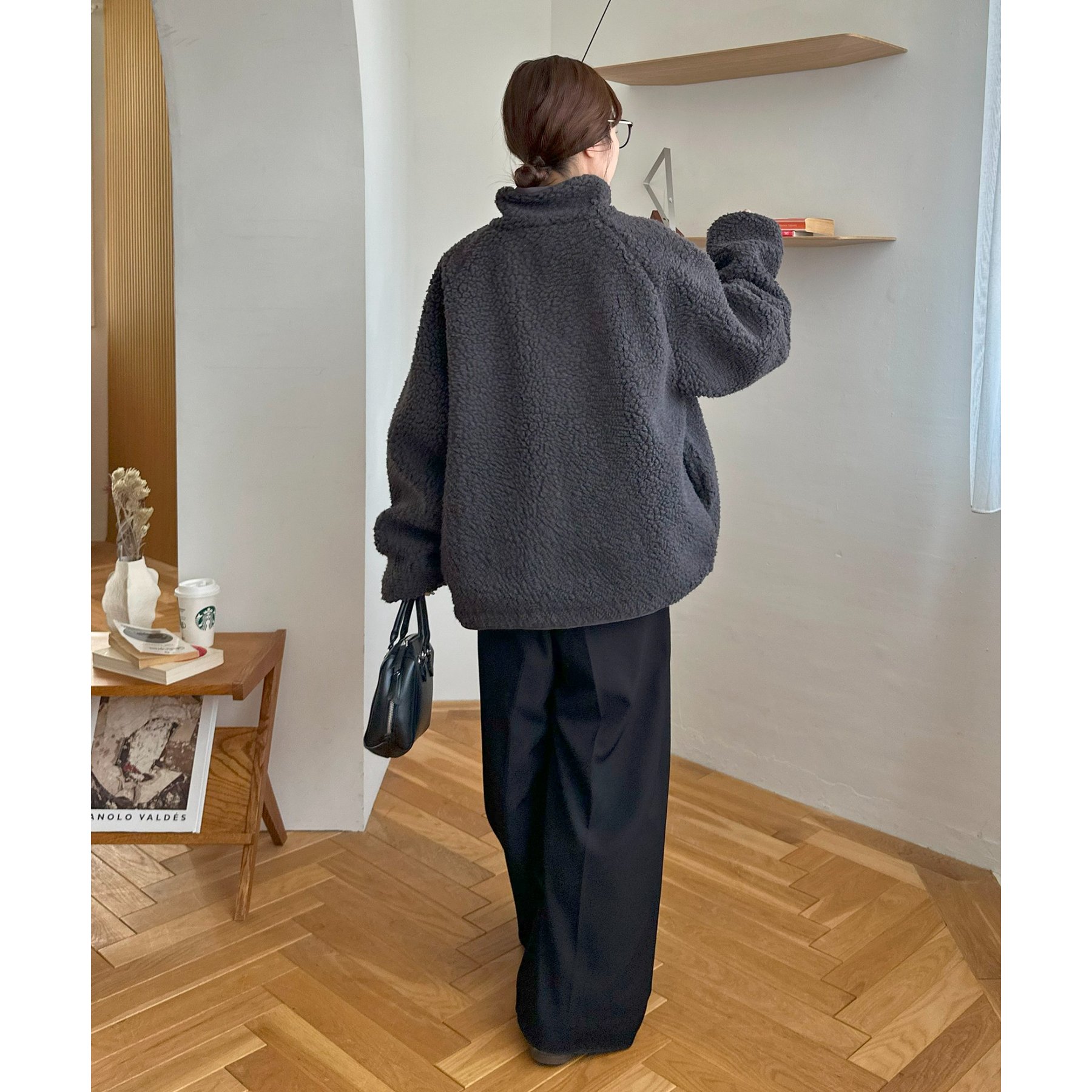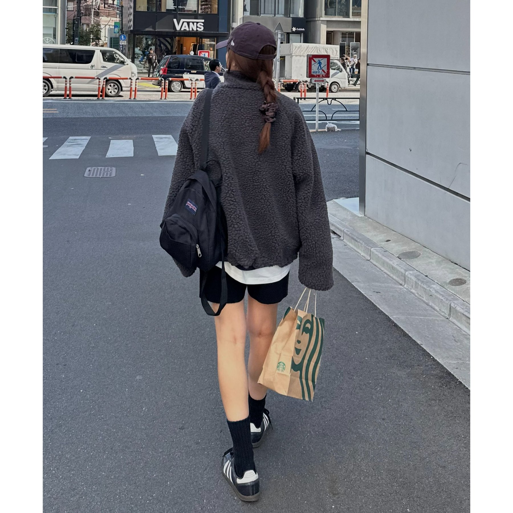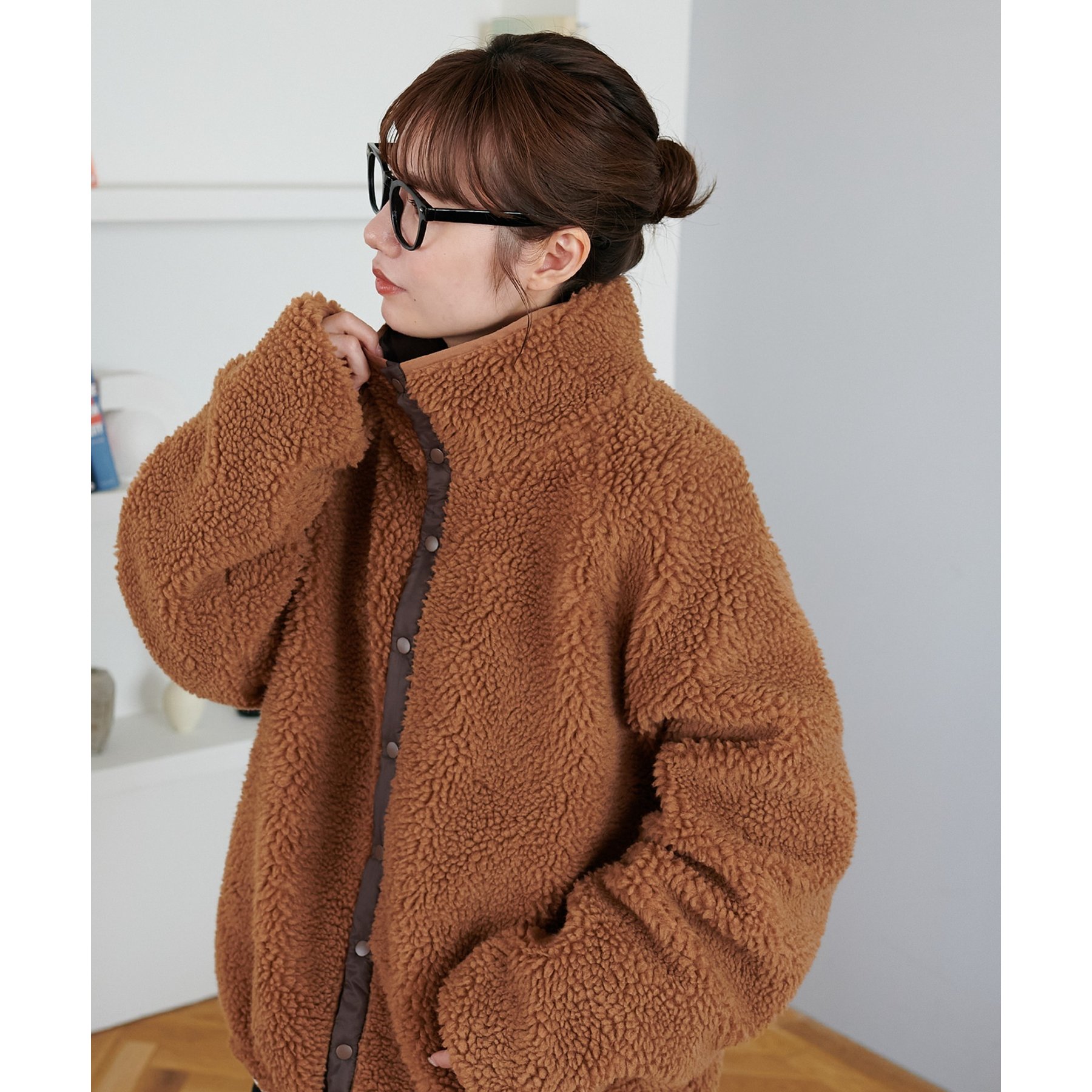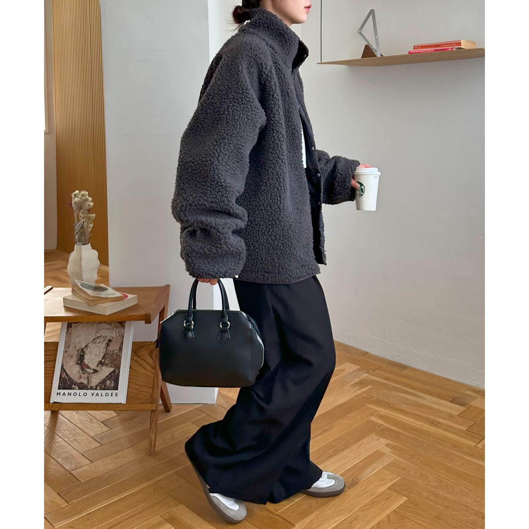 ・ボア面は柔らかく肌さわりの良い生地感、ナイロン面はさらっとしたカジュアルな素材感