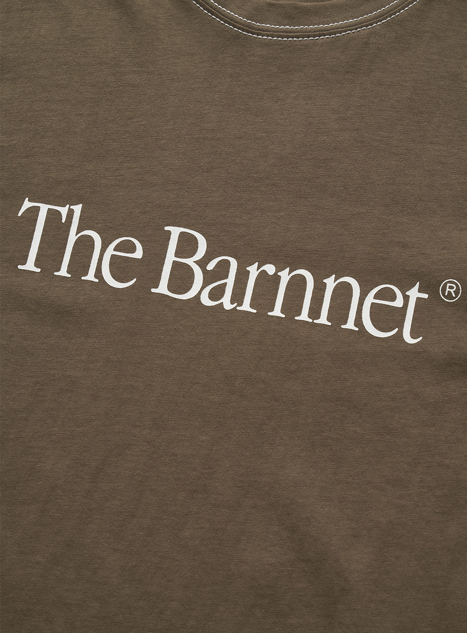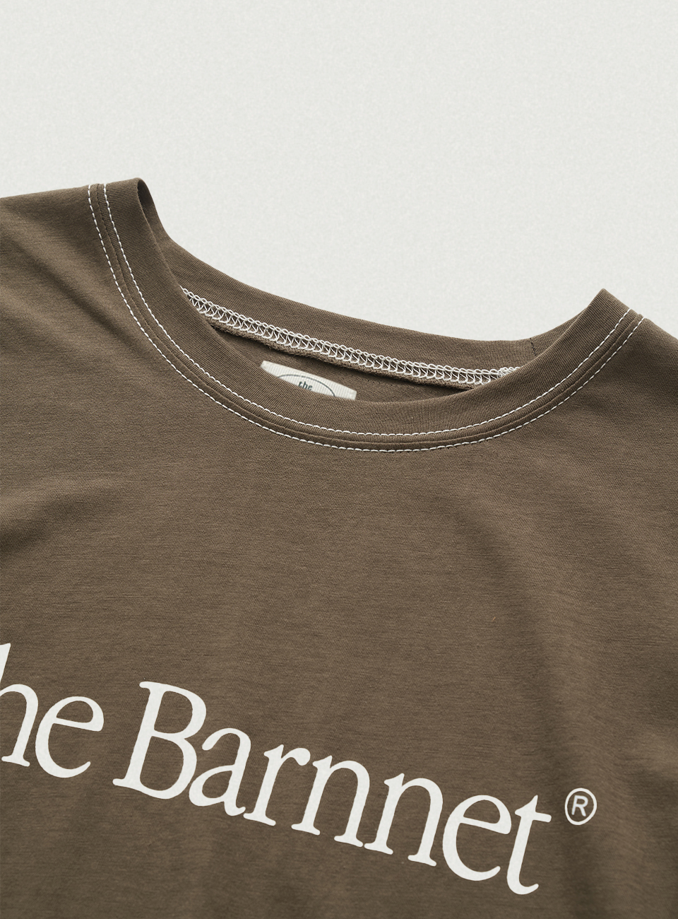 ファブリックカラーと対比されるロゴプリントデザインとステッチディテール