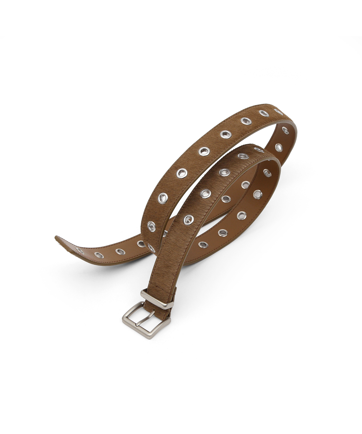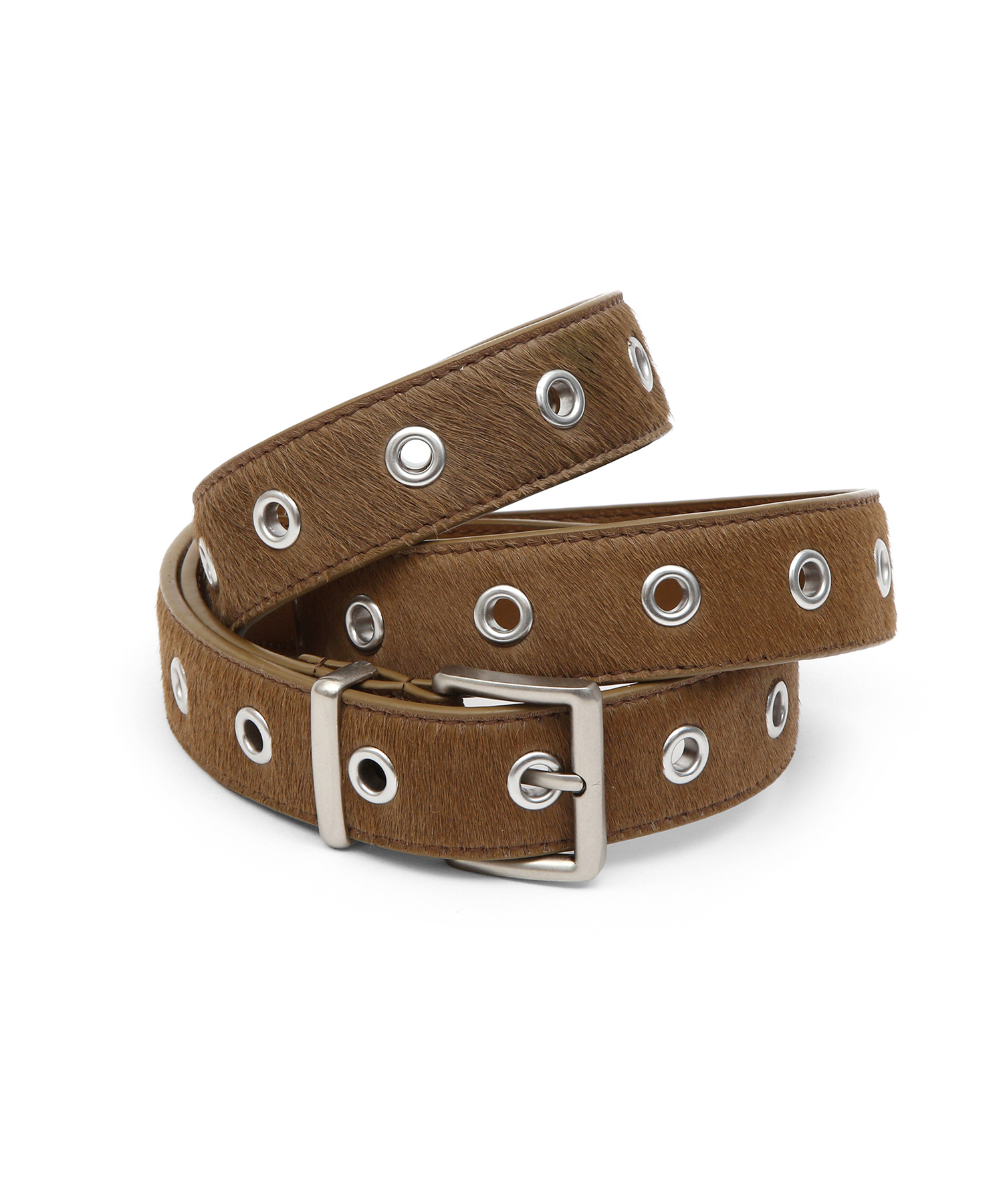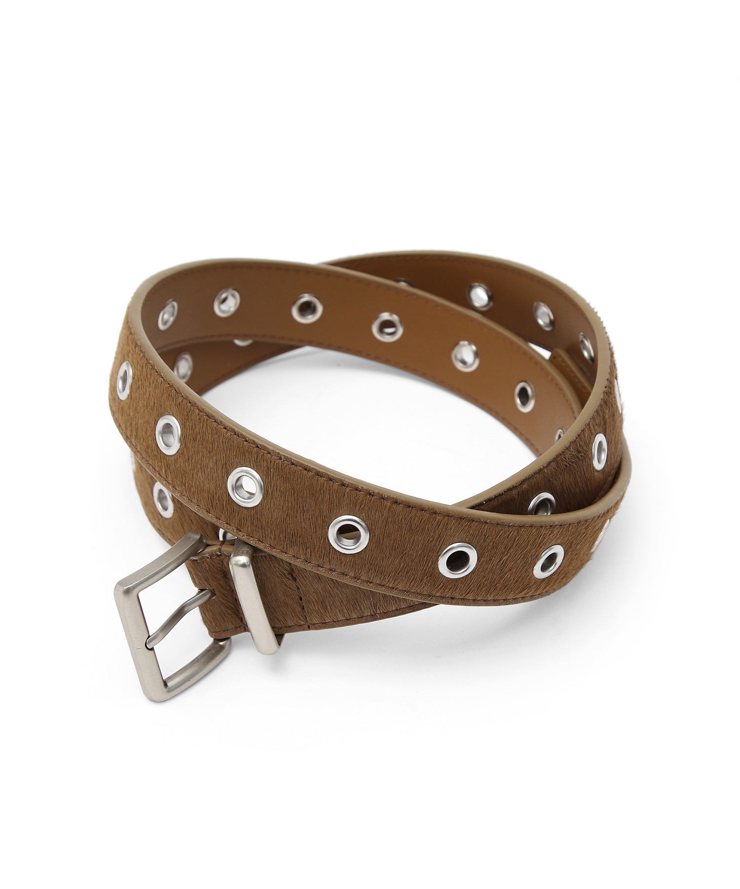 HAIRCALF BELT / EYELET / BROWN(カジュアル·レザー·ベルト)