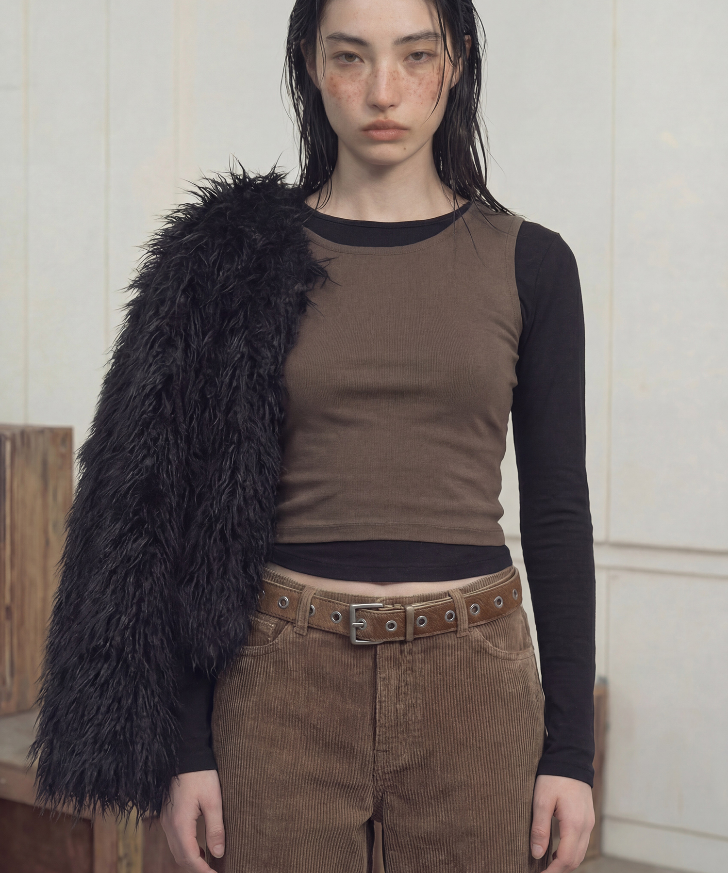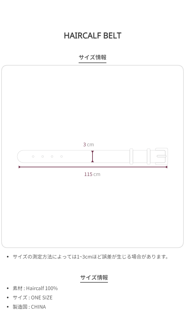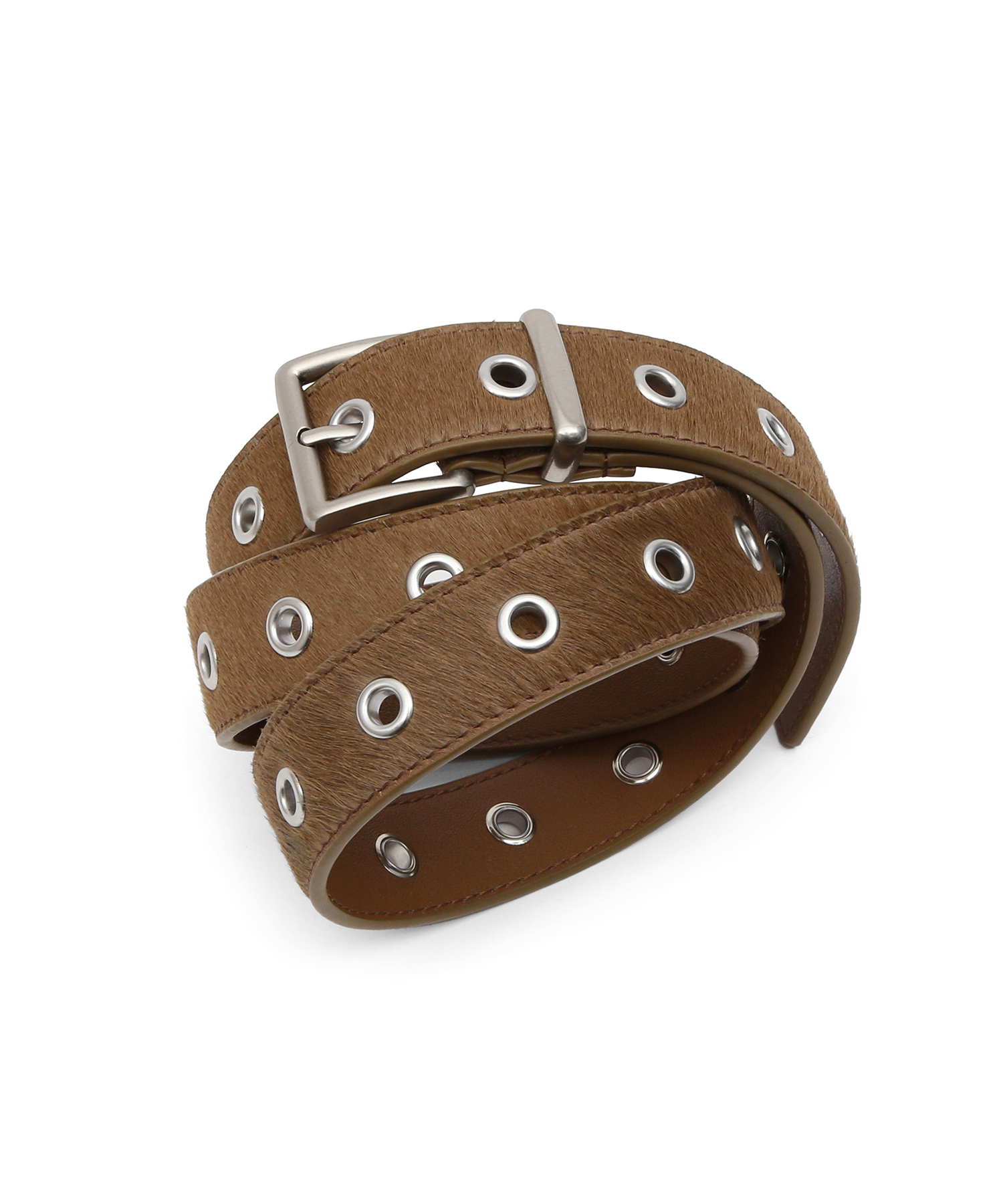 HAIRCALF BELT / EYELET / BROWN(カジュアル·レザー·ベルト)