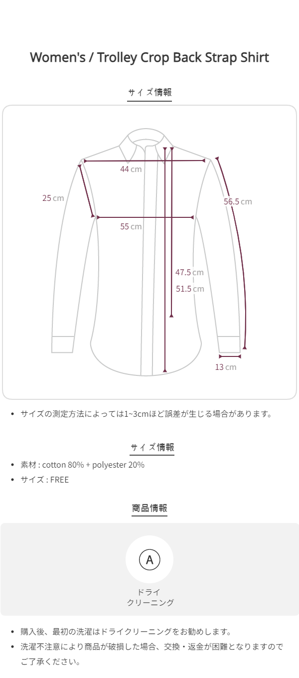 HEIGHT 168cm / BUST 81cm / WAIST 58cm / HIP 83cm