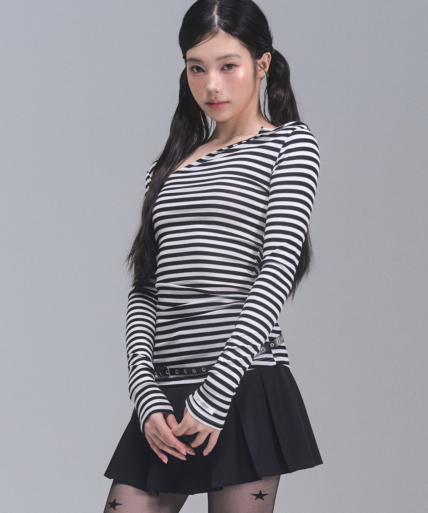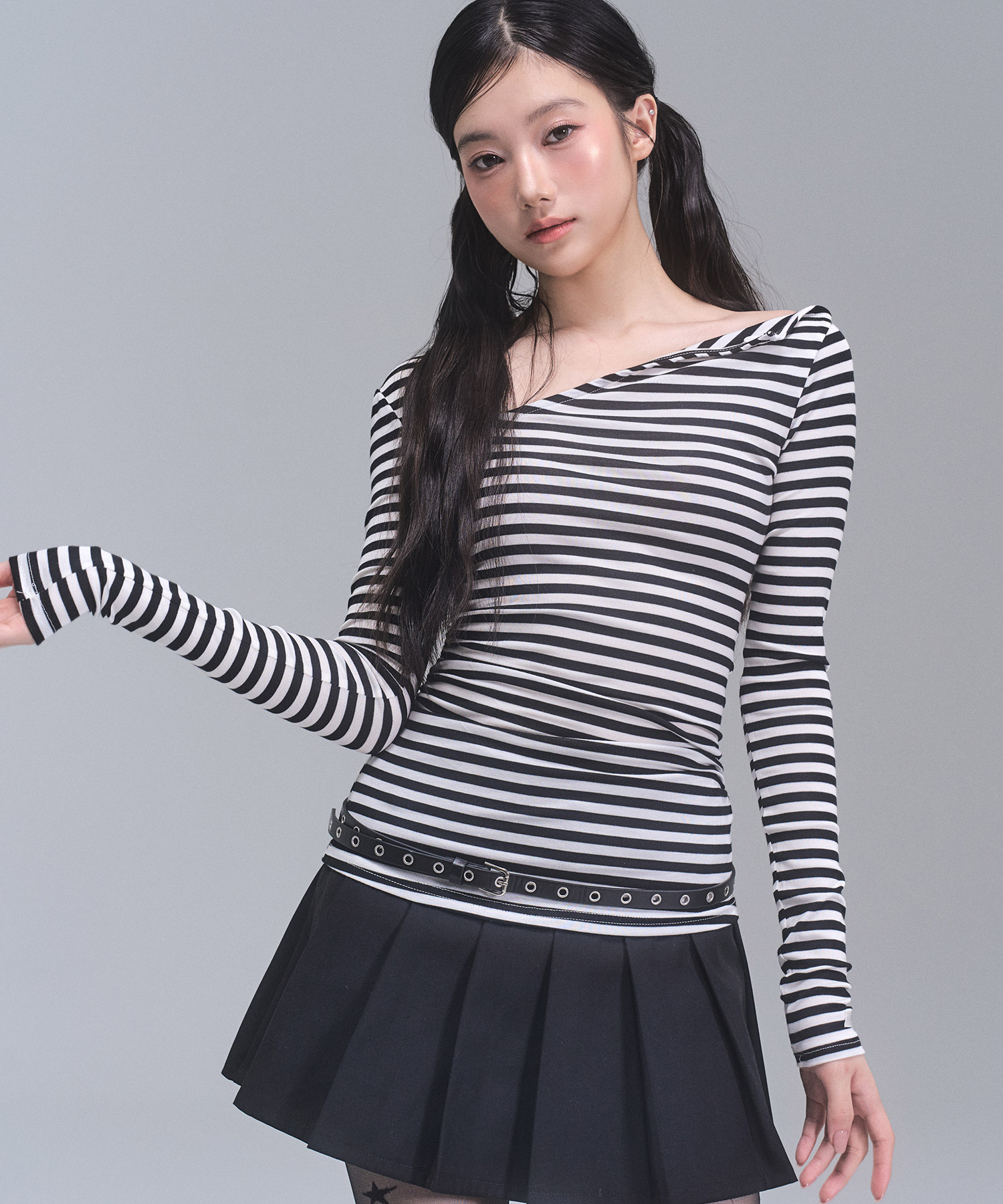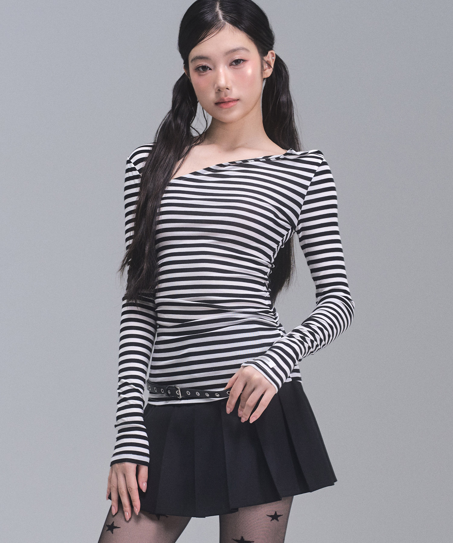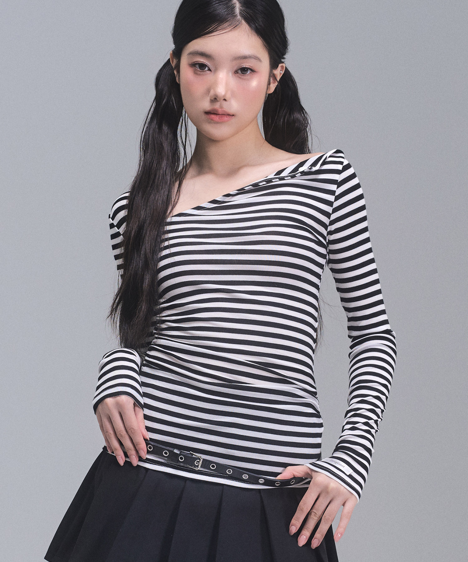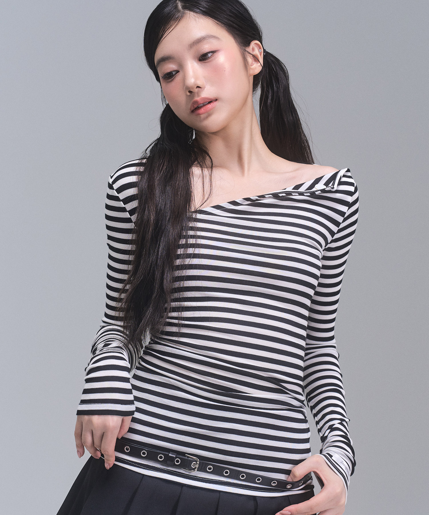 クロエアンバランススリーブトップ [WHITE STRIPE]