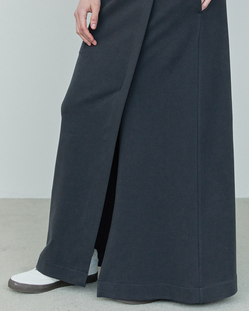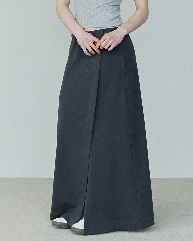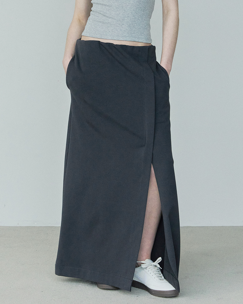 FRONT SLIT COTTON SKIRT / CHARCOAL