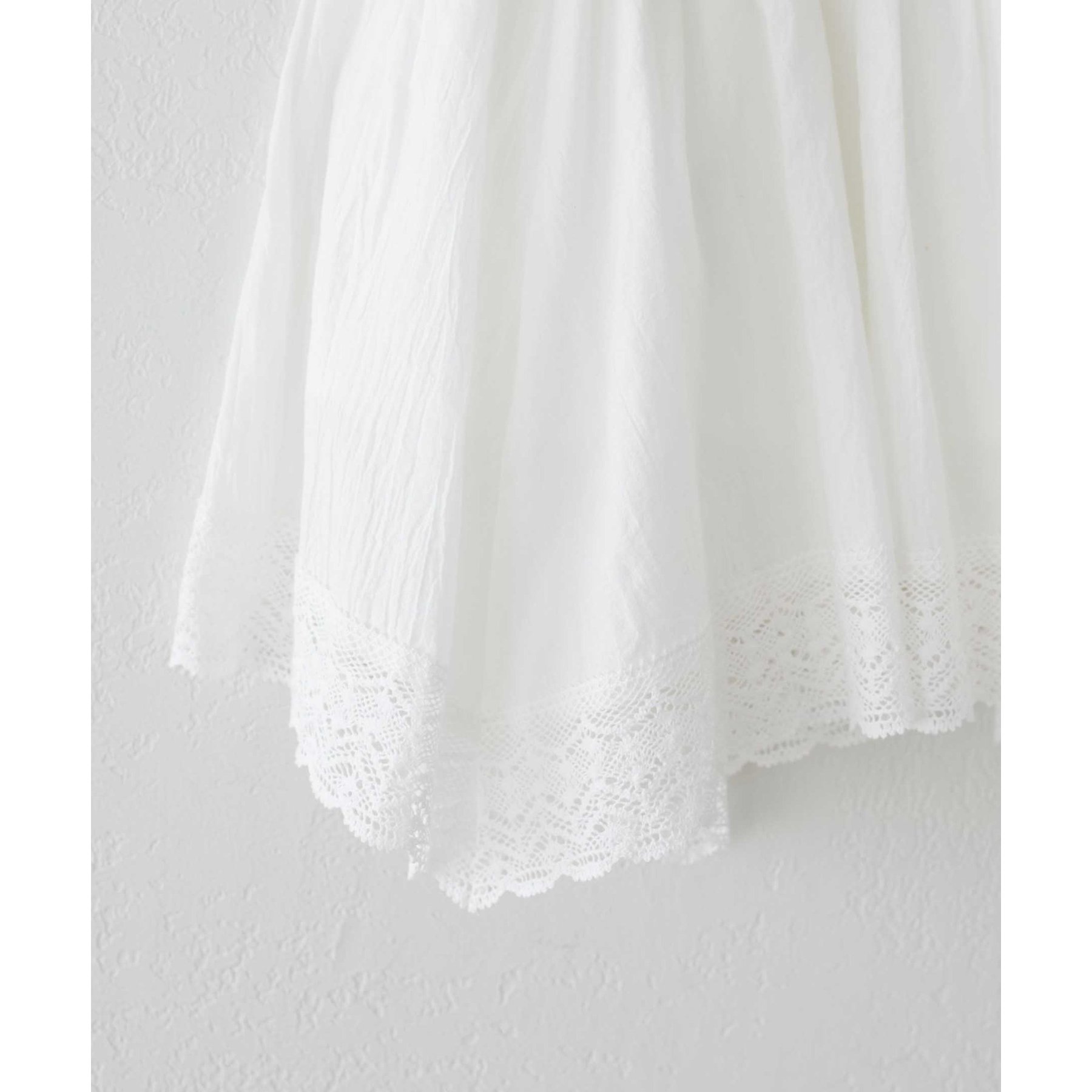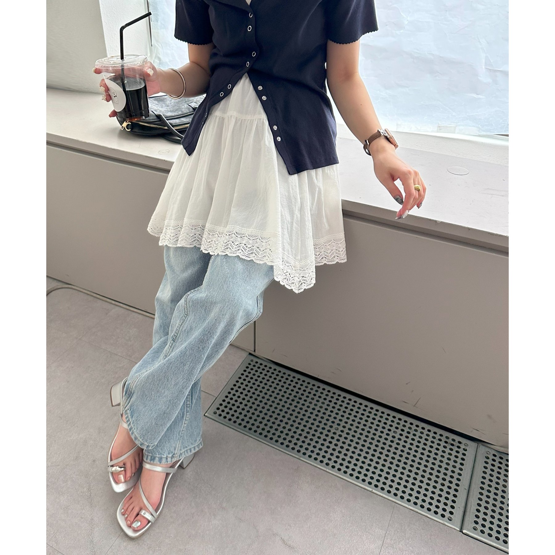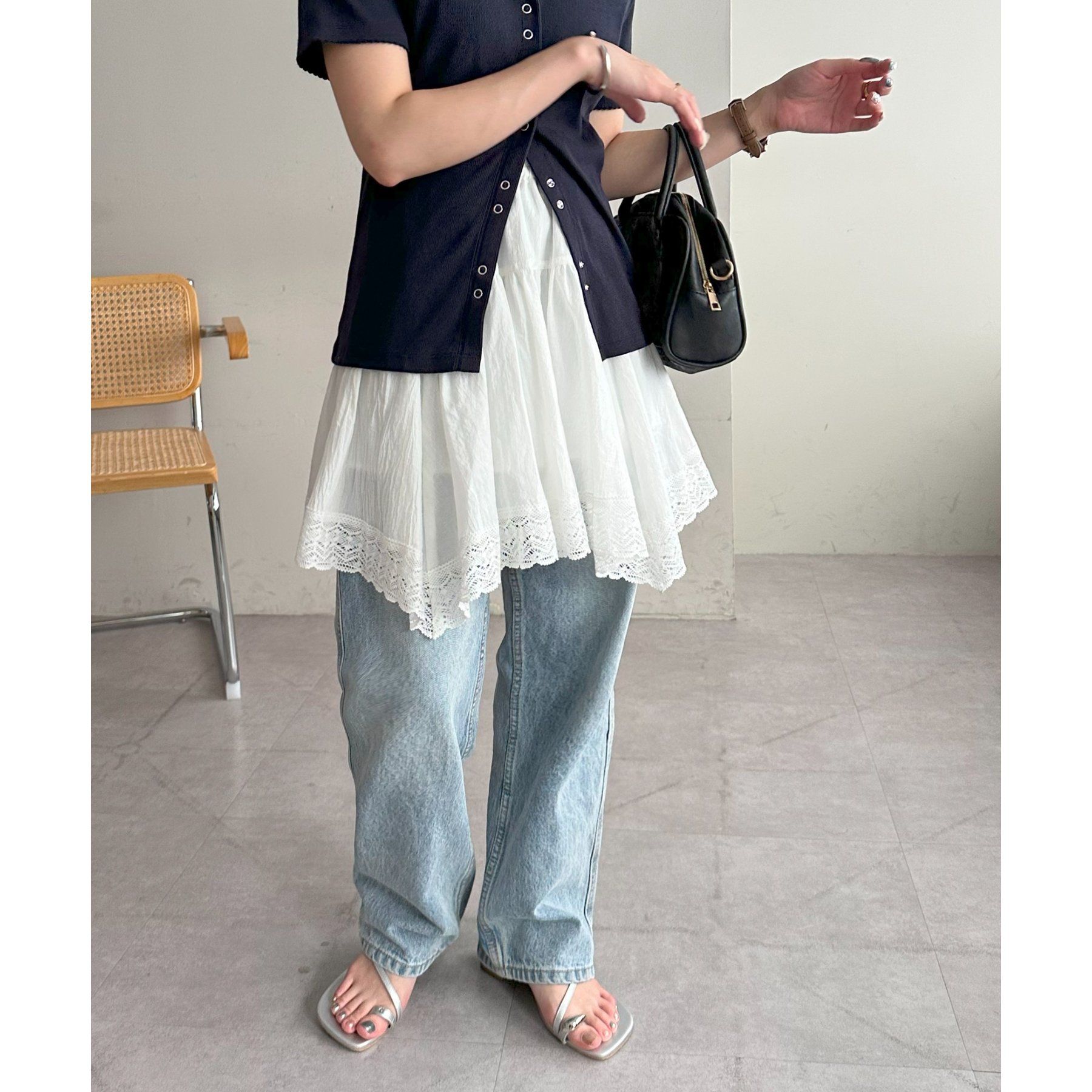裾にはレースをあしらい、甘さはありつつも上品で大人っぽい印象に。