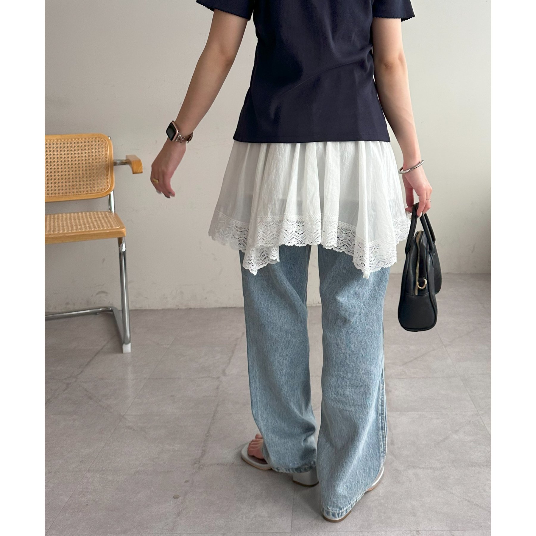ジャケットやトップスの裾からチラ見せするスタイルもおすすめ。