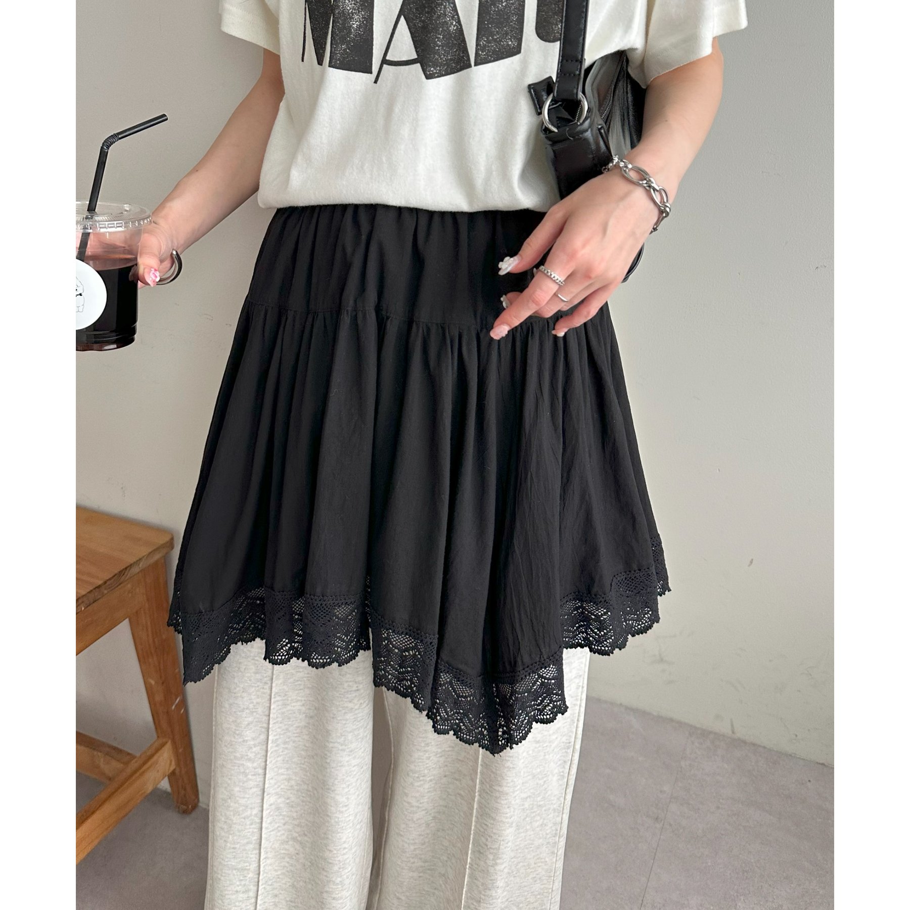 レースアシメミニスカート