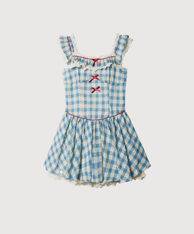ガーデンモチーフチェック柄フリルワンピース