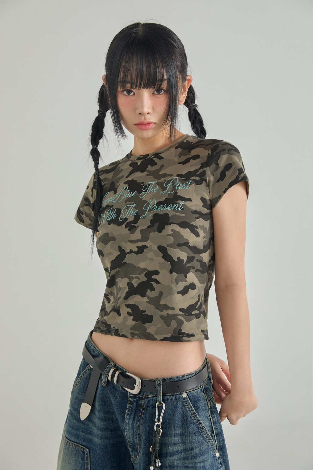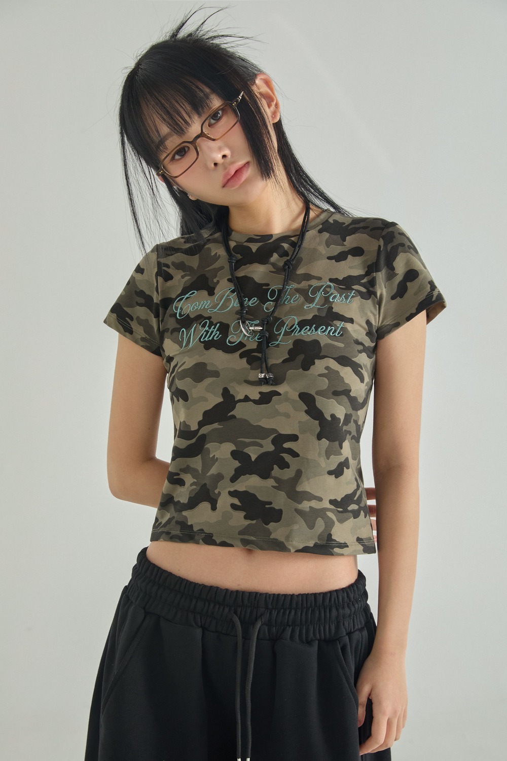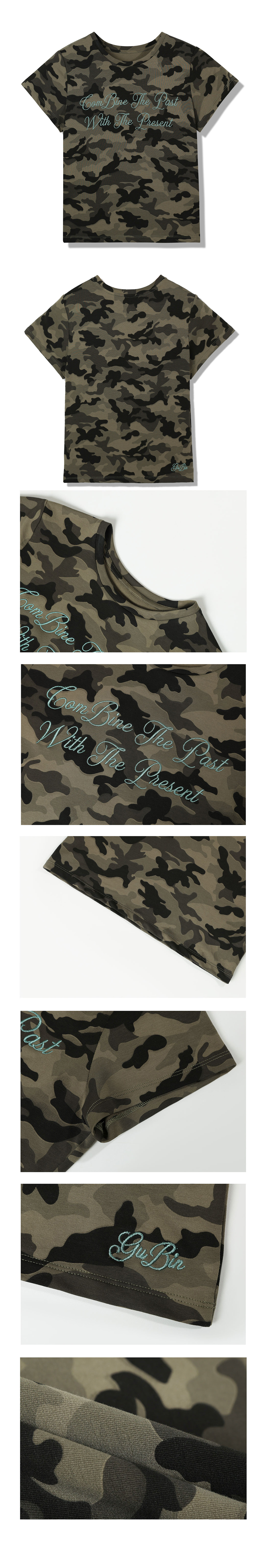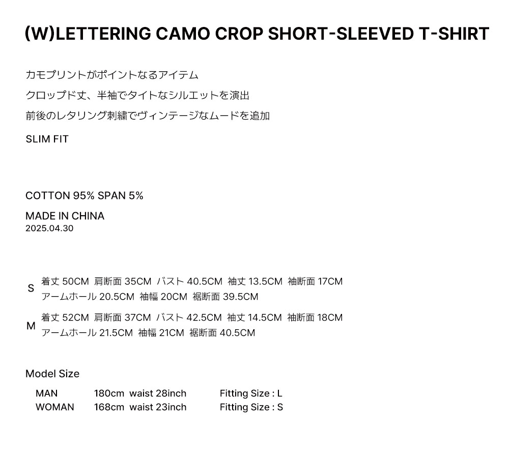 (W) レタリングカモクロップ半袖Tシャツ