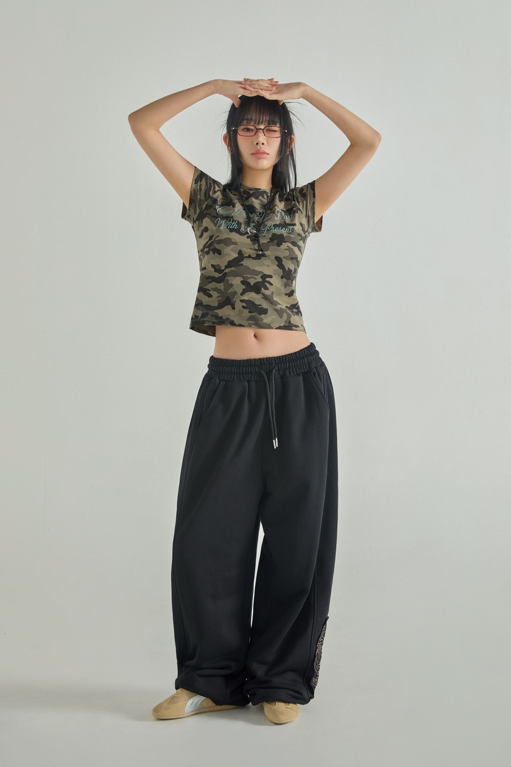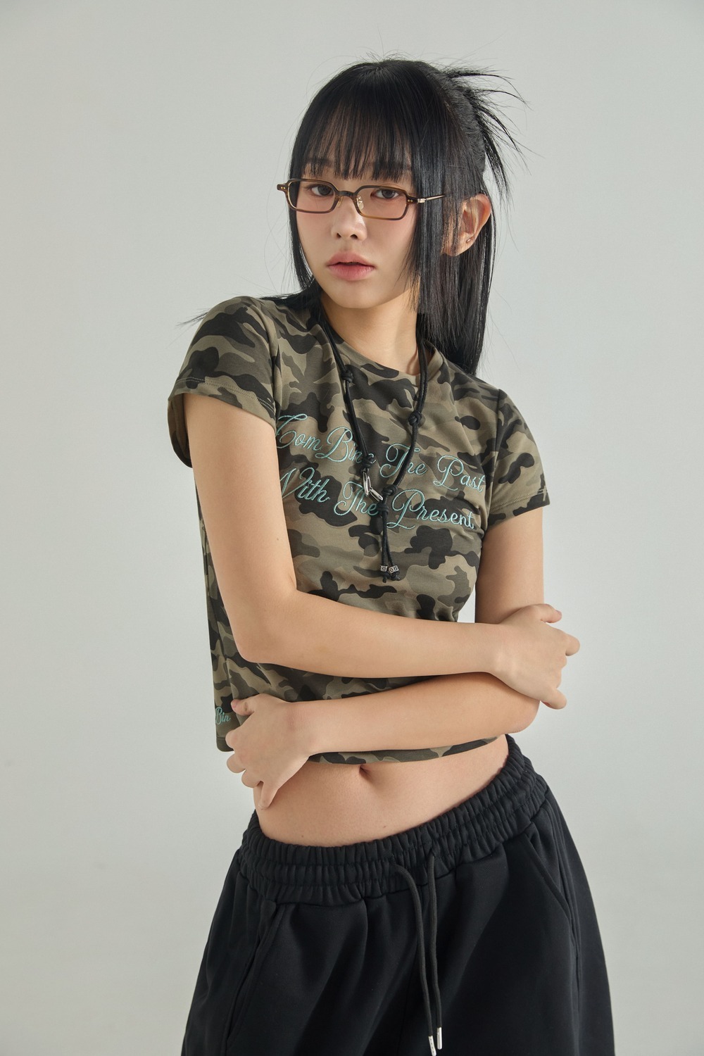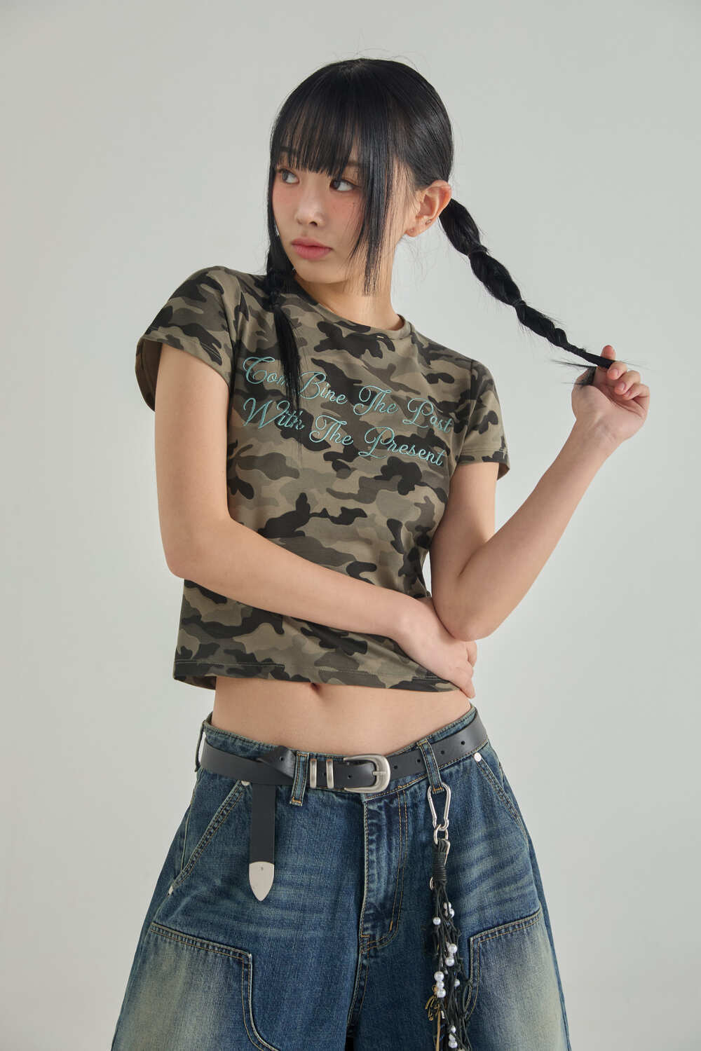 (W) レタリングカモクロップ半袖Tシャツ