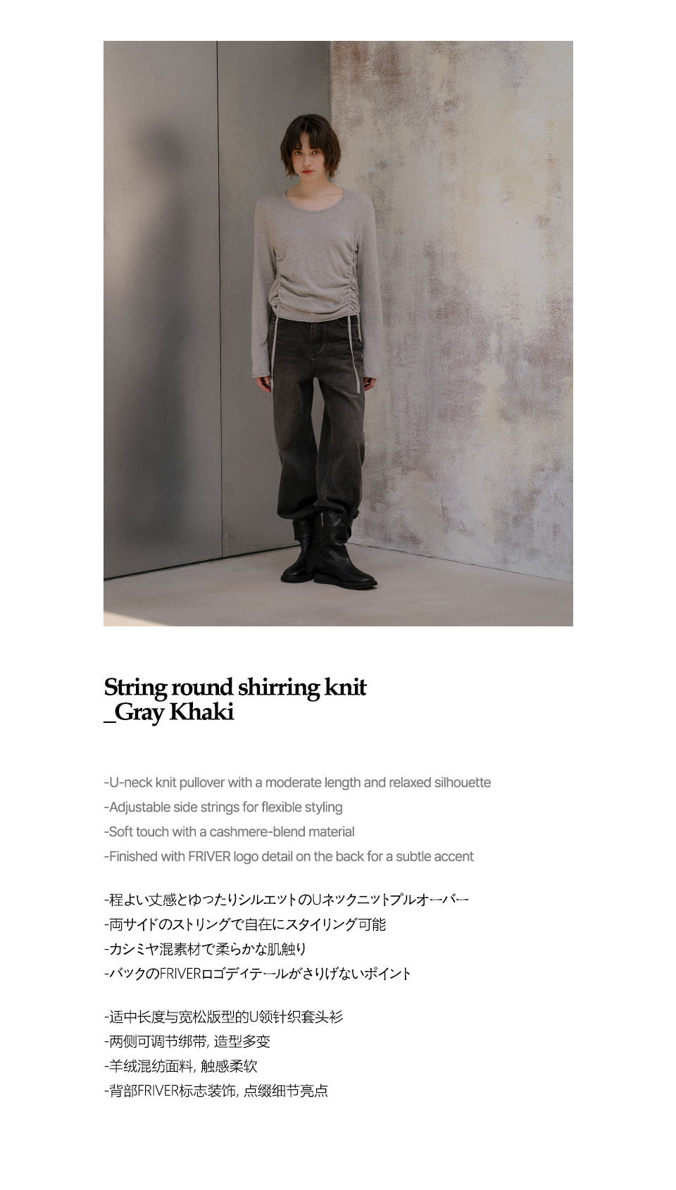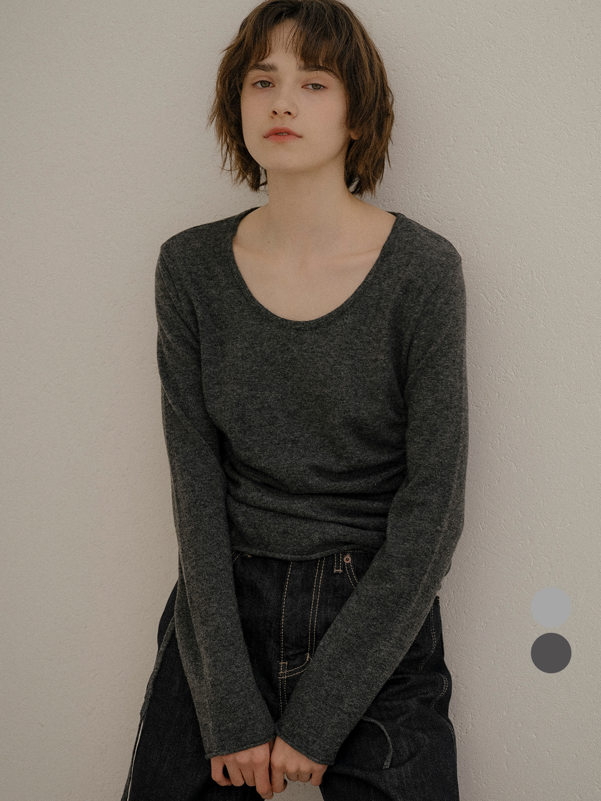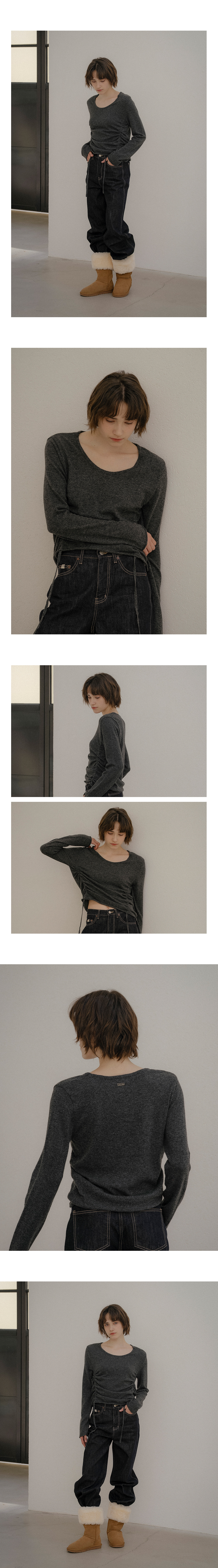 String round shirring knit_2color