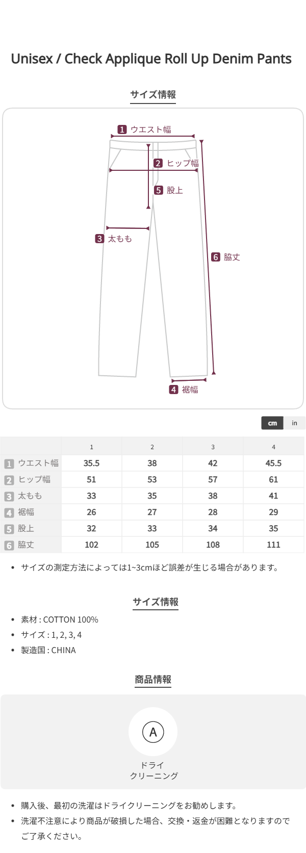 Check Applique Roll Up Denim Pants MEDIUM BLUE