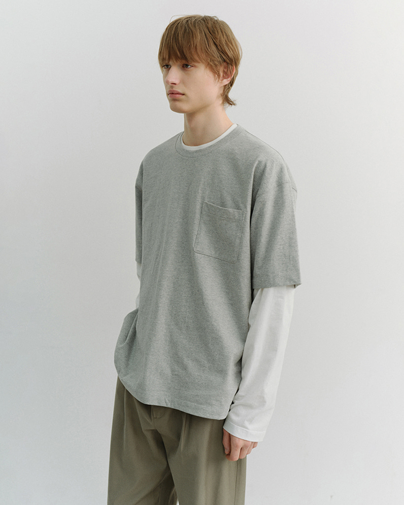 UNISEX LAYERED SET-UP T-SHIRT MELANGE GREY OFF WHITE_M_UDTS6A117G2