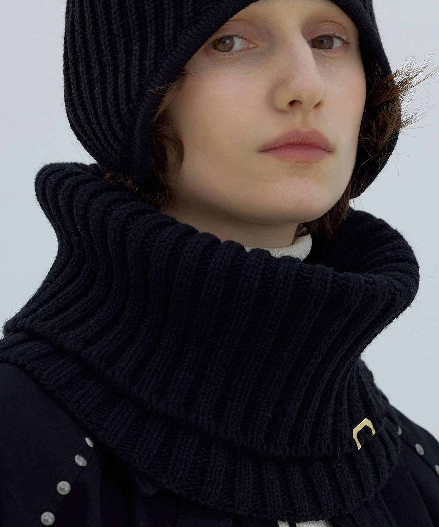 NECK WARMER / RIB / LAMBS WOOL / BLACK(冬ノウールノマフラー)