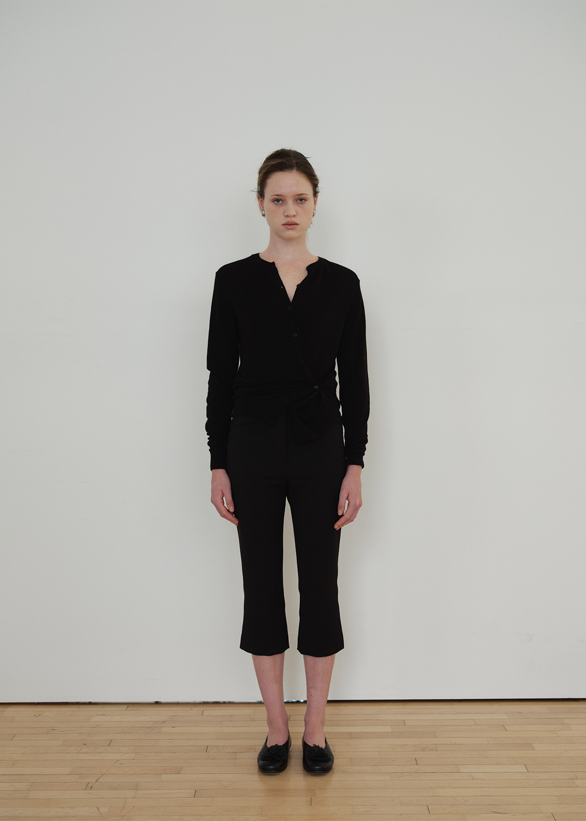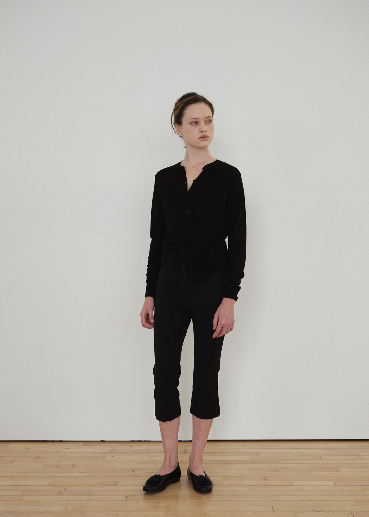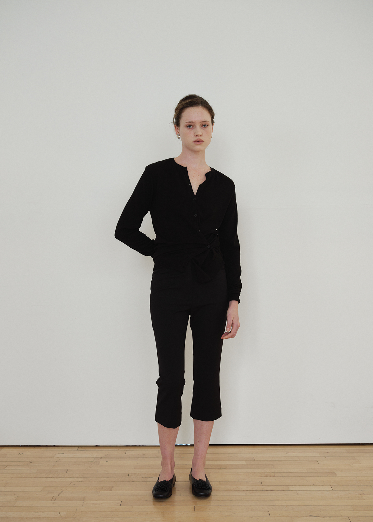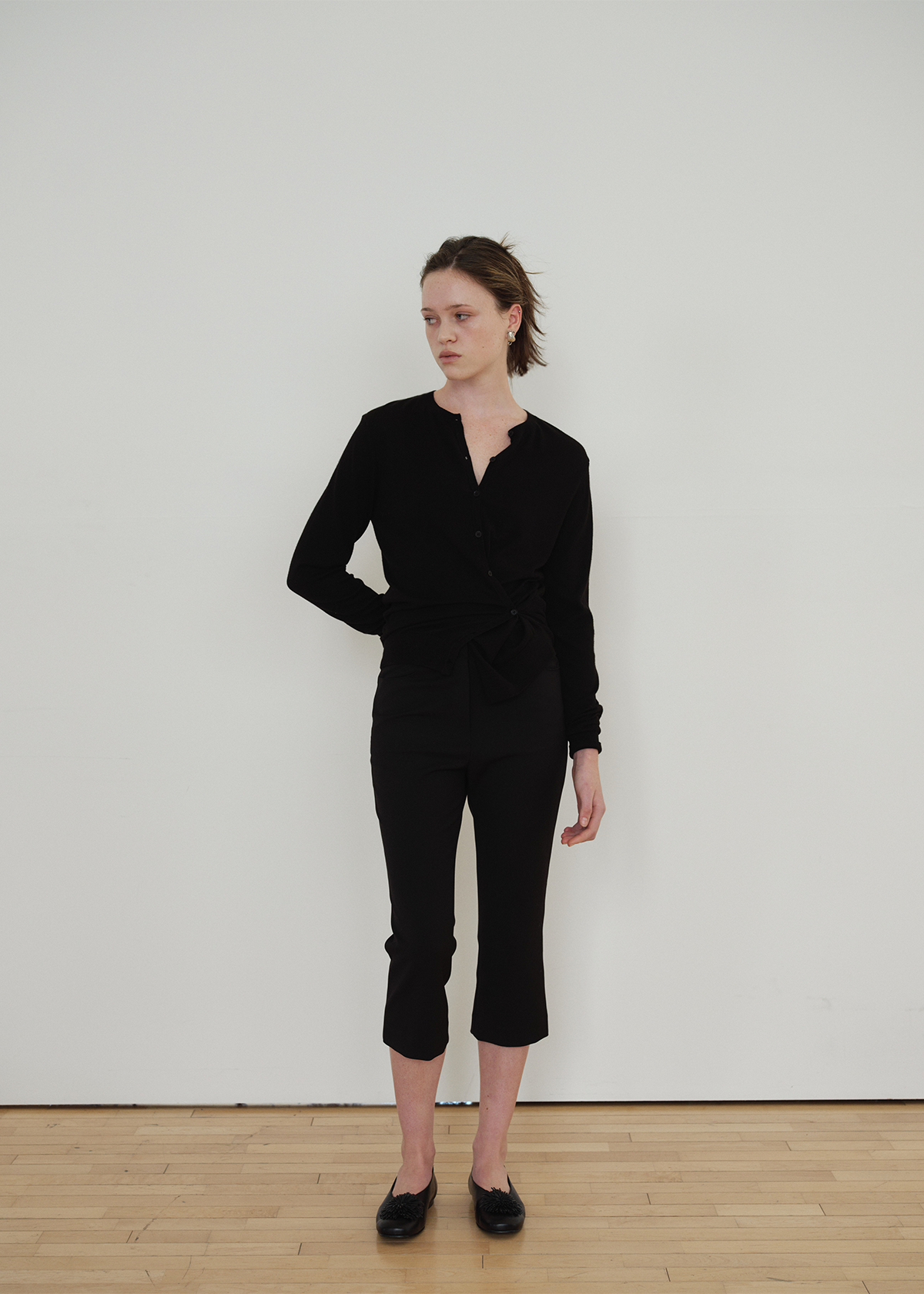 サイドラインのボタンディテールを活かしてラップのように結べる 2WAY デザインで、ベーシックなカーディガンスタイルとポイントのあるシルエットの両方を楽しめます。袖口と裾はリブ組織で仕上げ、ほどよいテンションでフォルムを整えます。Cream・Charcoal・Black の3色構成で、デイリーからフォーマルなスタイリングまで幅広くマッチします。