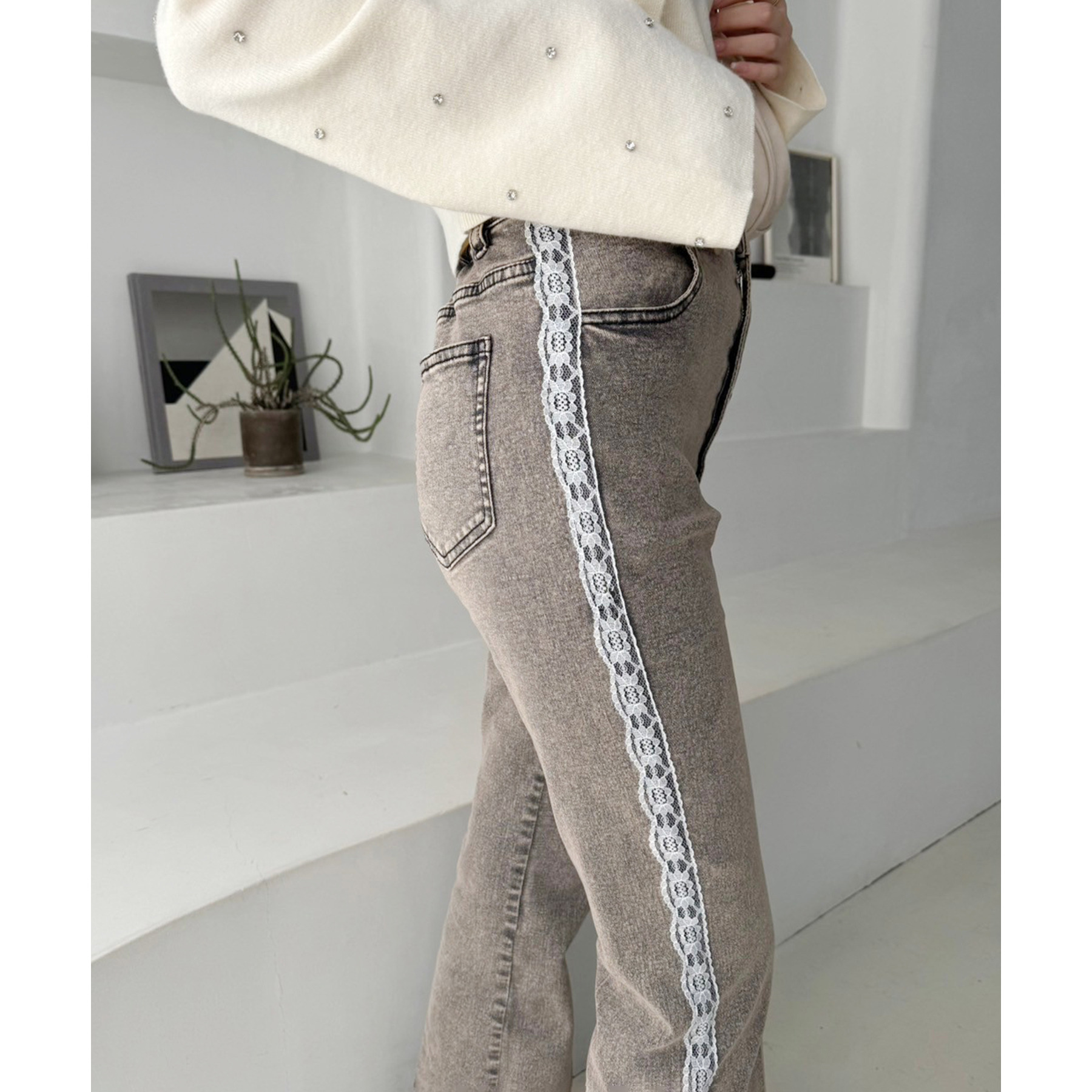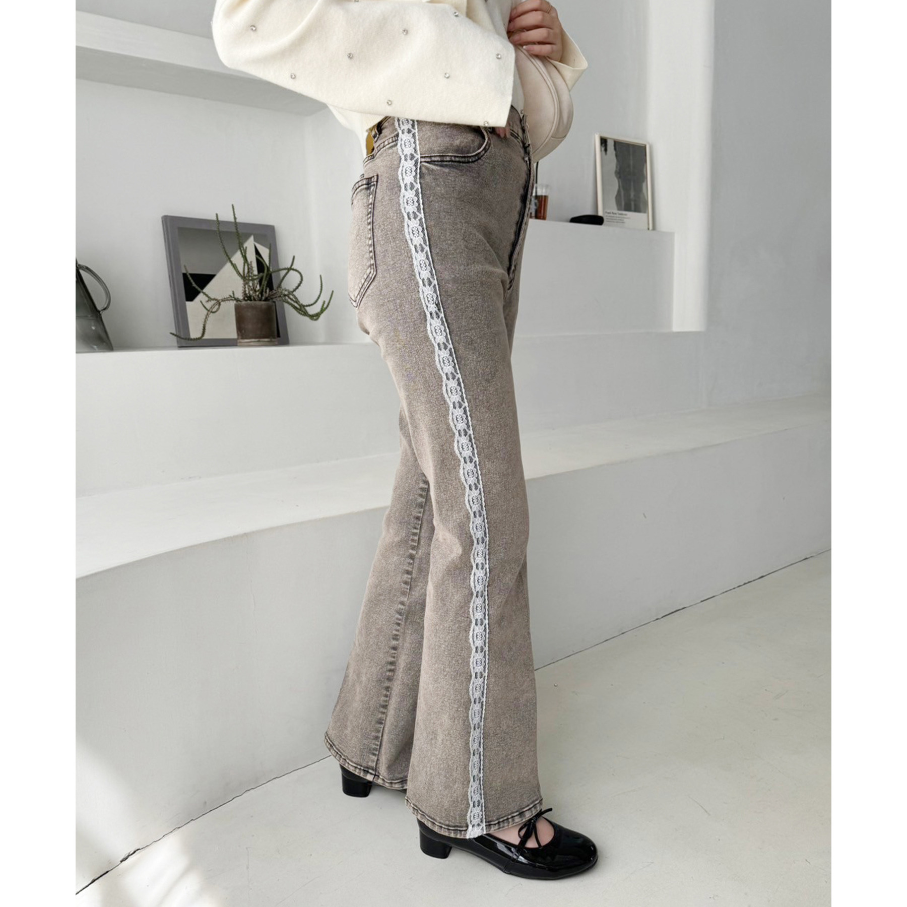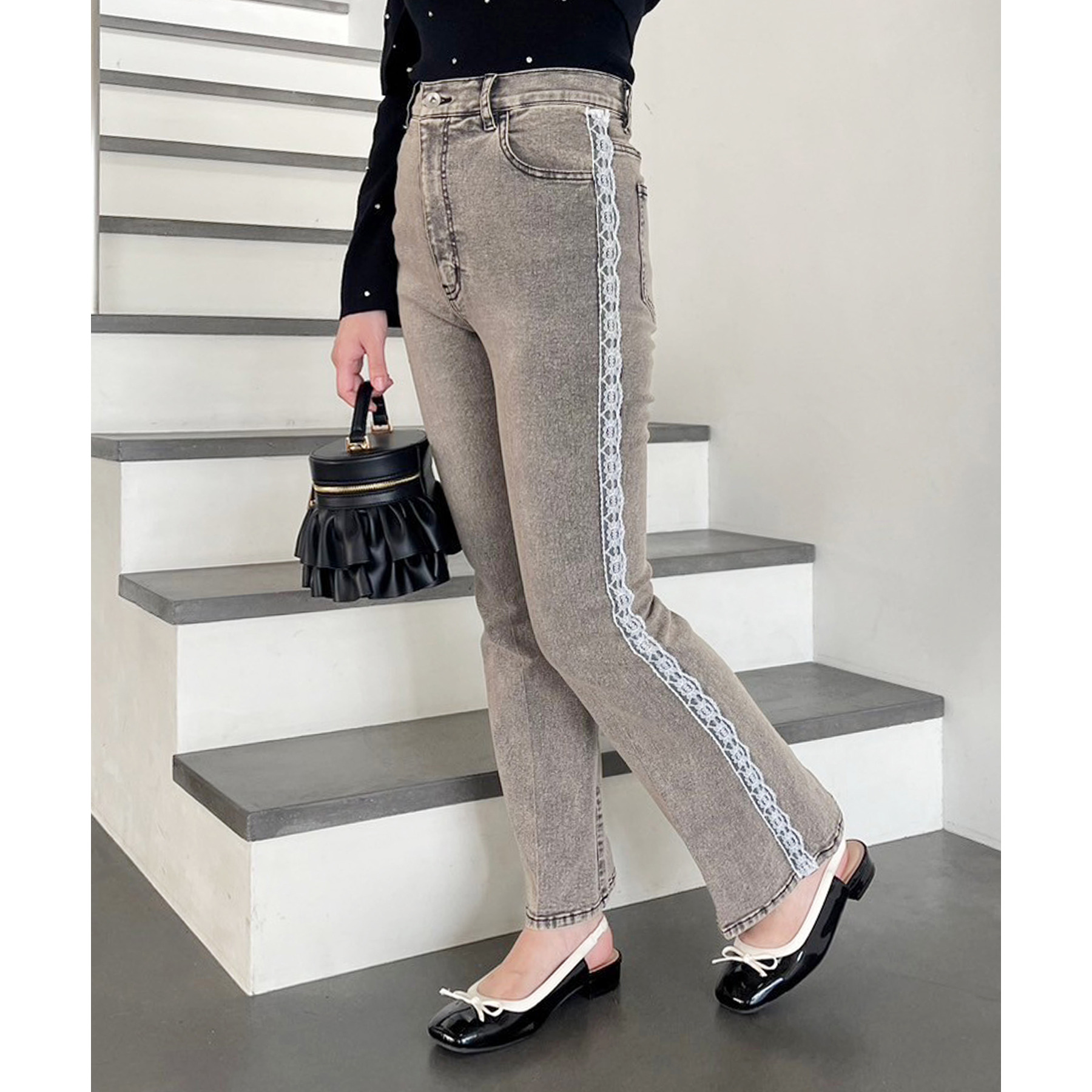 【S、Mサイズ展開】アソートレースデザイン美脚ストレッチデニムパンツ