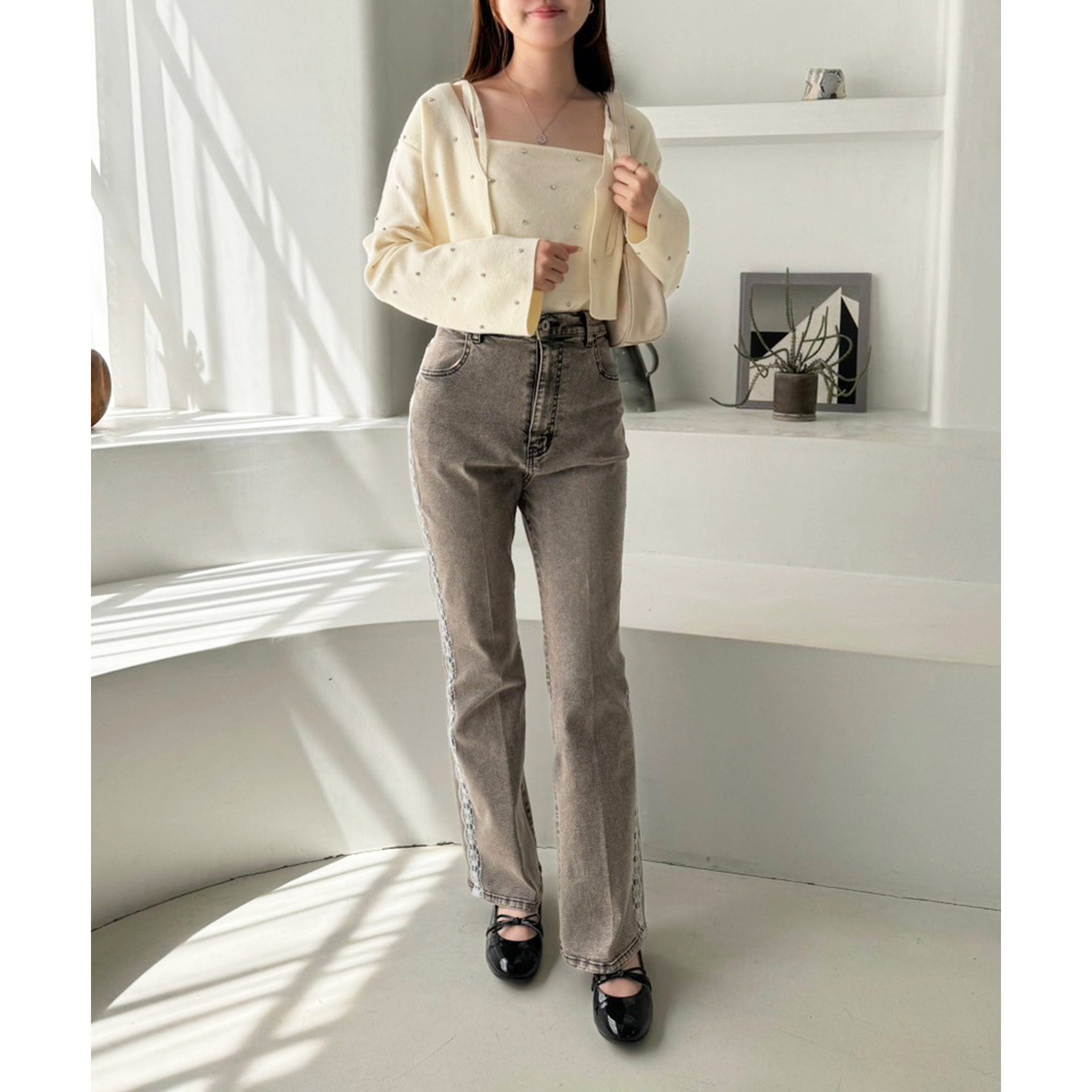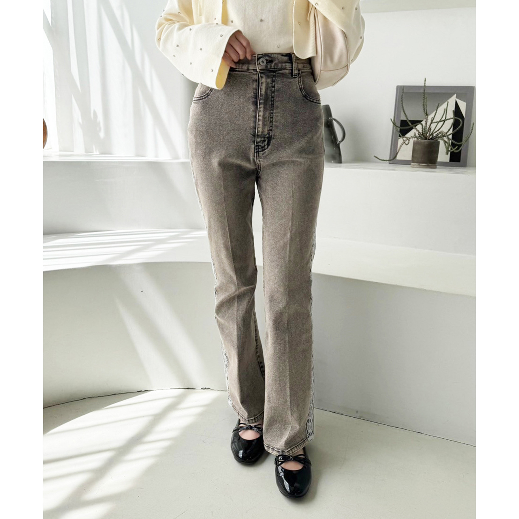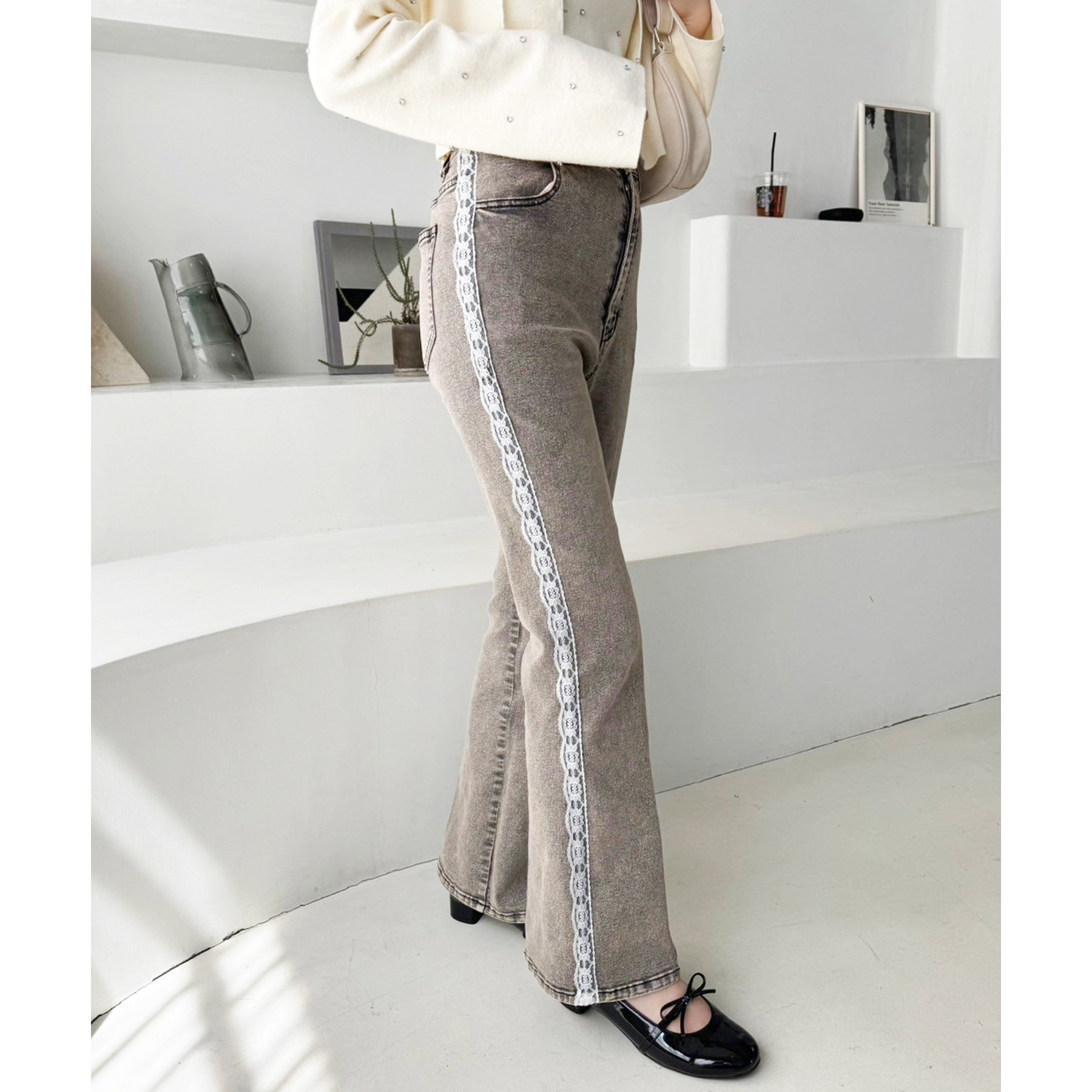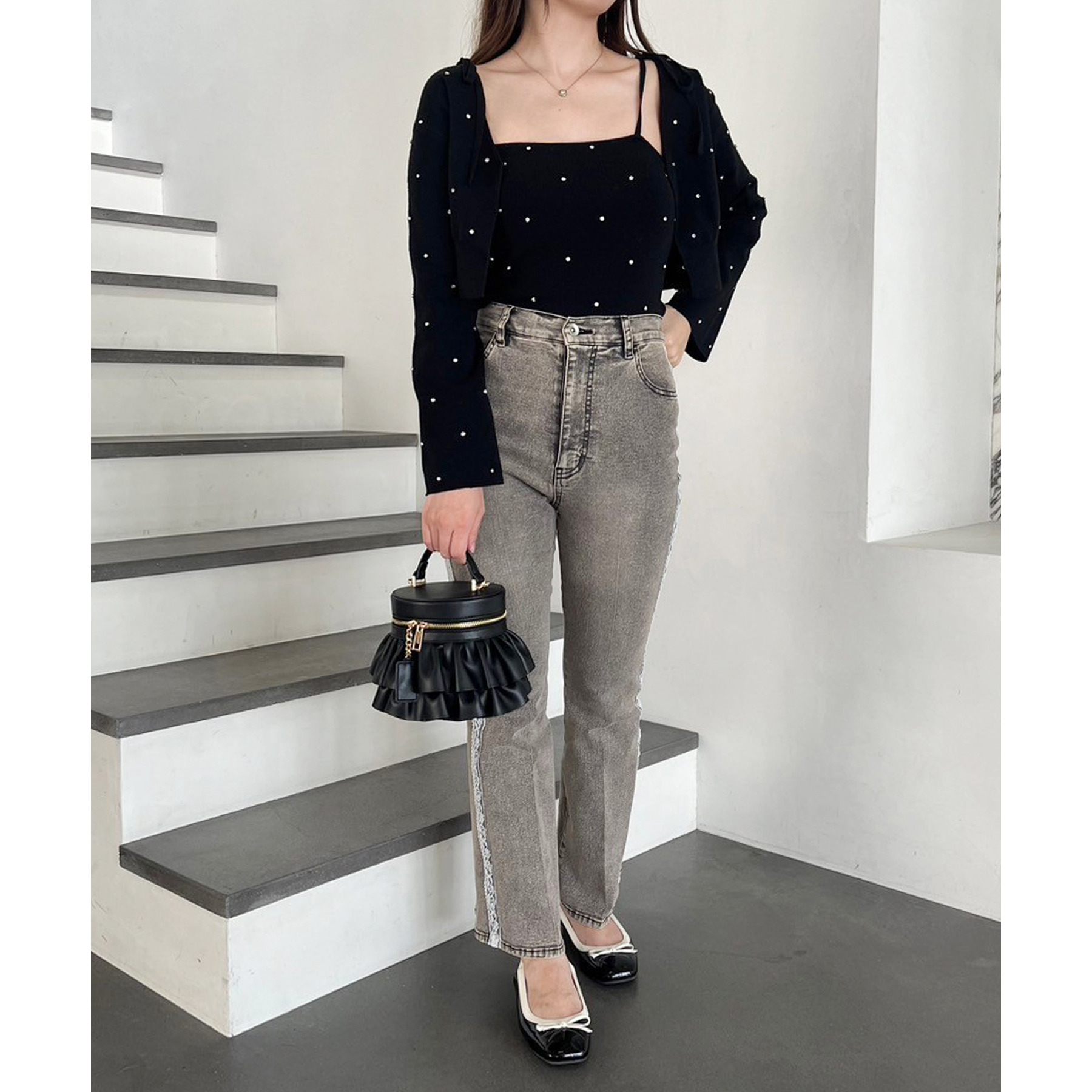 【S、Mサイズ展開】アソートレースデザイン美脚ストレッチデニムパンツ