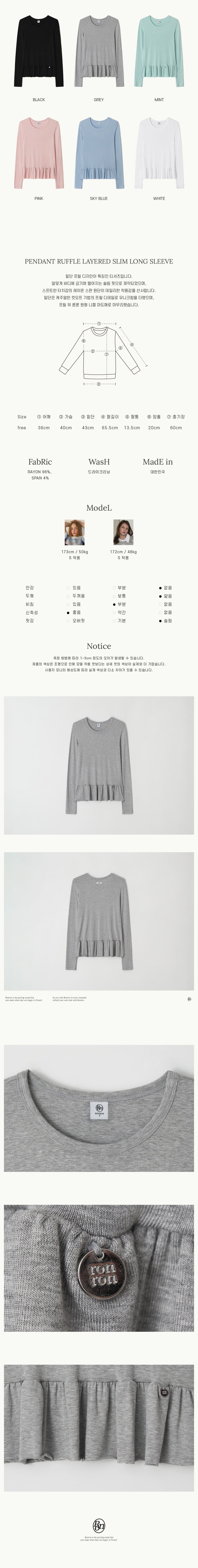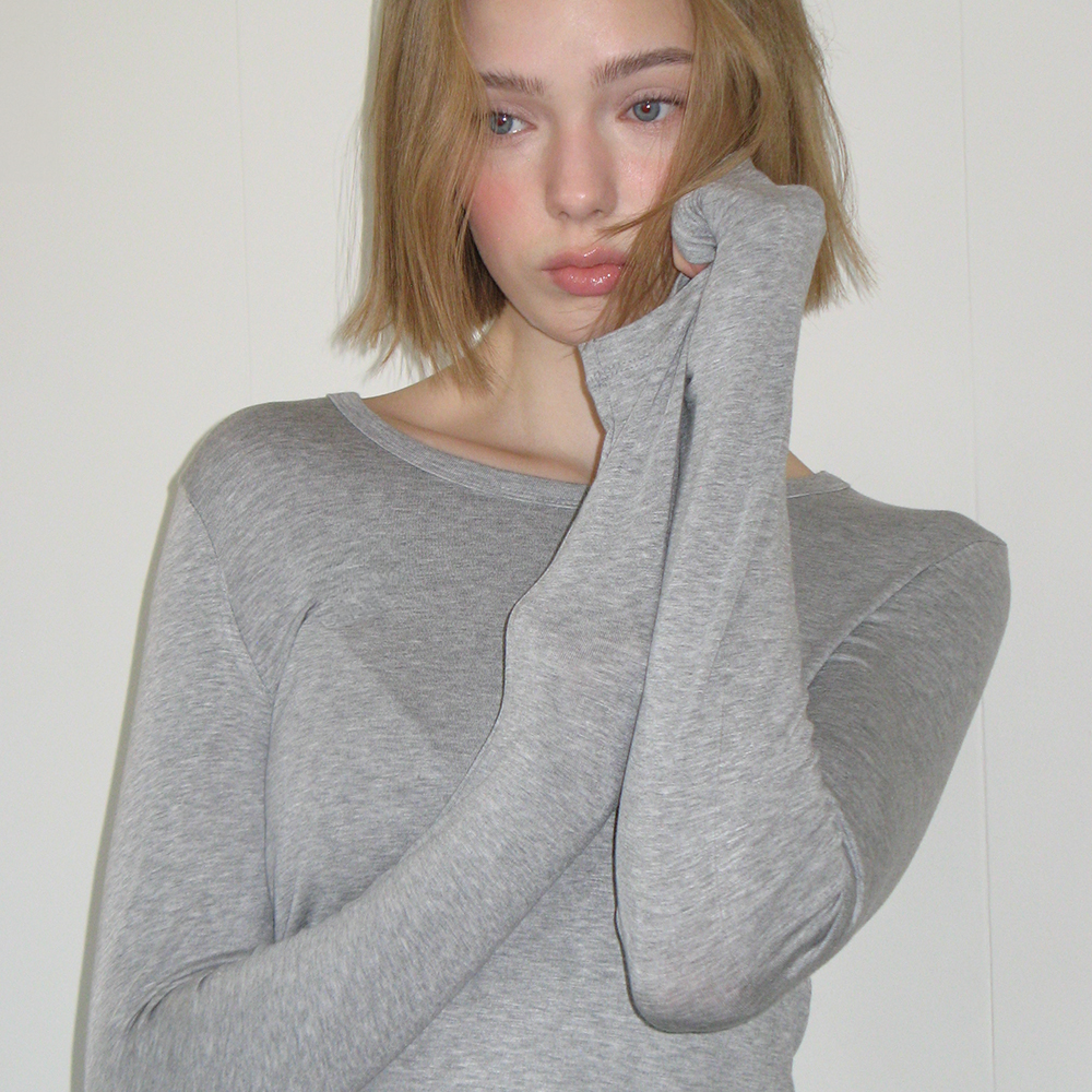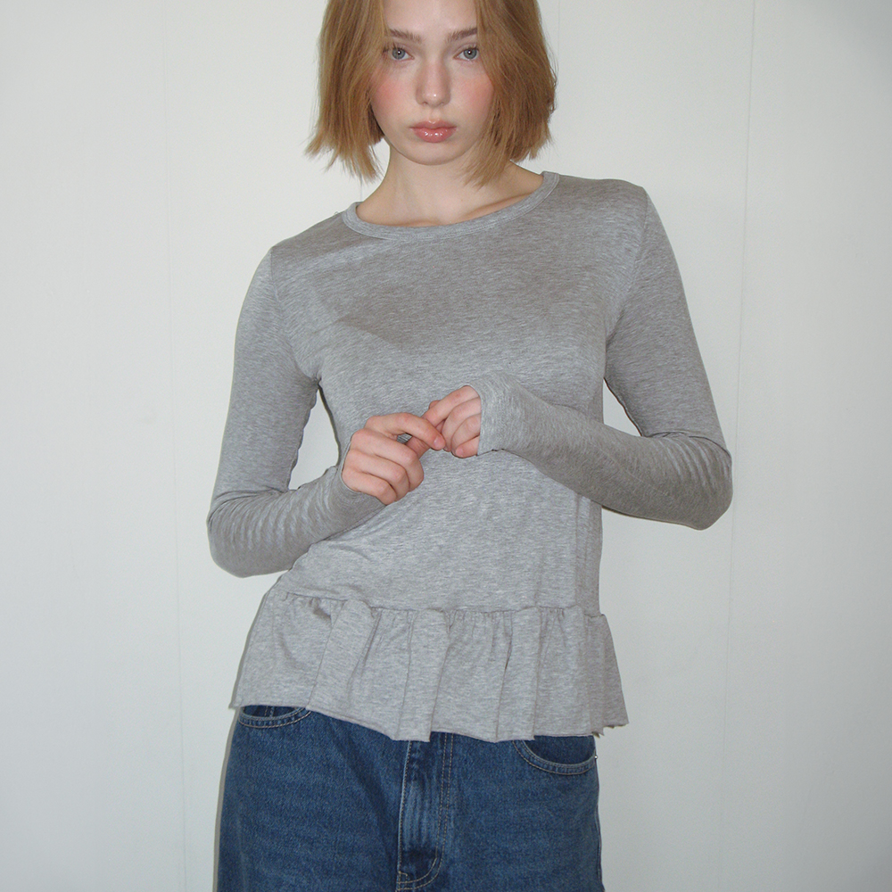PENDANT RUFFLE LAYERED SLIM LONG SLEEVE GREY