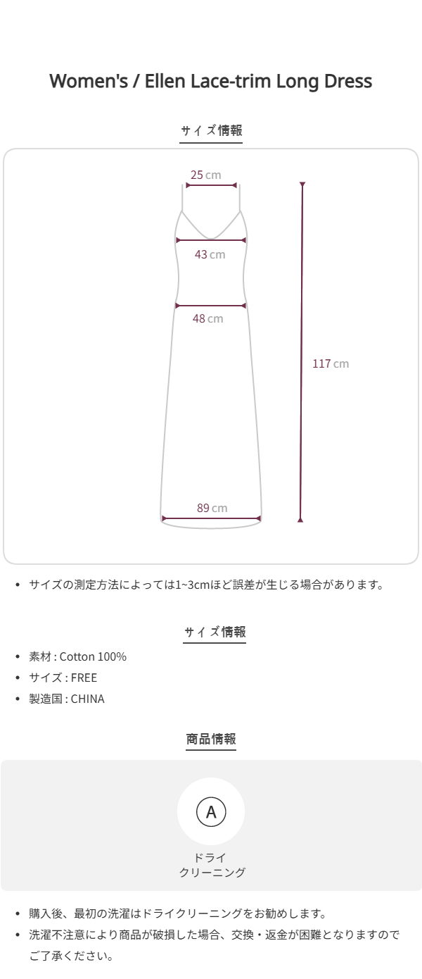 HEIGHT 174cm / BUST 83cm / WAIST 59cm / HIP 89cm