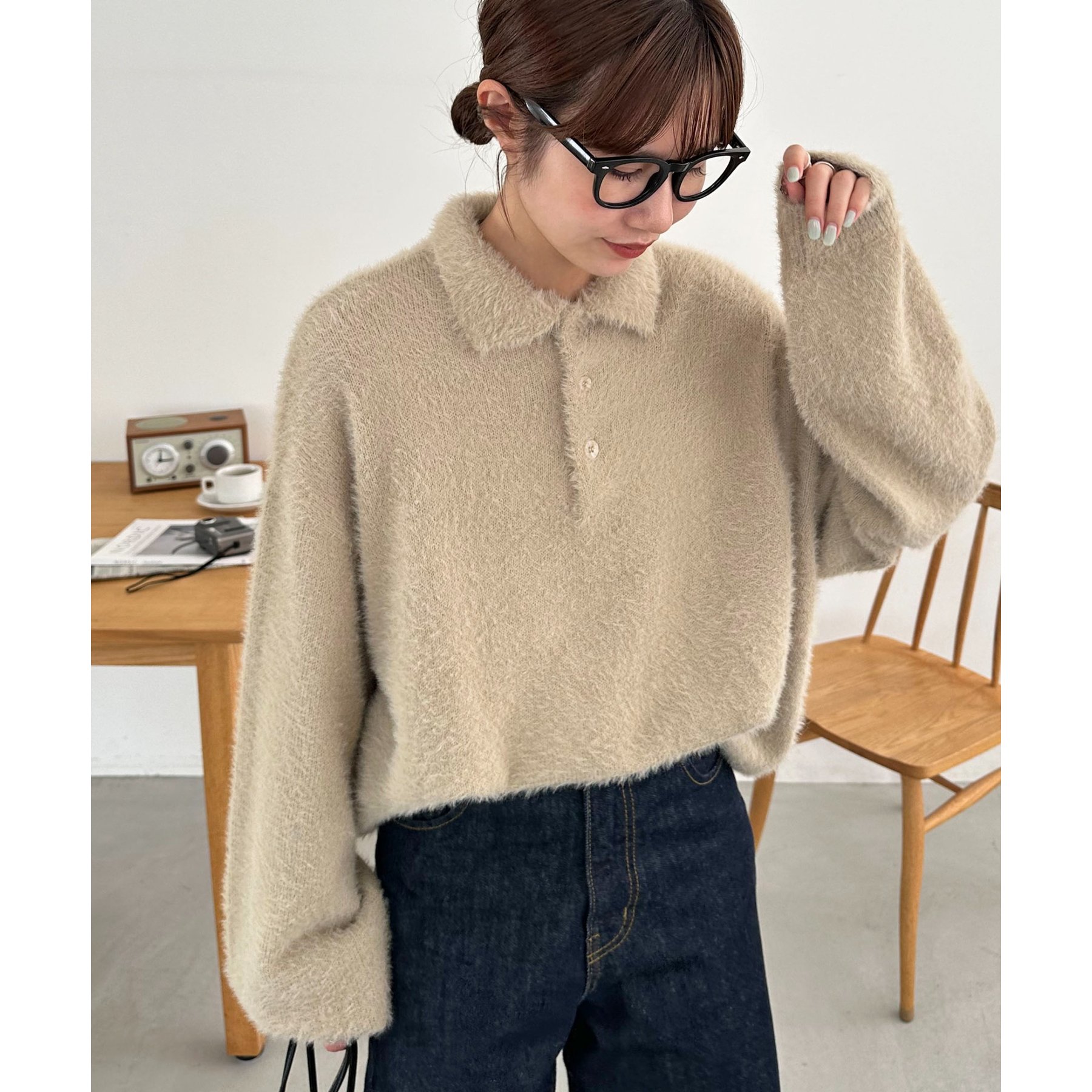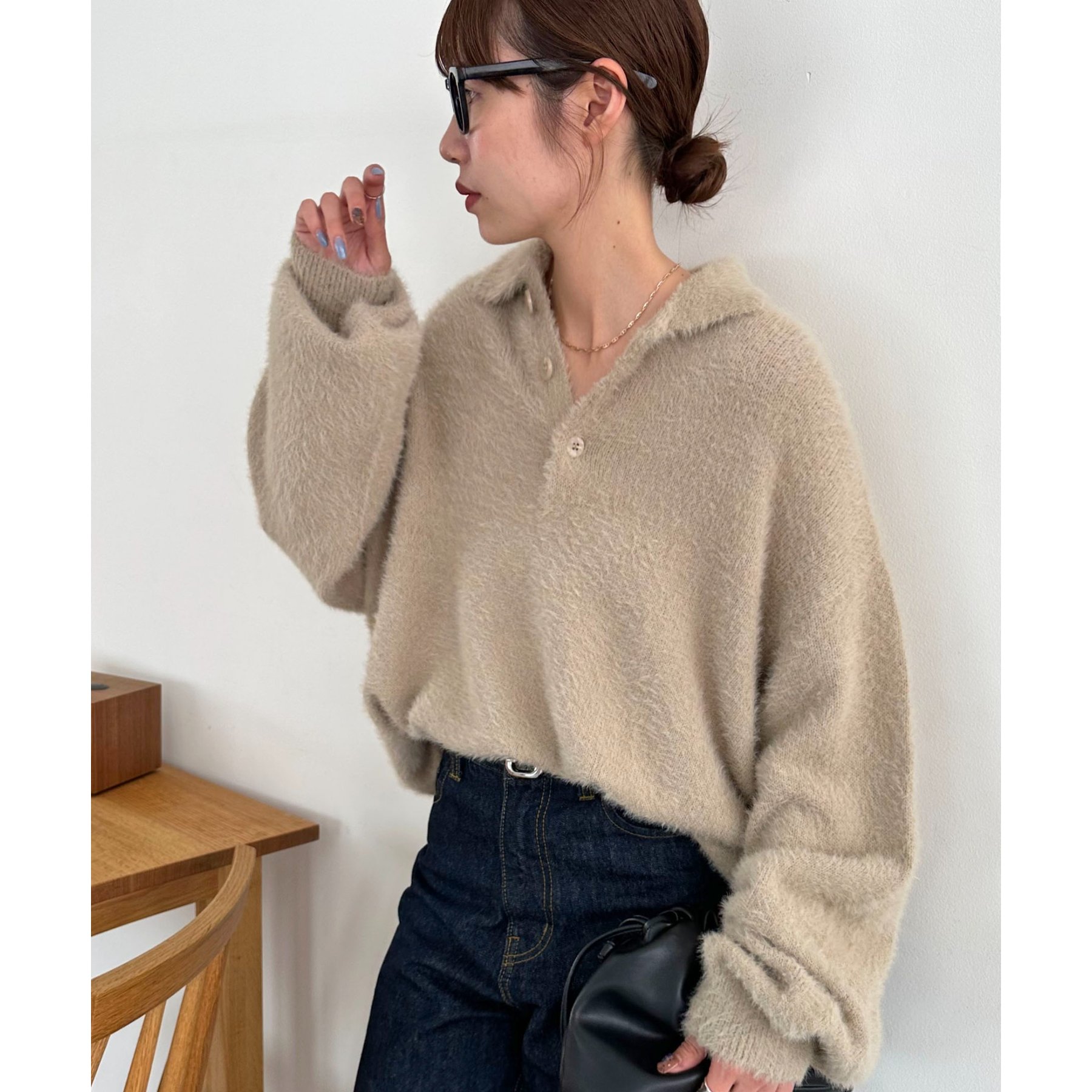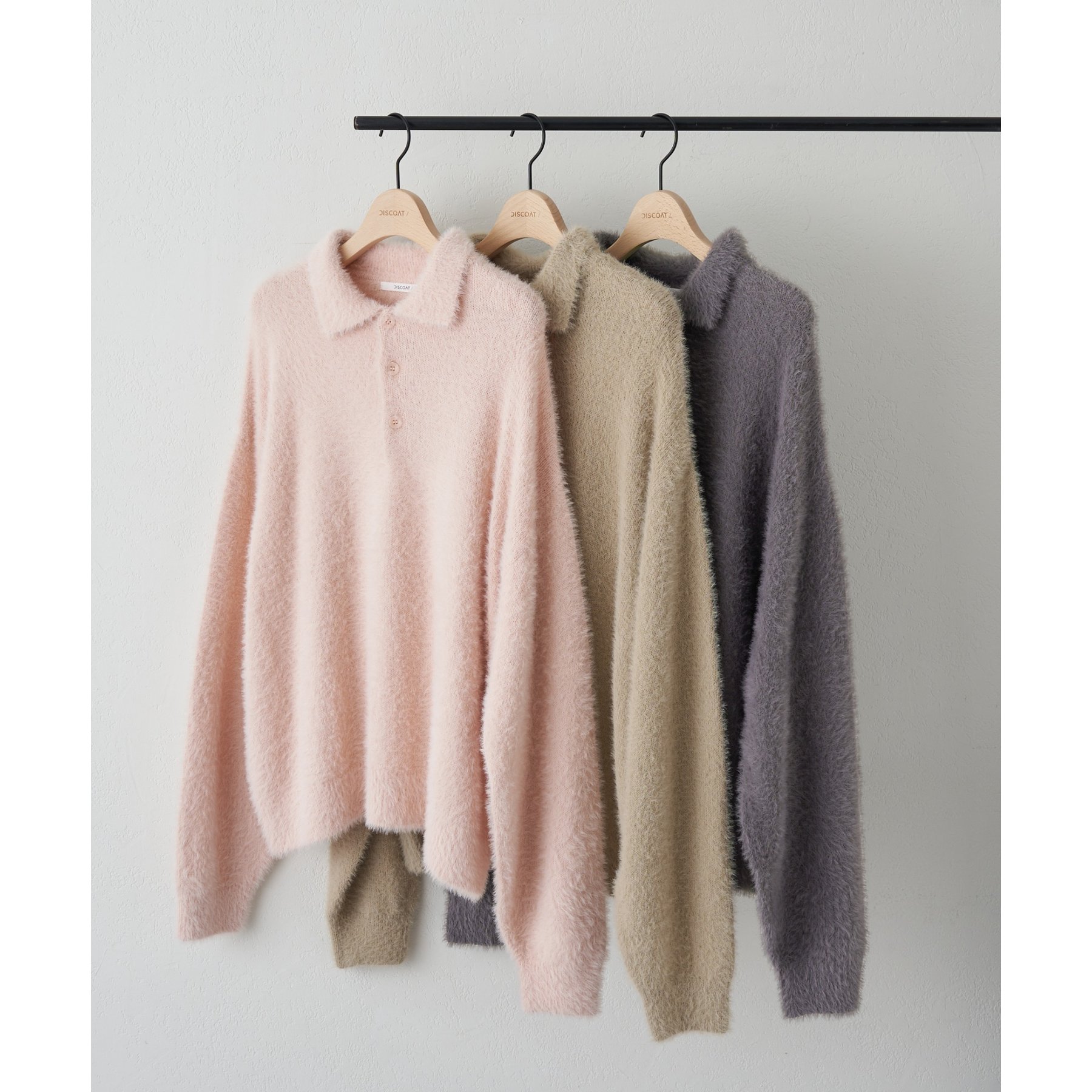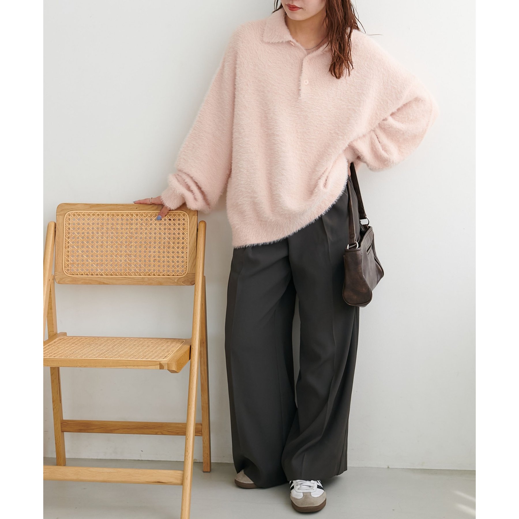 ずっと着ていられるようなふんわりと、手触りのいいミンク調のニットポロ。
