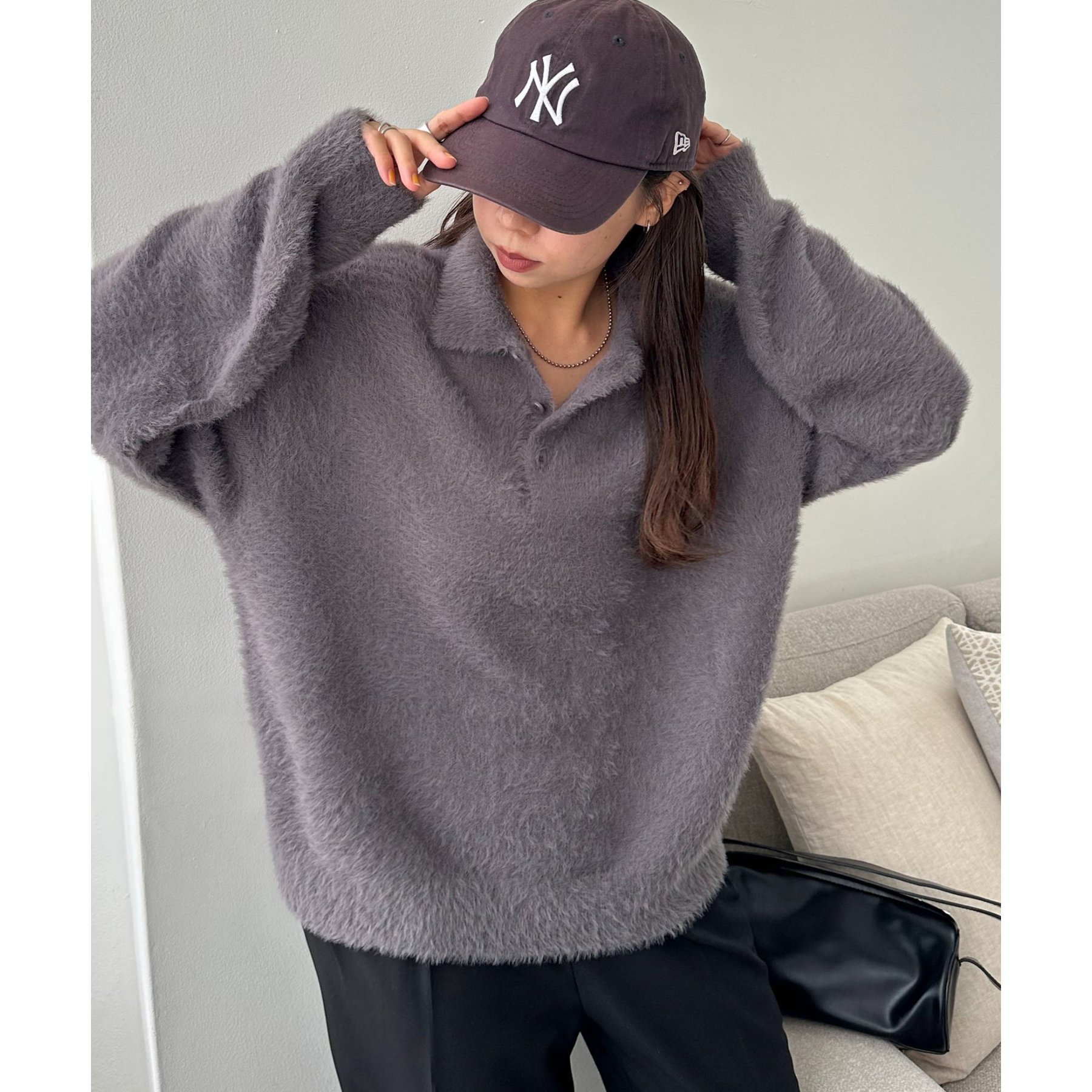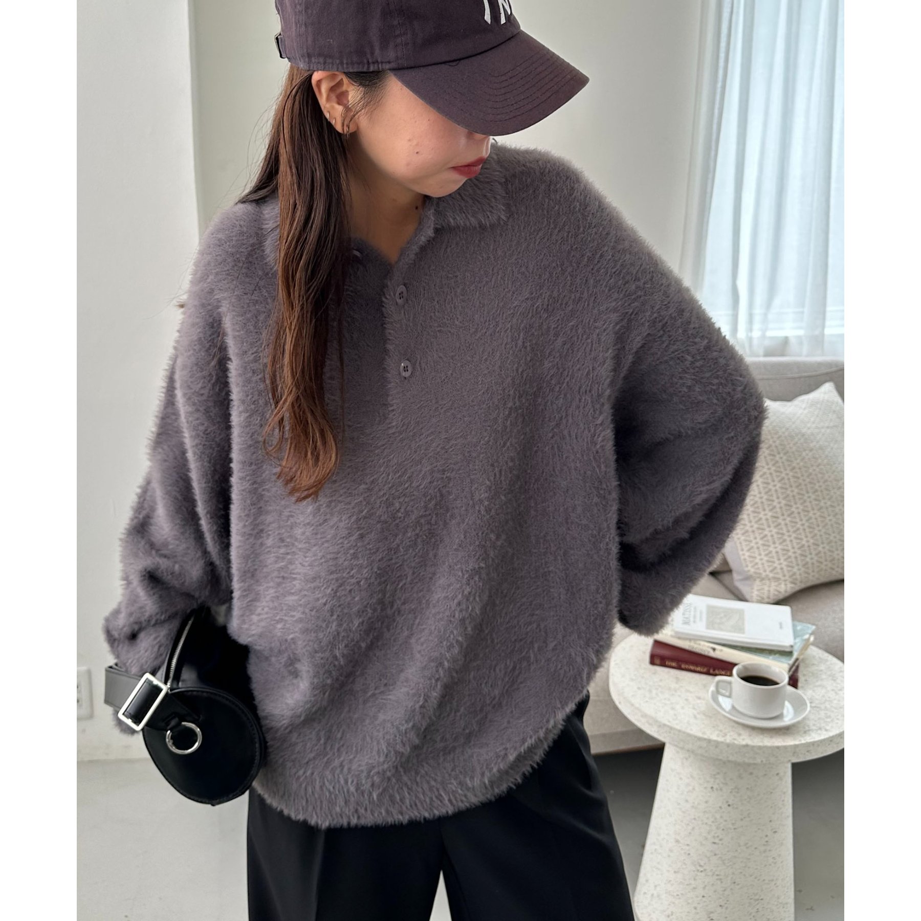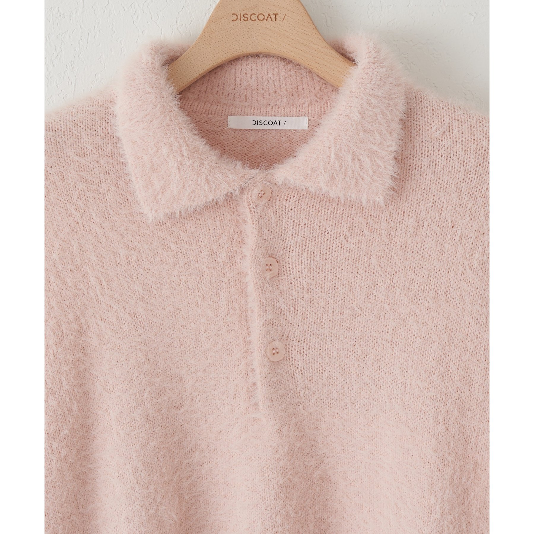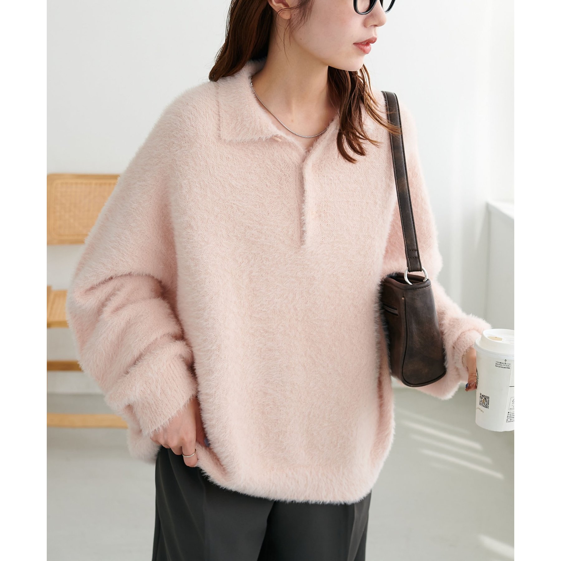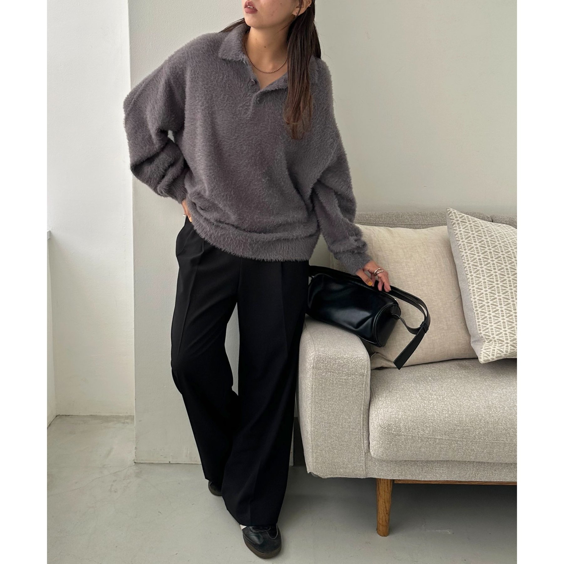 ずっと着ていられるようなふんわりと、手触りのいいミンク調のニットポロ。