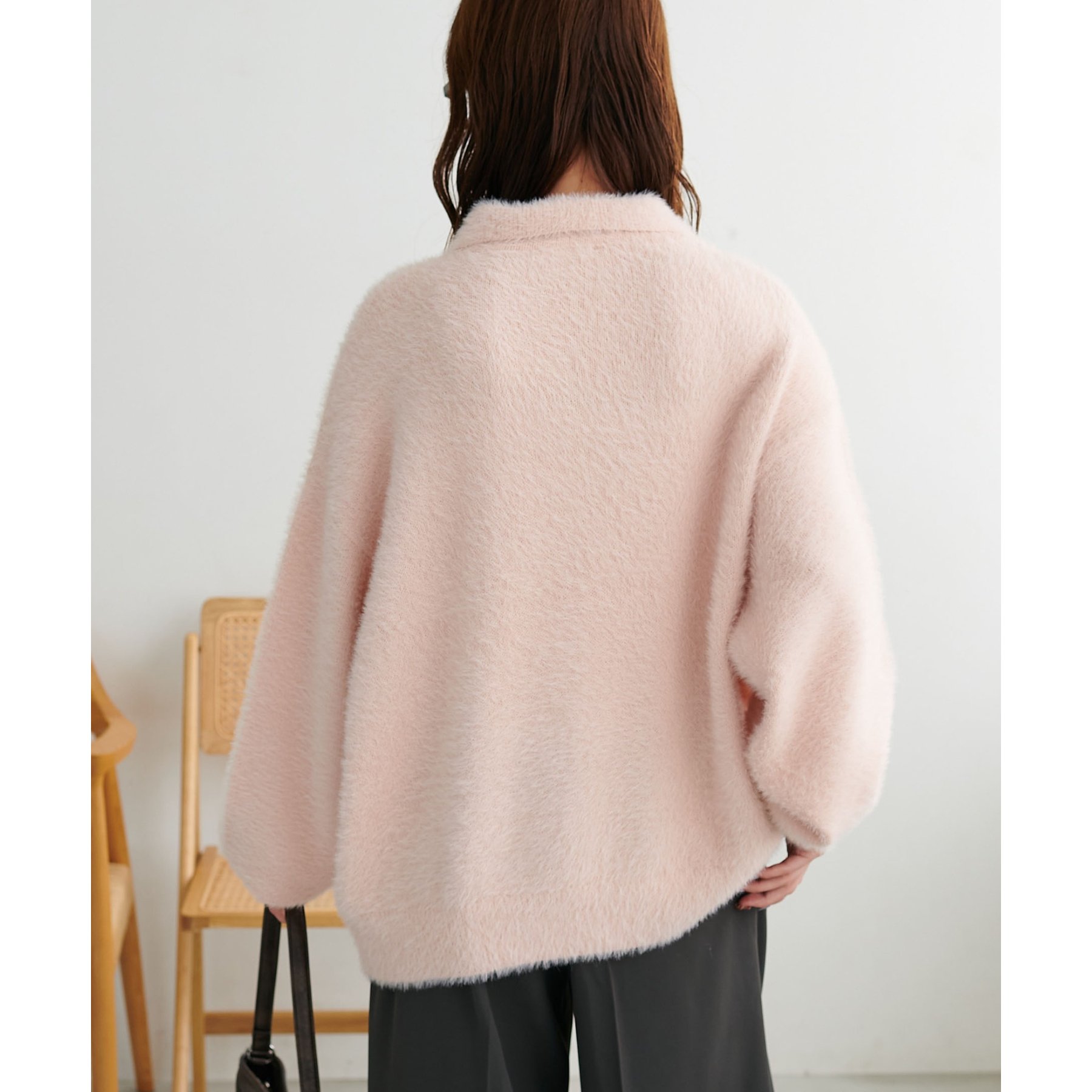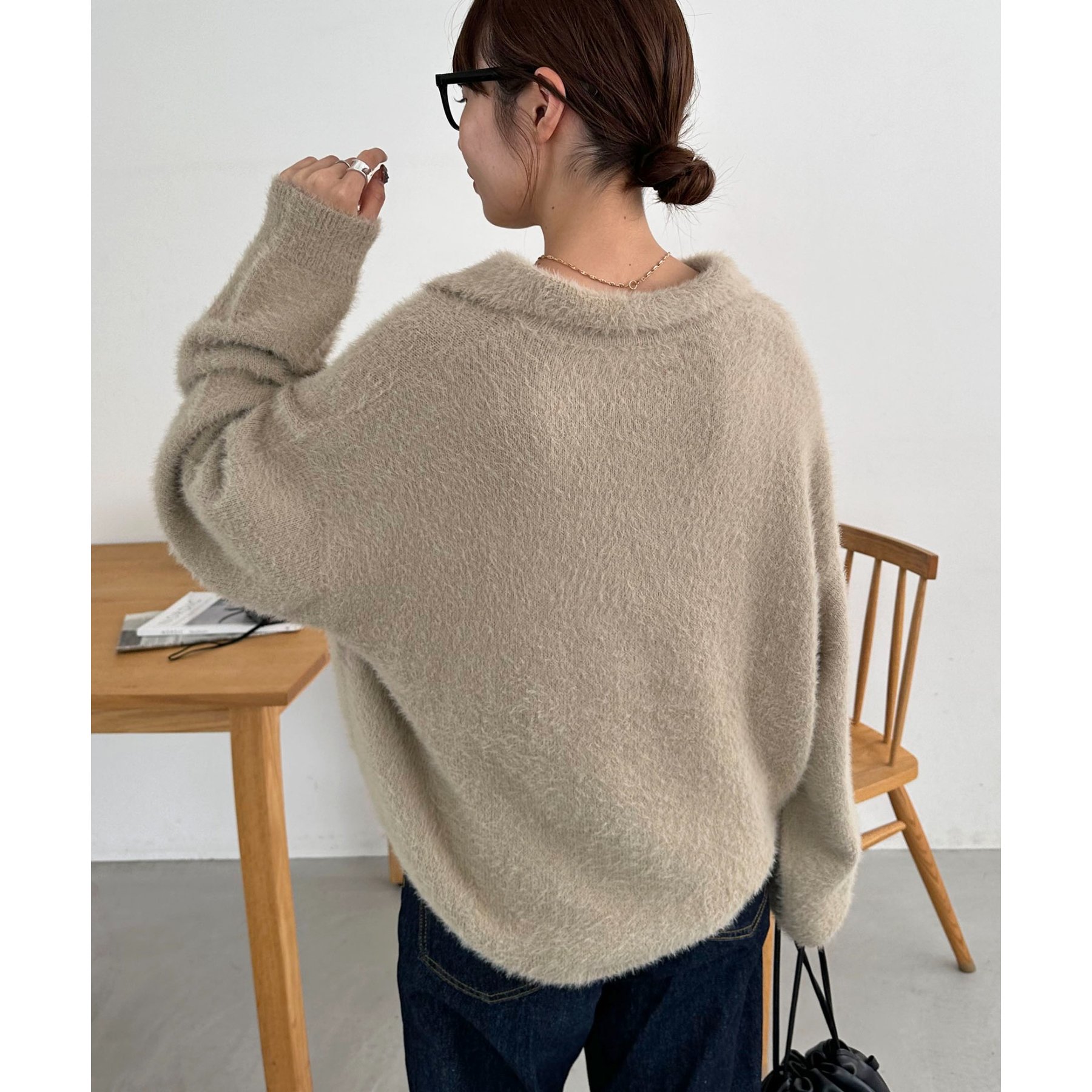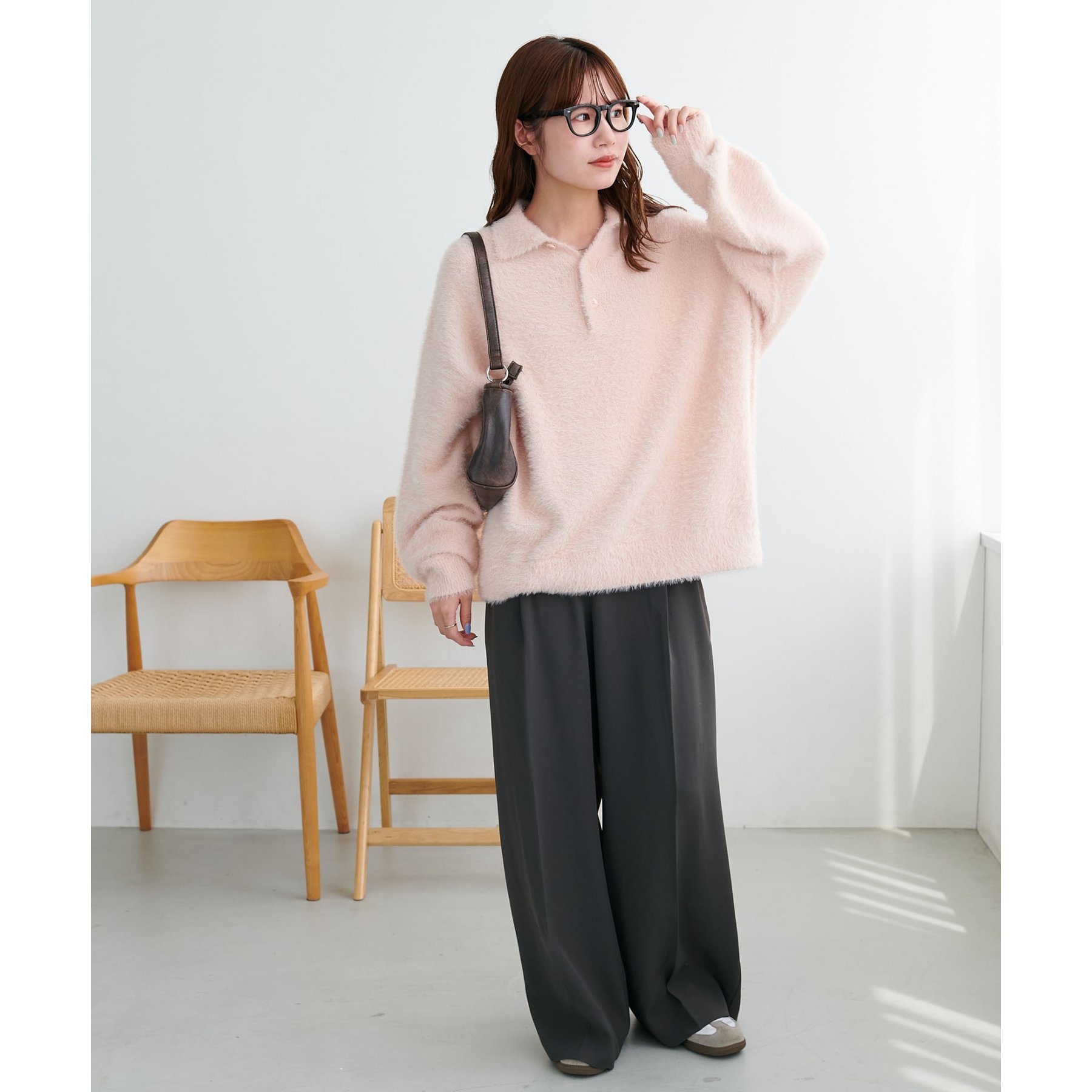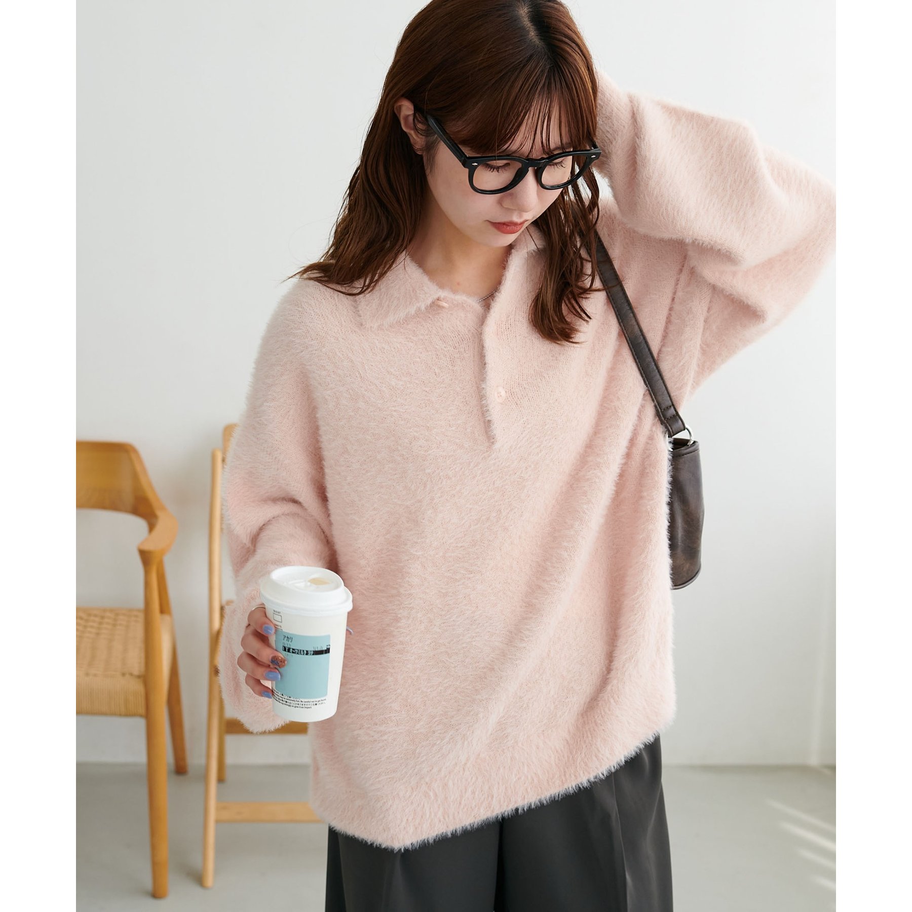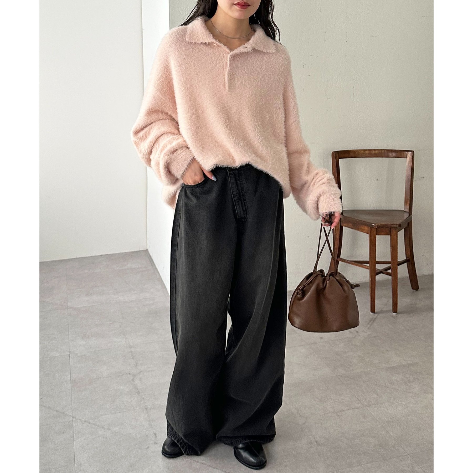 ずっと着ていられるようなふんわりと、手触りのいいミンク調のニットポロ。