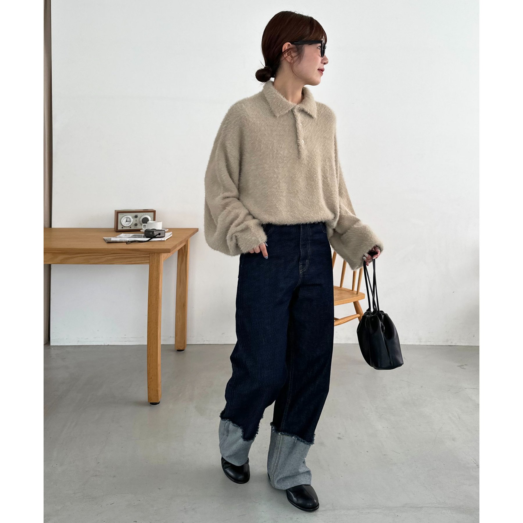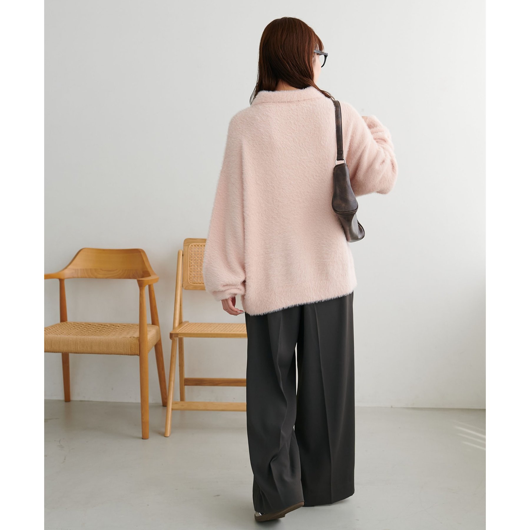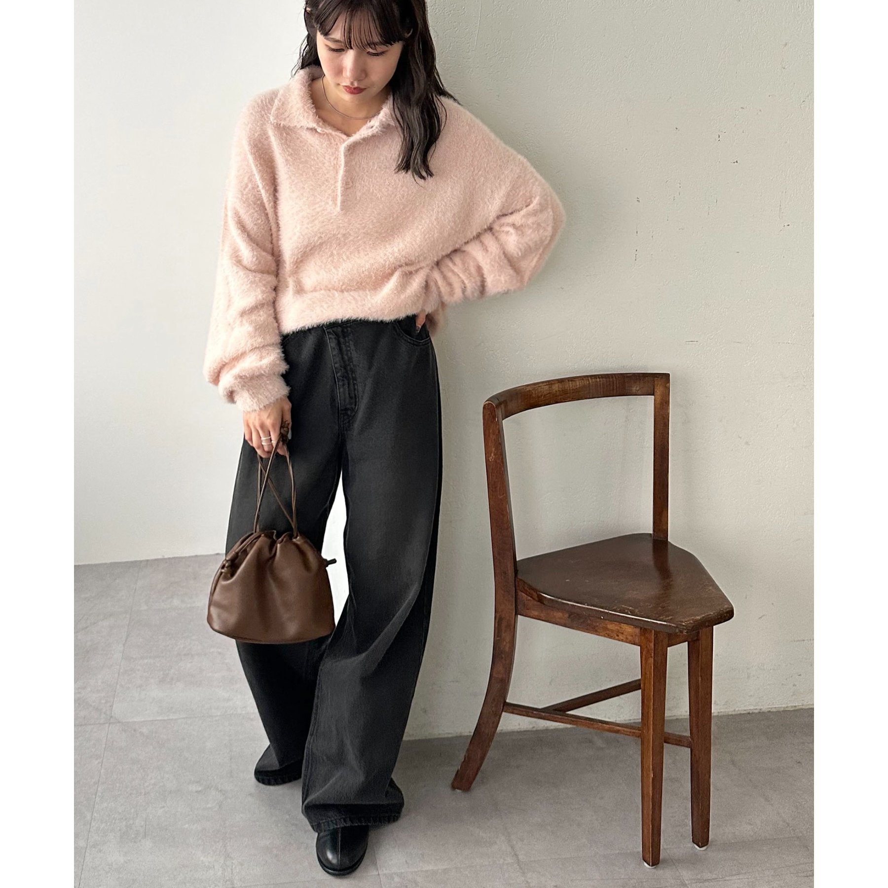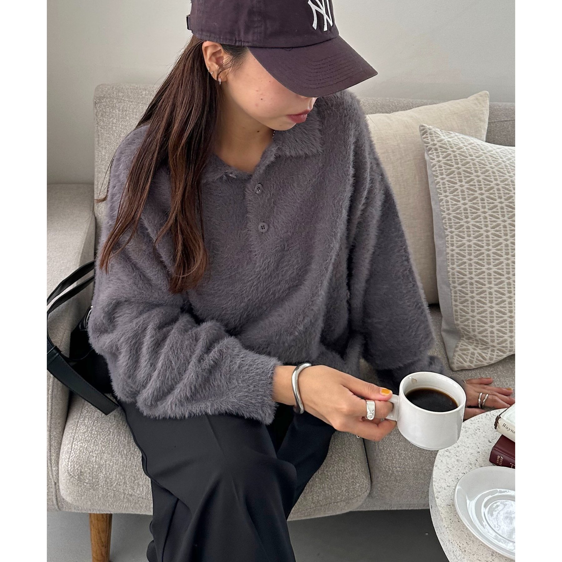 ずっと着ていられるようなふんわりと、手触りのいいミンク調のニットポロ。