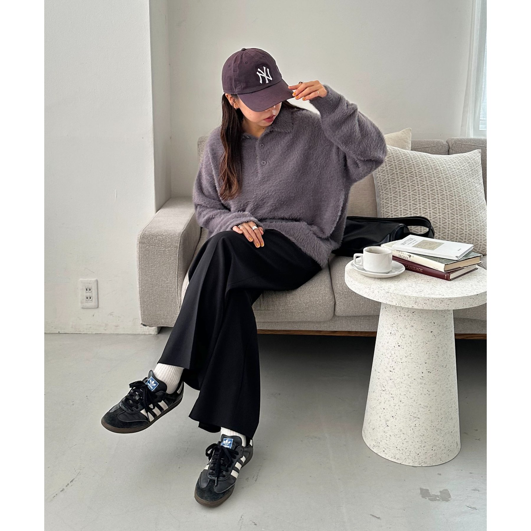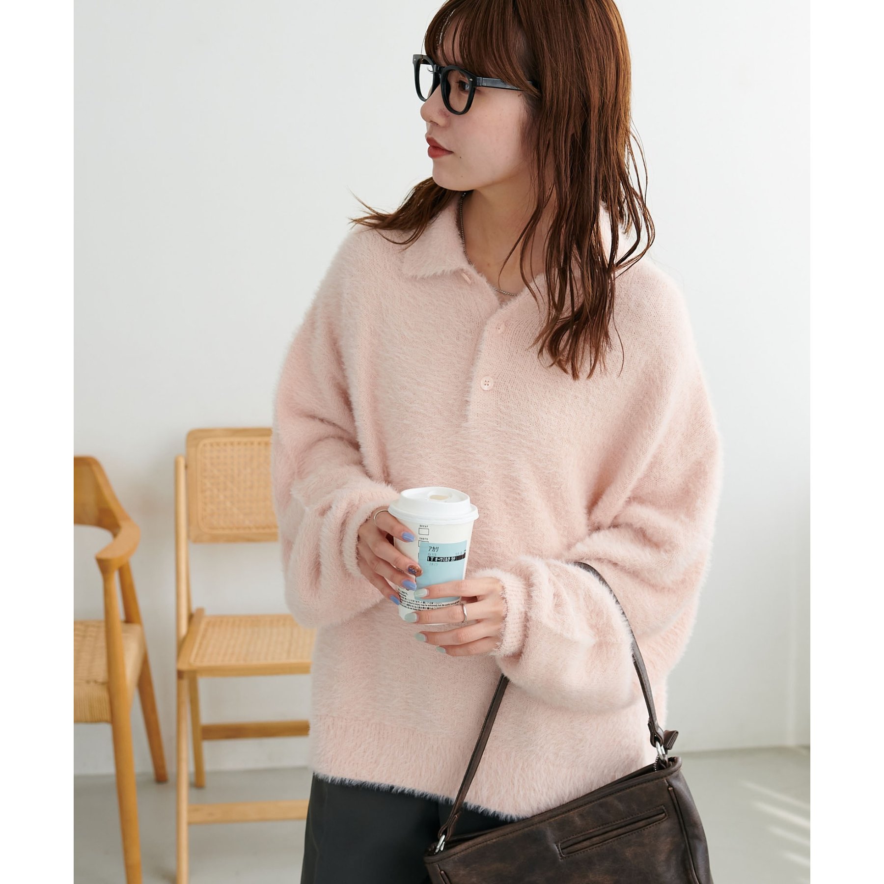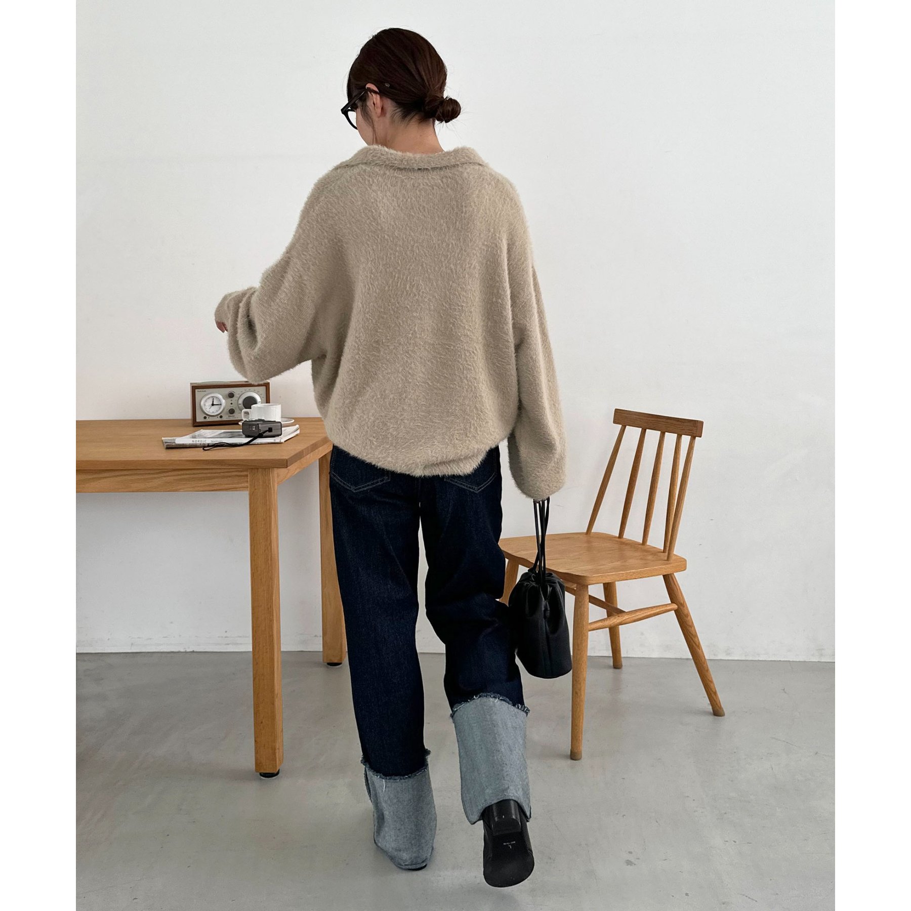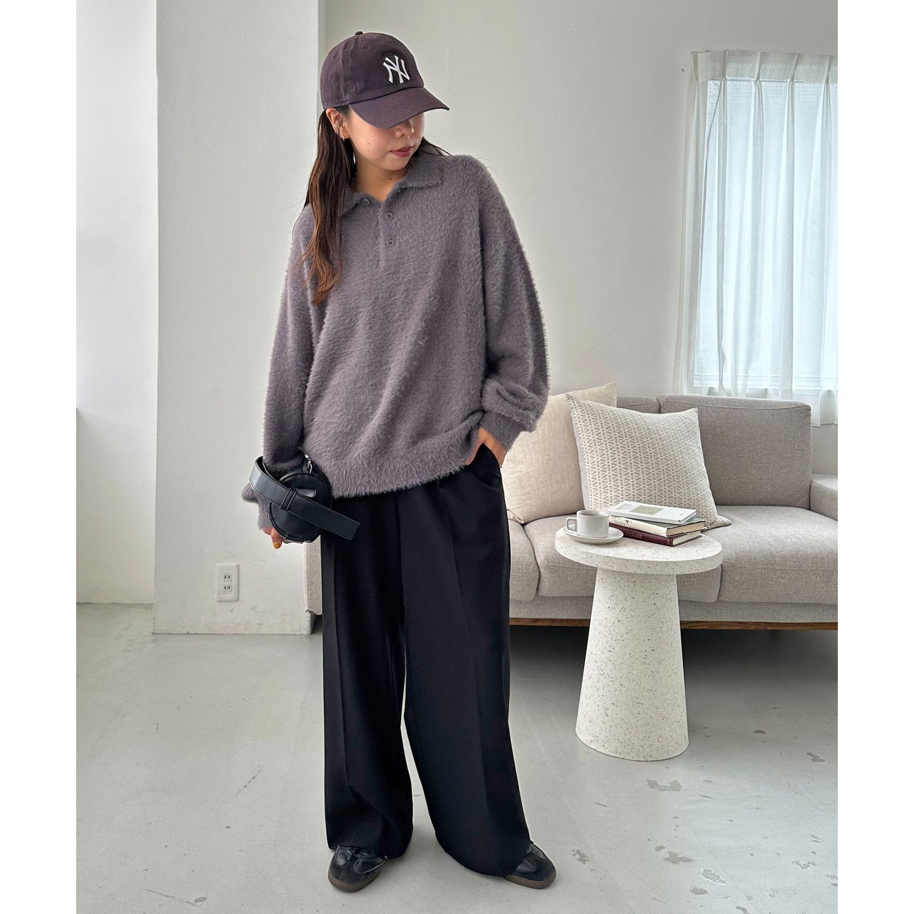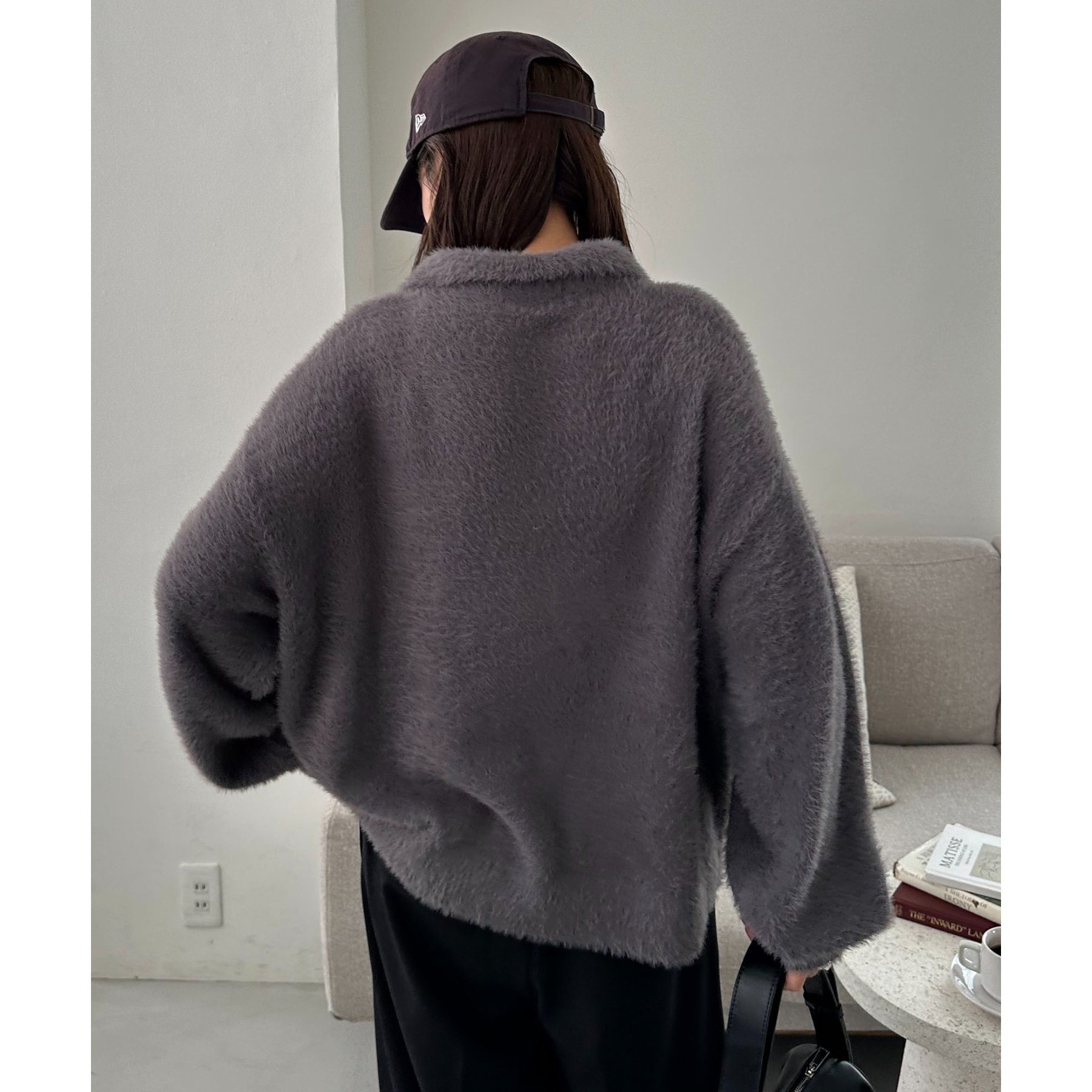 ずっと着ていられるようなふんわりと、手触りのいいミンク調のニットポロ。