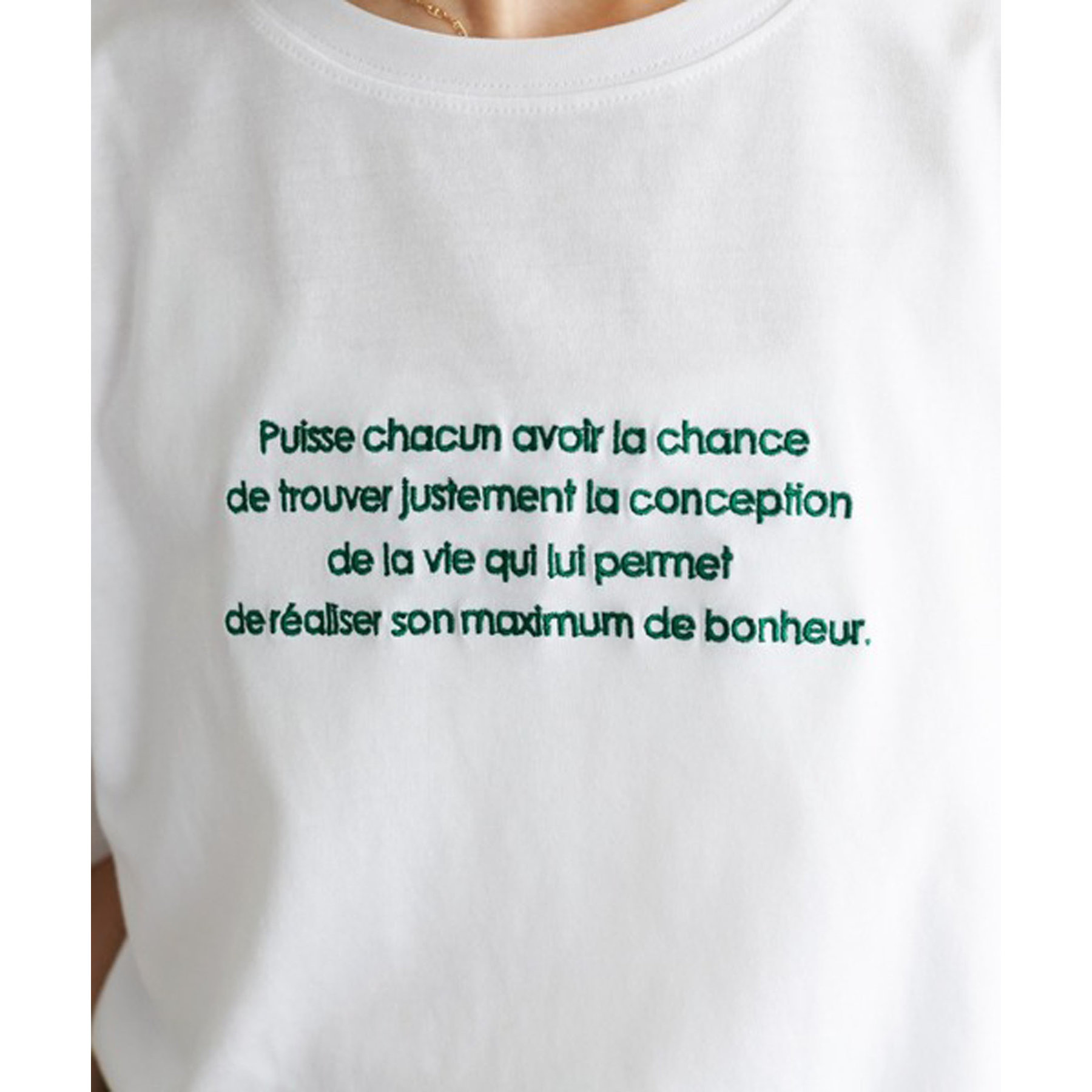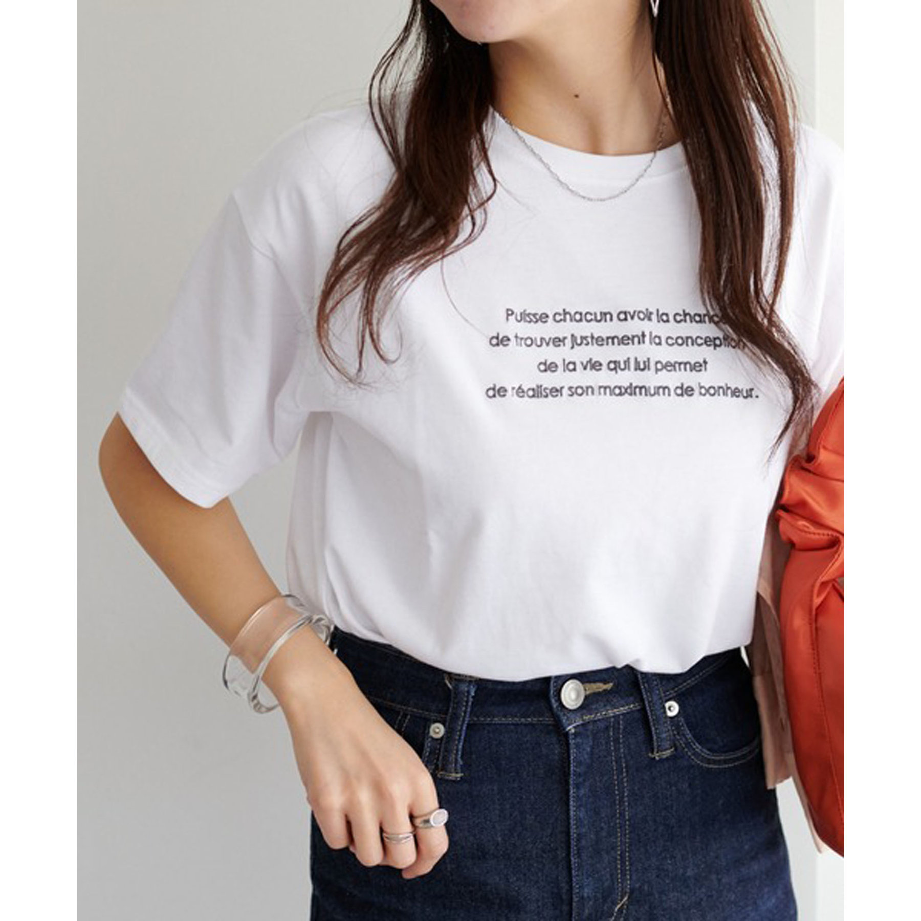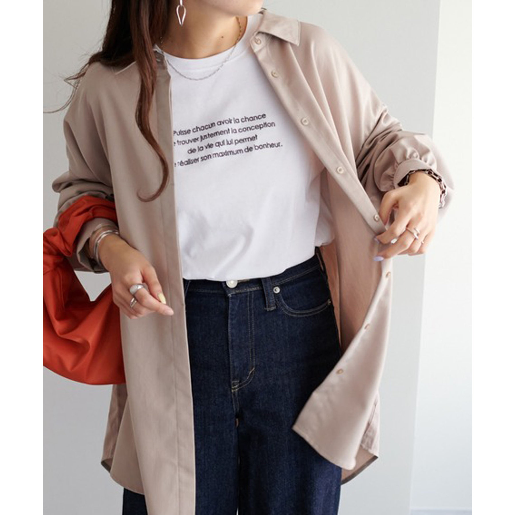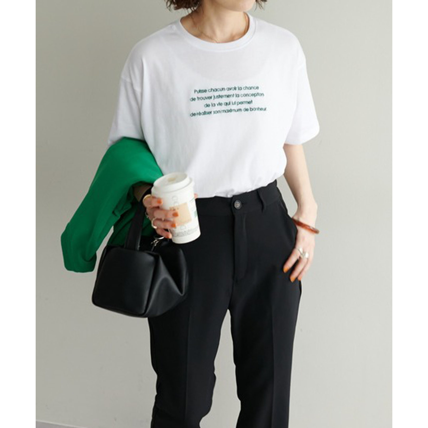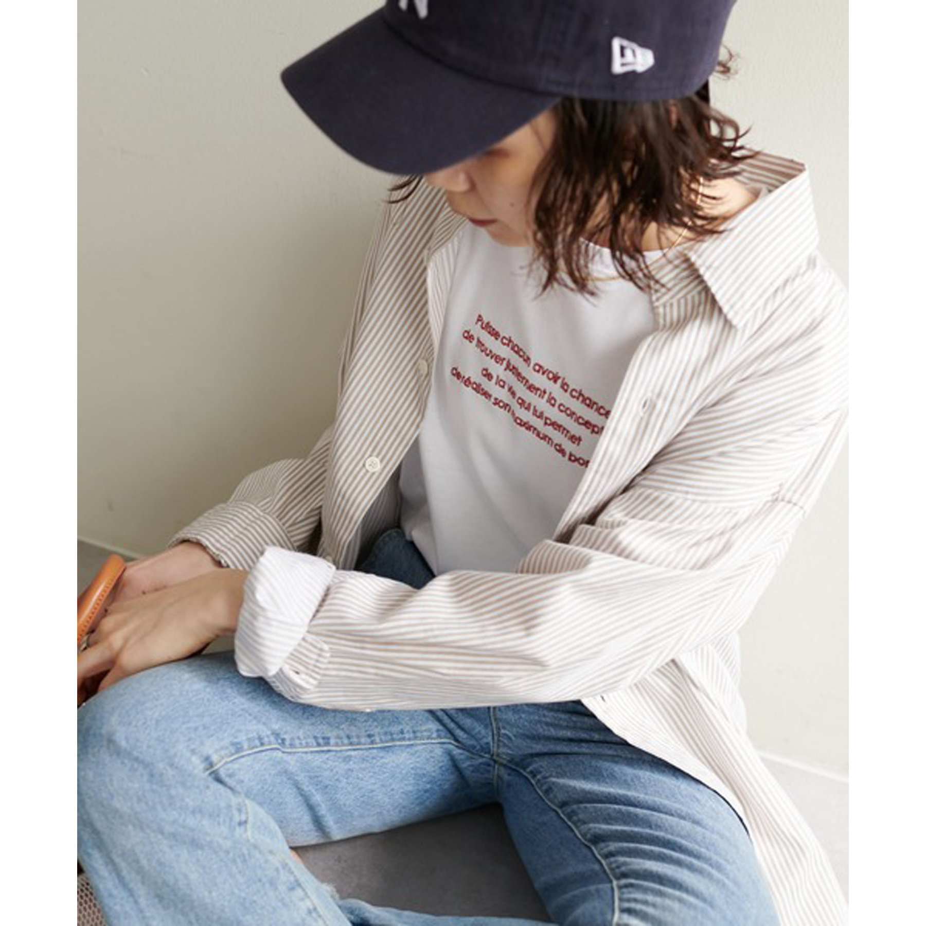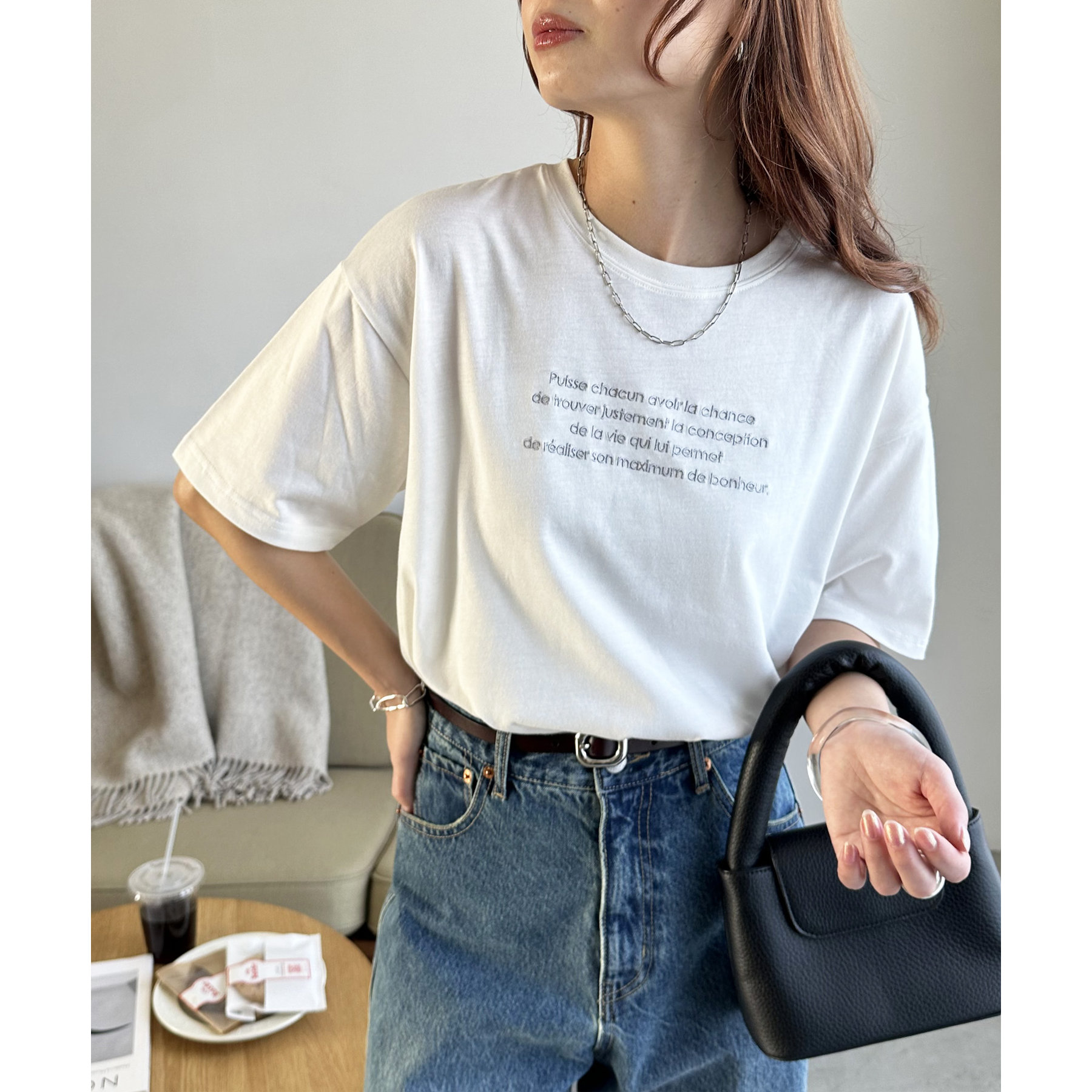 メッセージ性がありながらもコーディネートワンポイントになる、フロントのロゴ刺繍が魅力のデザイン。一枚着でも、インナーとしても幅広く着用ができ、無地Tシャツに比べトレンド感ある着こなしが楽しめます。程よくゆったりした女性らしいシルエットで、年代を問わずワードロープにおすすめです◎